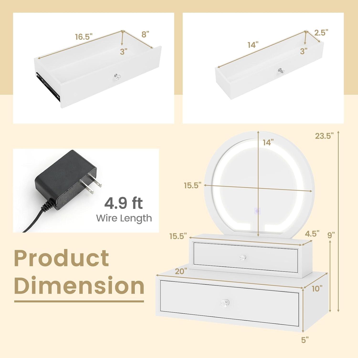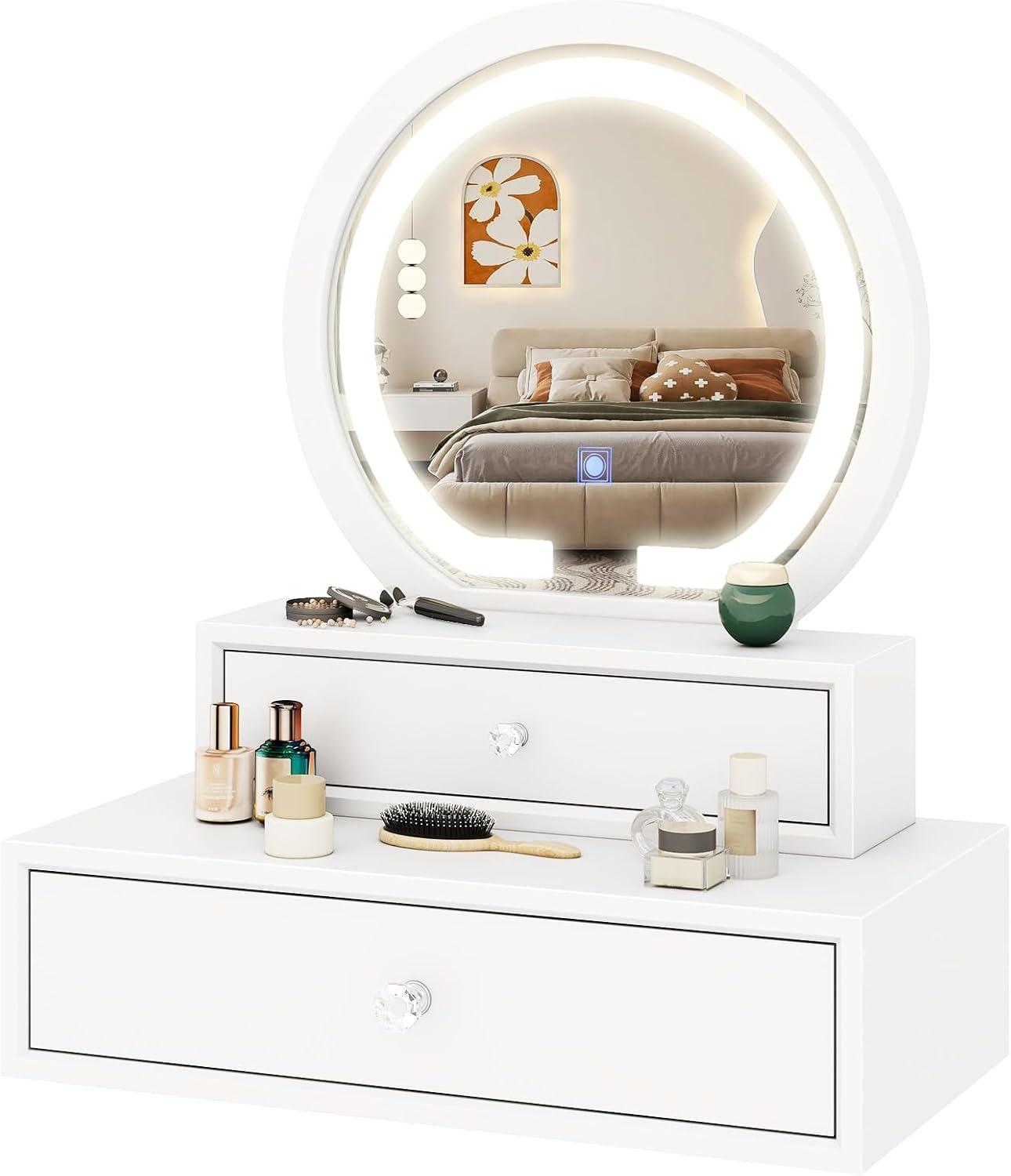 CHARMAID 2-in-1 Vanity Mirror with 2 Removable Drawers, Vanity Mirror Wall Mount or Placed on Table Top, Floating Vanity Shelf with Drawers, Bathroom Vanity Over Sink, Modern Bathroom Vanity(With Light)