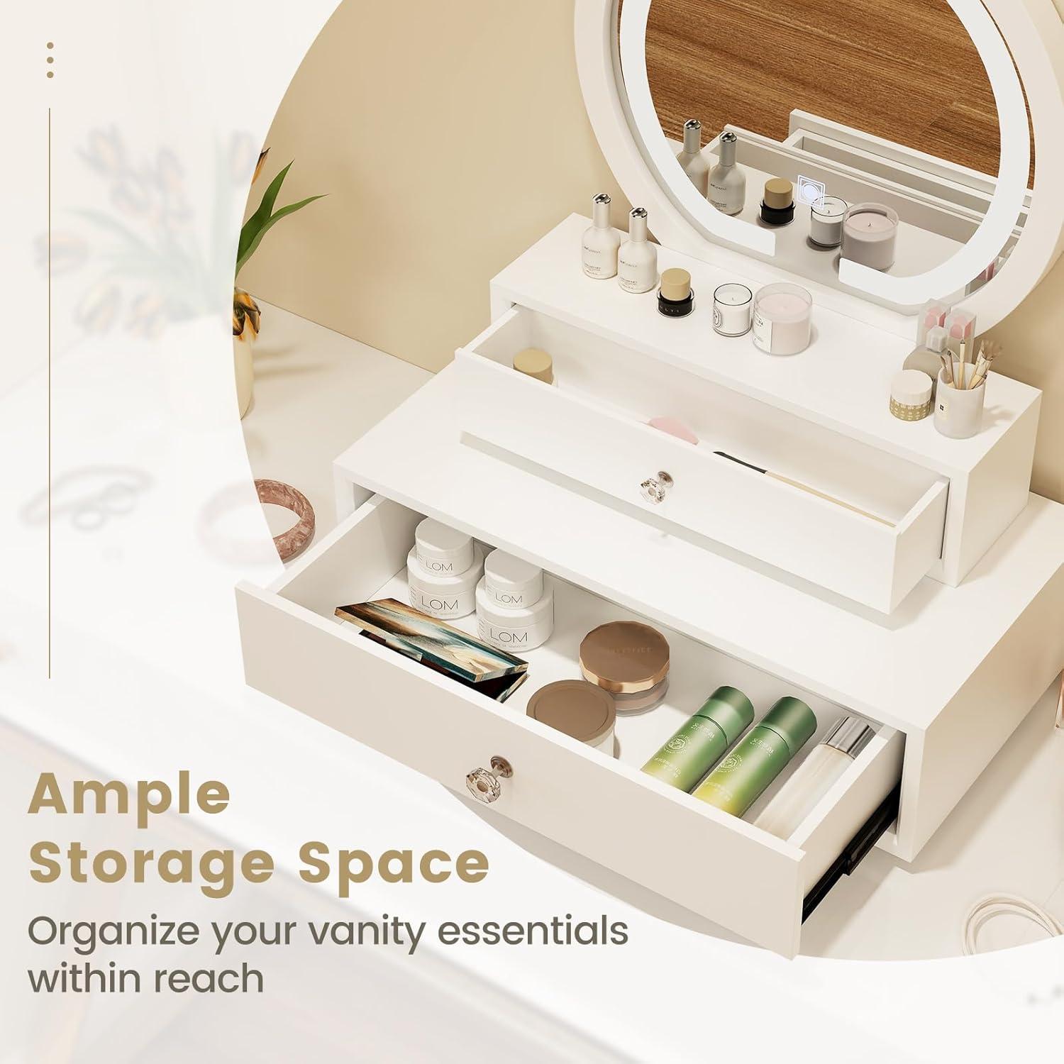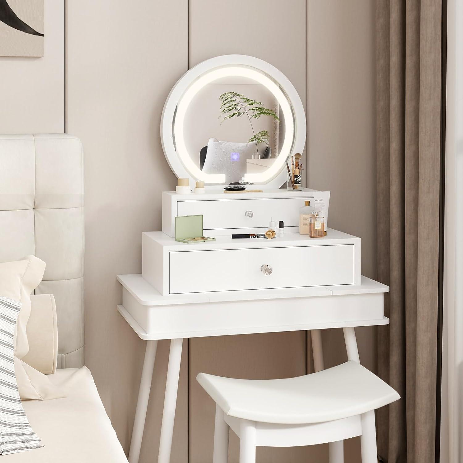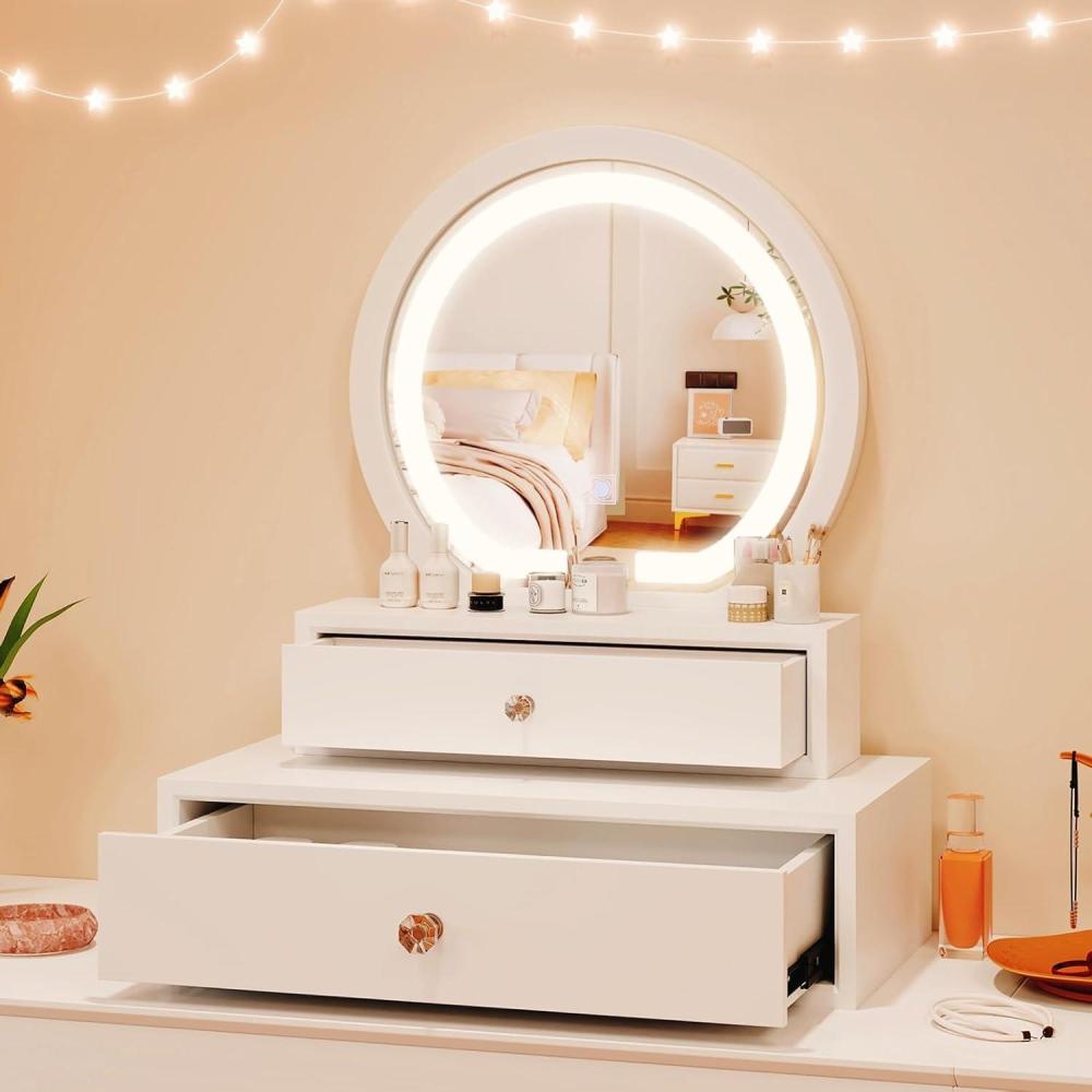 【With Removable Large Drawer】The vanity mirror comes with 2 drawers of thoughtful large and deep storage space for all your jewelry, makeup and hair accessories. The 2 drawers are large for all-different-sized items. The most unique design is the removeable bottom drawer. It is designed to fit all types of large and small desks and tables. It is super useful if you want a DIY vanity. The removed drawer can be mounted to wall in bedroom or bathroom for extra storage.