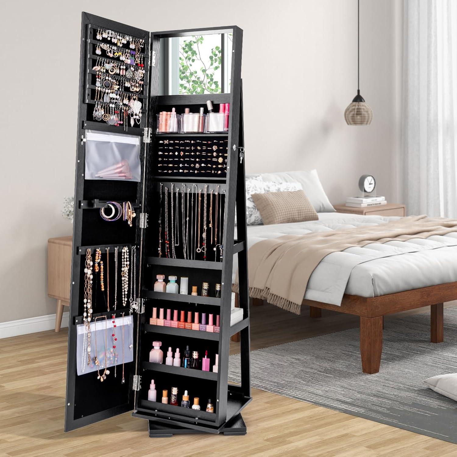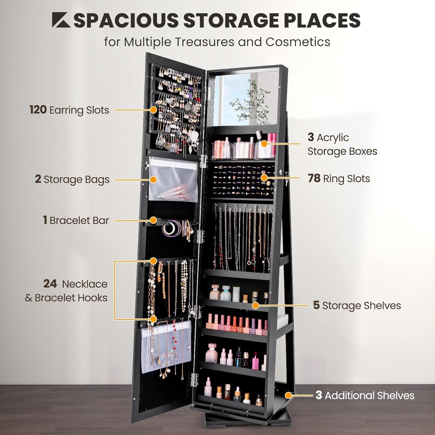 Be the first to review “CHARMAID 360° Swivel Jewelry Armoire with Higher Full Length Mirror, Standing Lockable Jewelry Cabinet Organizer, Large Storage Capacity, Inside Makeup Mirror, Back Storage Shelves (Rustic Brown)(Black)”