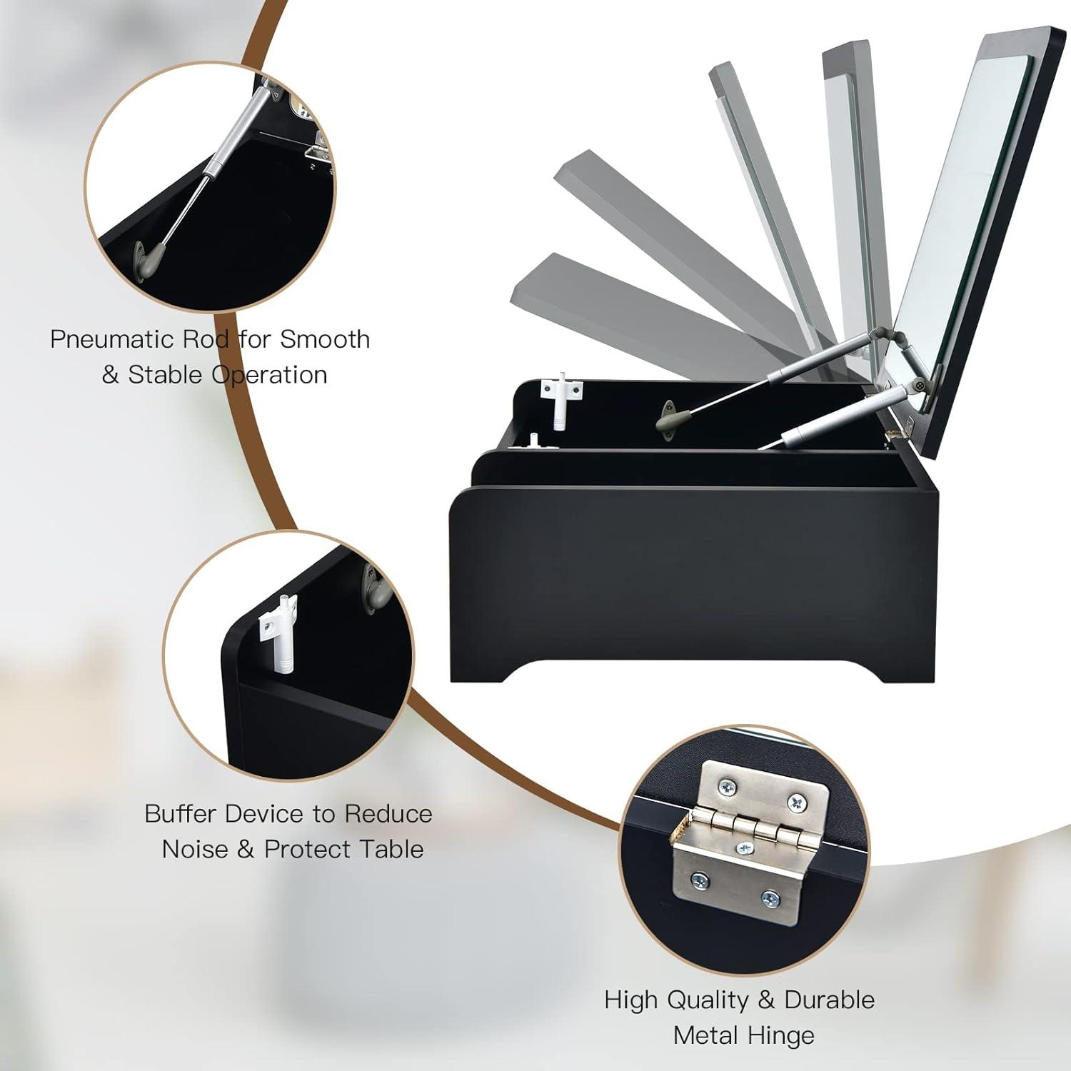 【Sufficient Storage Space】: The large hidden compartment beneath the tabletop can store your cosmetics, jewelry, skin-care products, hair accessories, etc and keep them away from dust. Besides, the side open storage area is ideal to place your frequently used lipsticks, sunglasses, combs, perfumes for easy access.