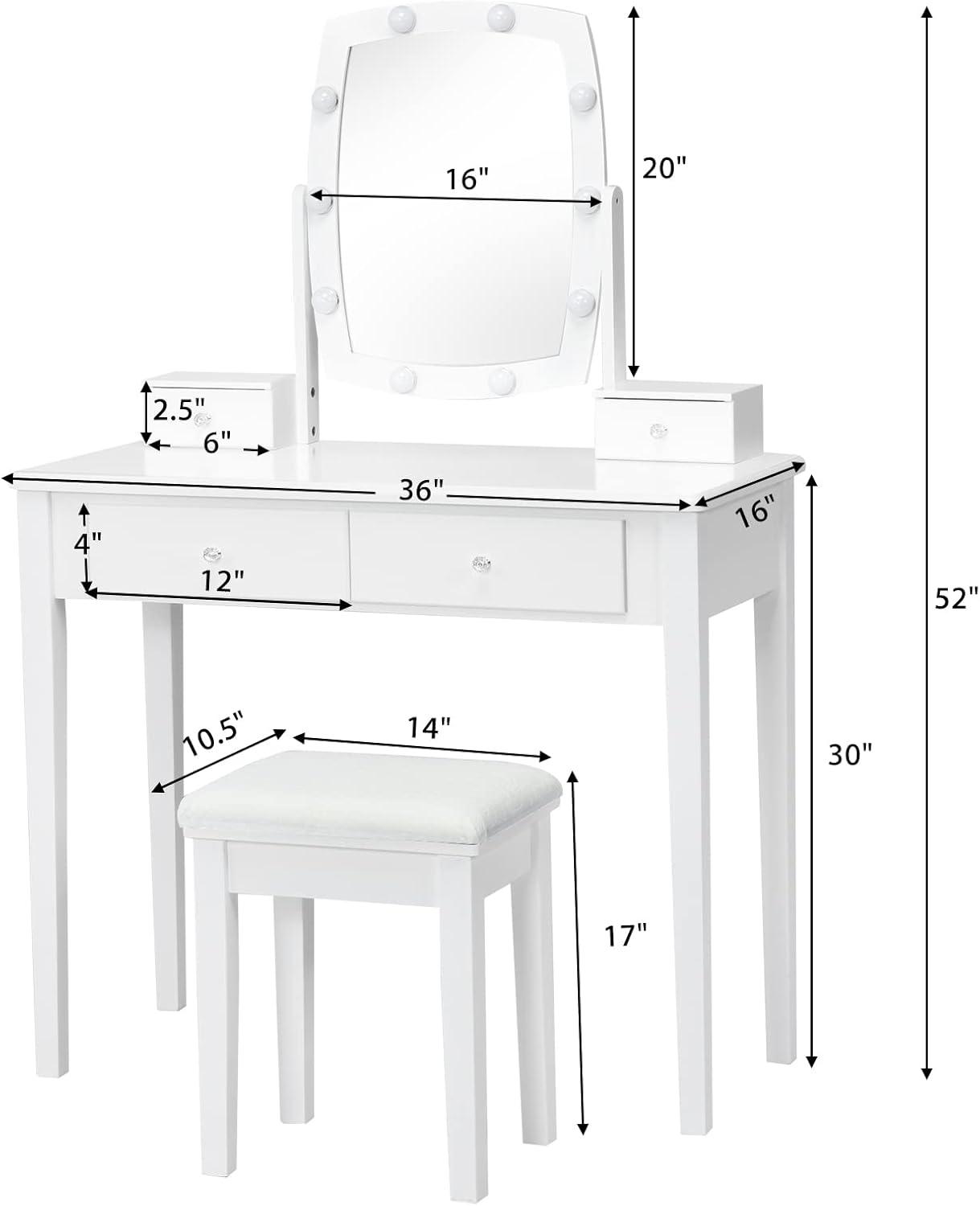CHARMAID Vanity Table Set with 10 Dimmable Lights