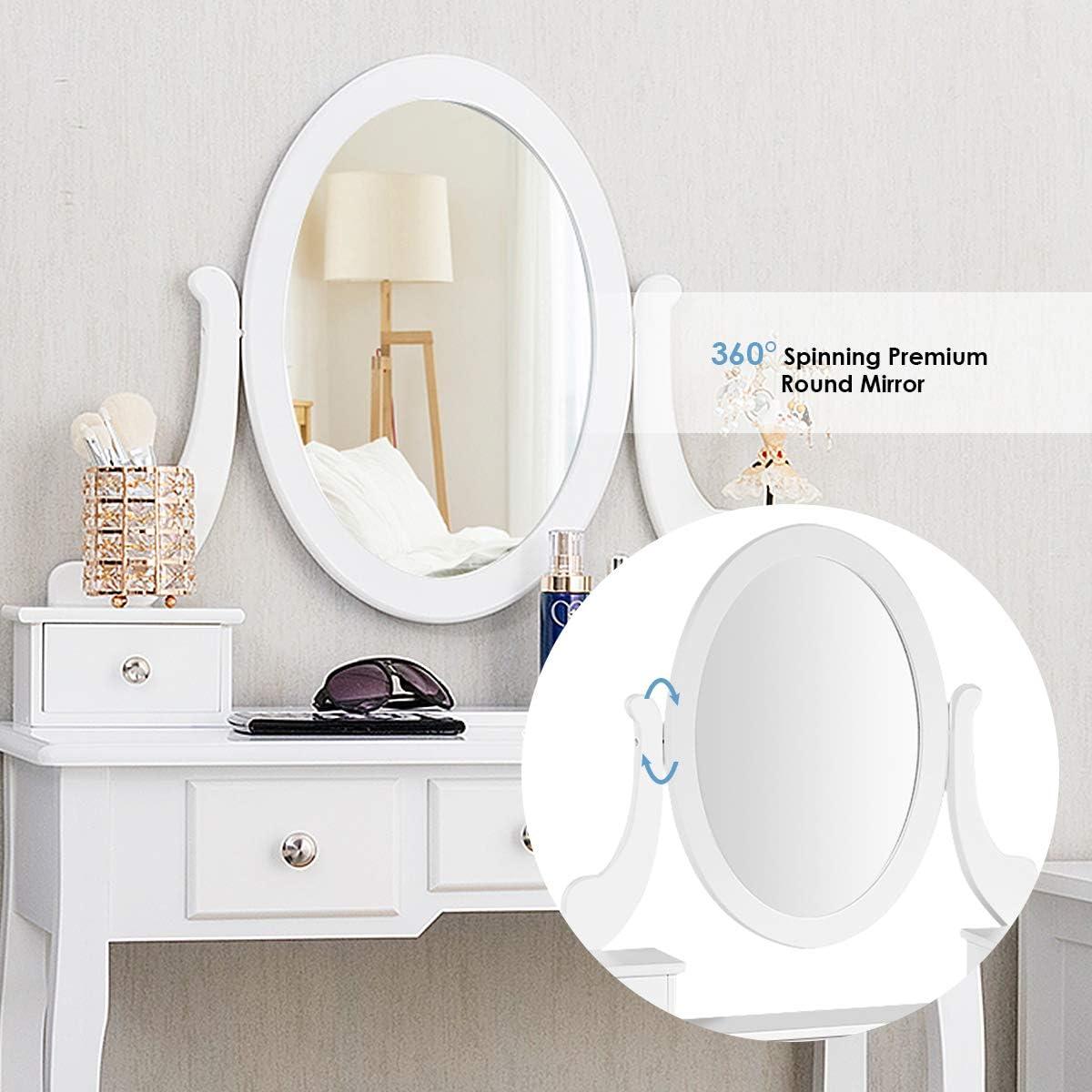 [Elegant and Simple Design]: With crystal handles and a 360° rotatable mirror, this vanity table set combines elegance and practicality, making it a stylish and durable addition to your bedroom.