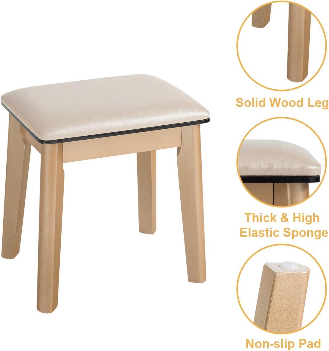 [Enhanced Stability & Safety]: Constructed with sturdy pine wood legs and equipped with anti-slip foot pads, this vanity set ensures reliable stability while protecting your floors from scratches. An anti-tip device is also included to securely anchor the table to the wall for added safety.