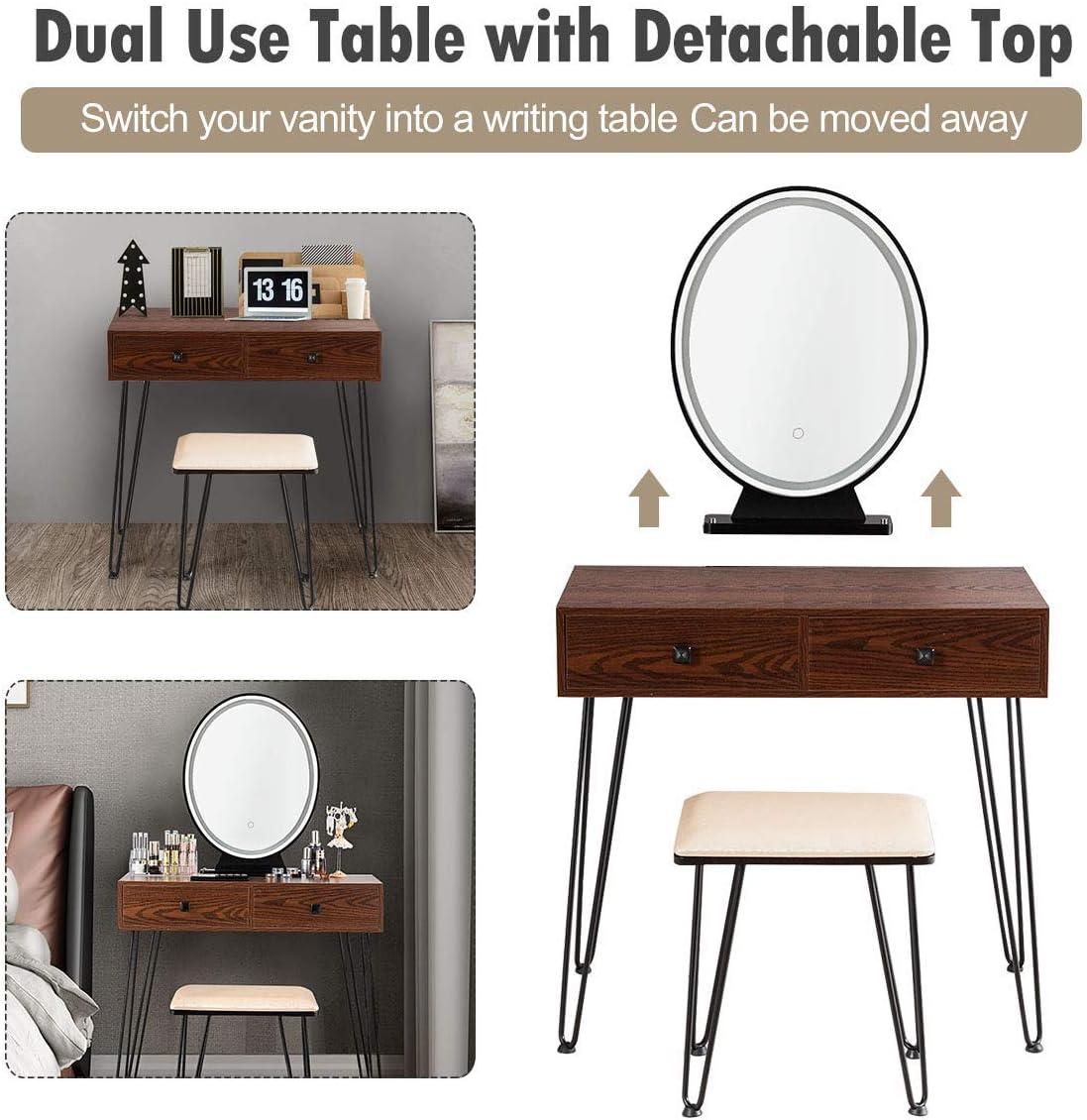 [Timeless Vintage Aesthetic]: This vanity set combines retro charm with contemporary function. The stylish design, featuring a mirror with integrated lighting, complements any bedroom or dressing area. It’s a perfect balance of form and utility, bringing a touch of elegance to your space.