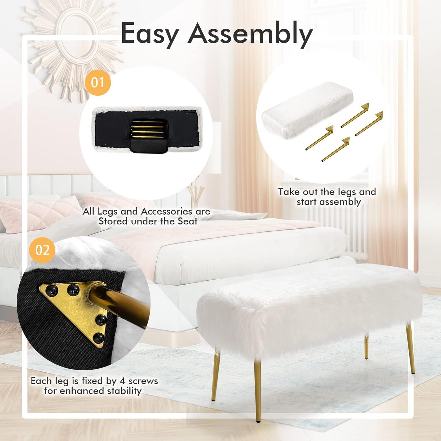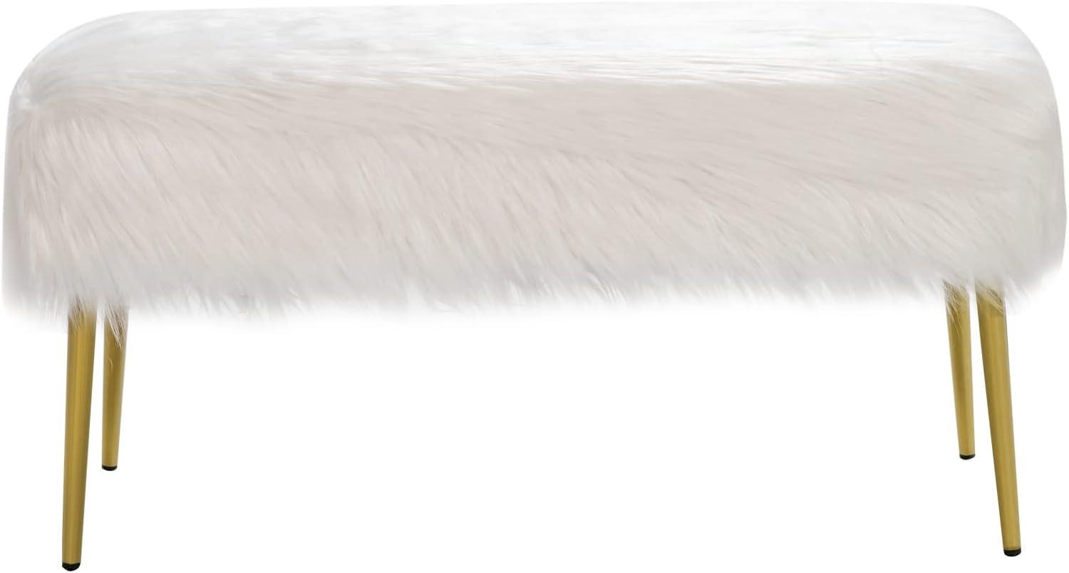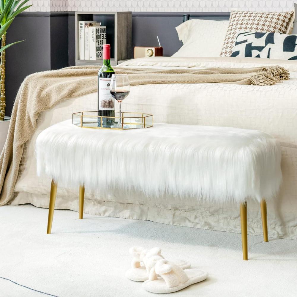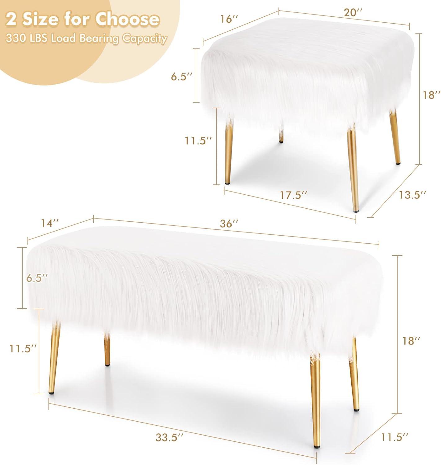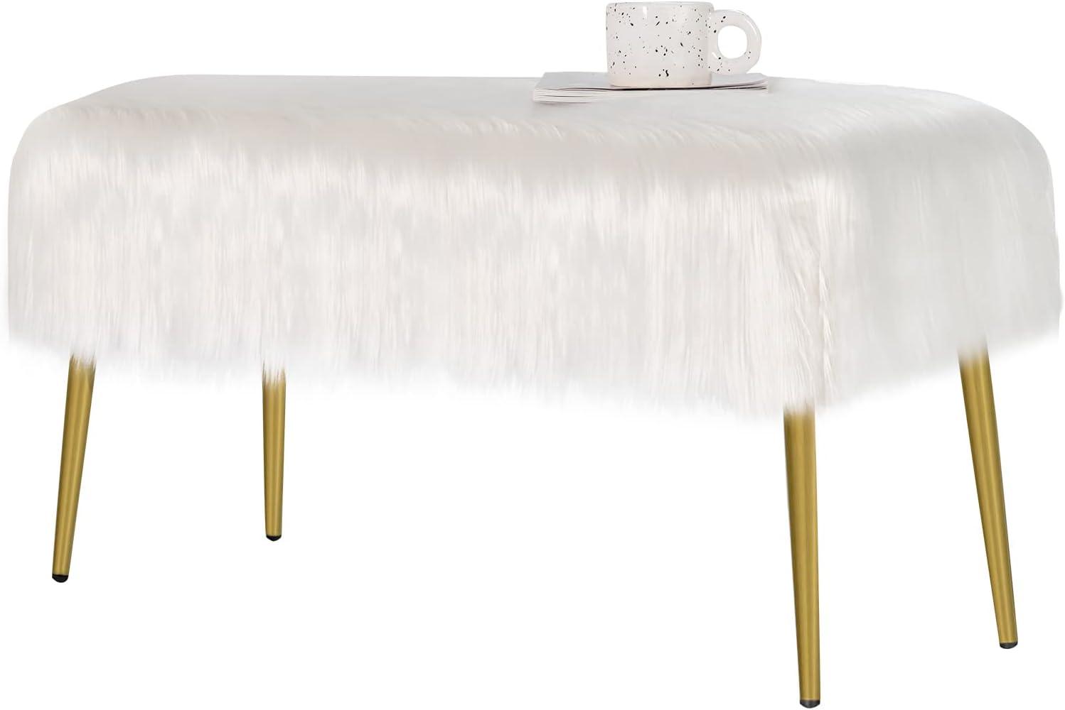 【Faux Fur Vanity Stool with Golden Legs】: The plush faux fur enables the vanity stool to become an eye-catching item that brings in glam and a warm feeling. Featuring golden legs, this vanity chair provides both a stable chair and an accent furniture piece to decorate your interior.