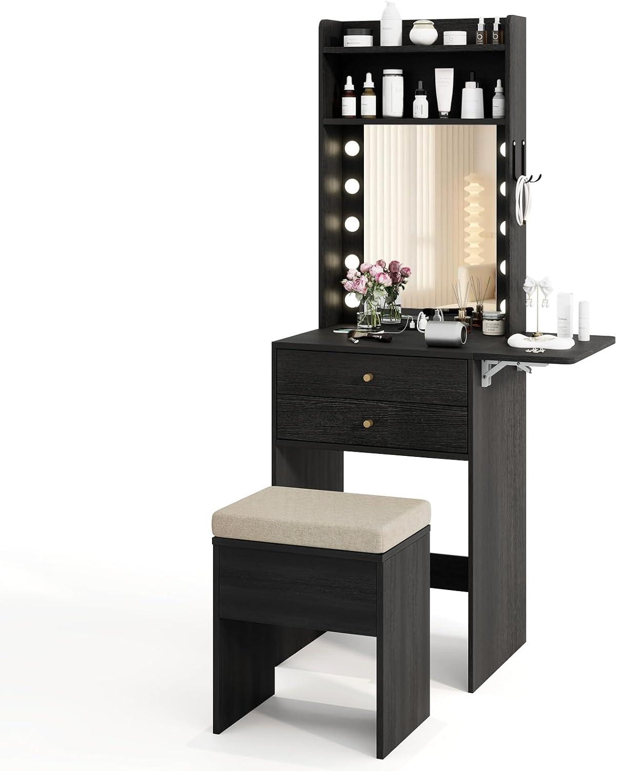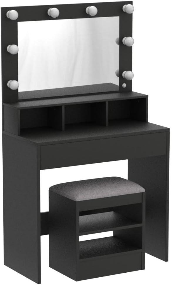 Compact Design: Ideal for small spaces, this vanity table measures 31.5″ x 16″ x 55″ (L x W x H), offering a compact but comprehensive setup that fits seamlessly into bedrooms or corners without occupying too much space.