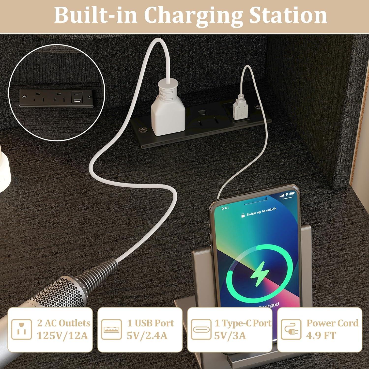 Built-in Charging Station: Equipped with 2 AC outlets, a USB port, and a Type-C port, the integrated charging station allows you to stay connected and power up your devices while you prepare, ideal to charge phones, tablets, or other electronic devices.
