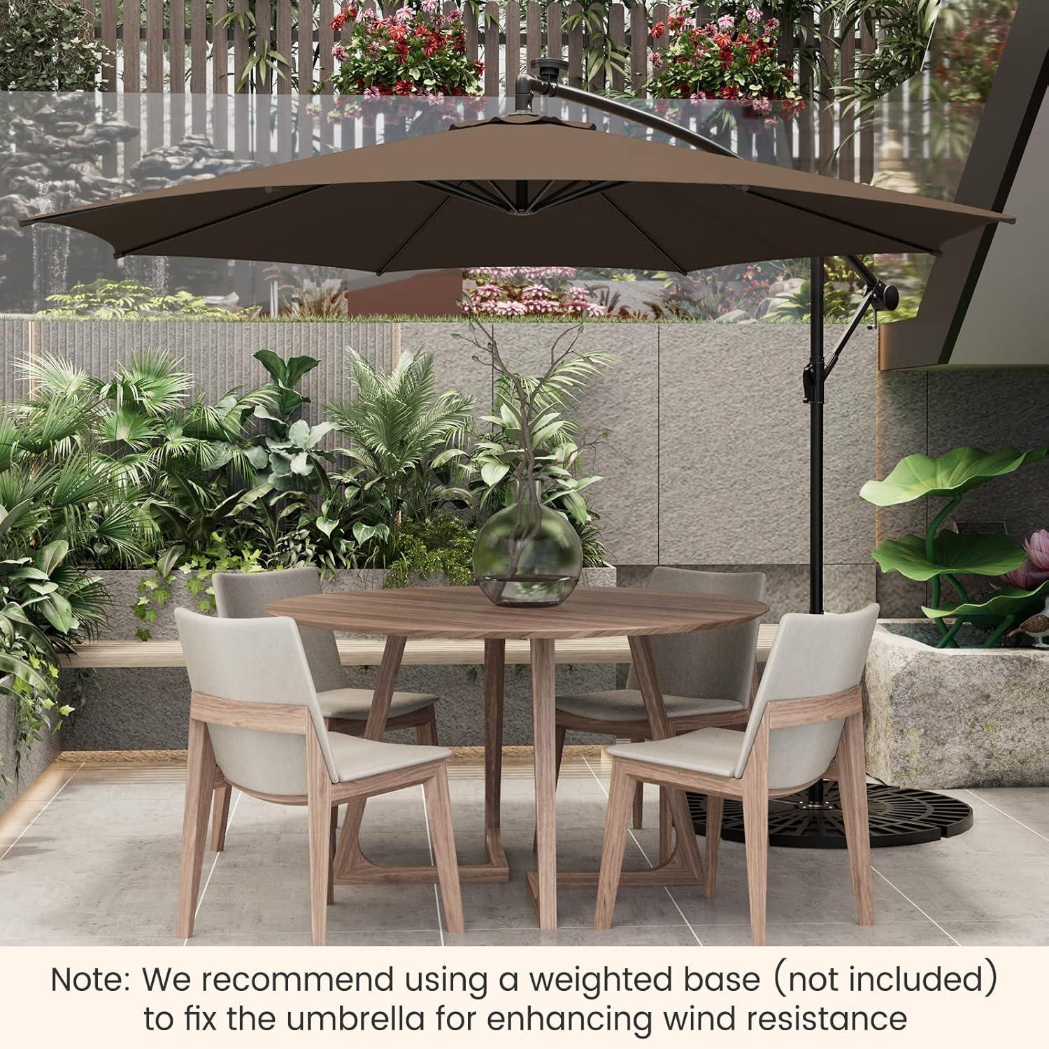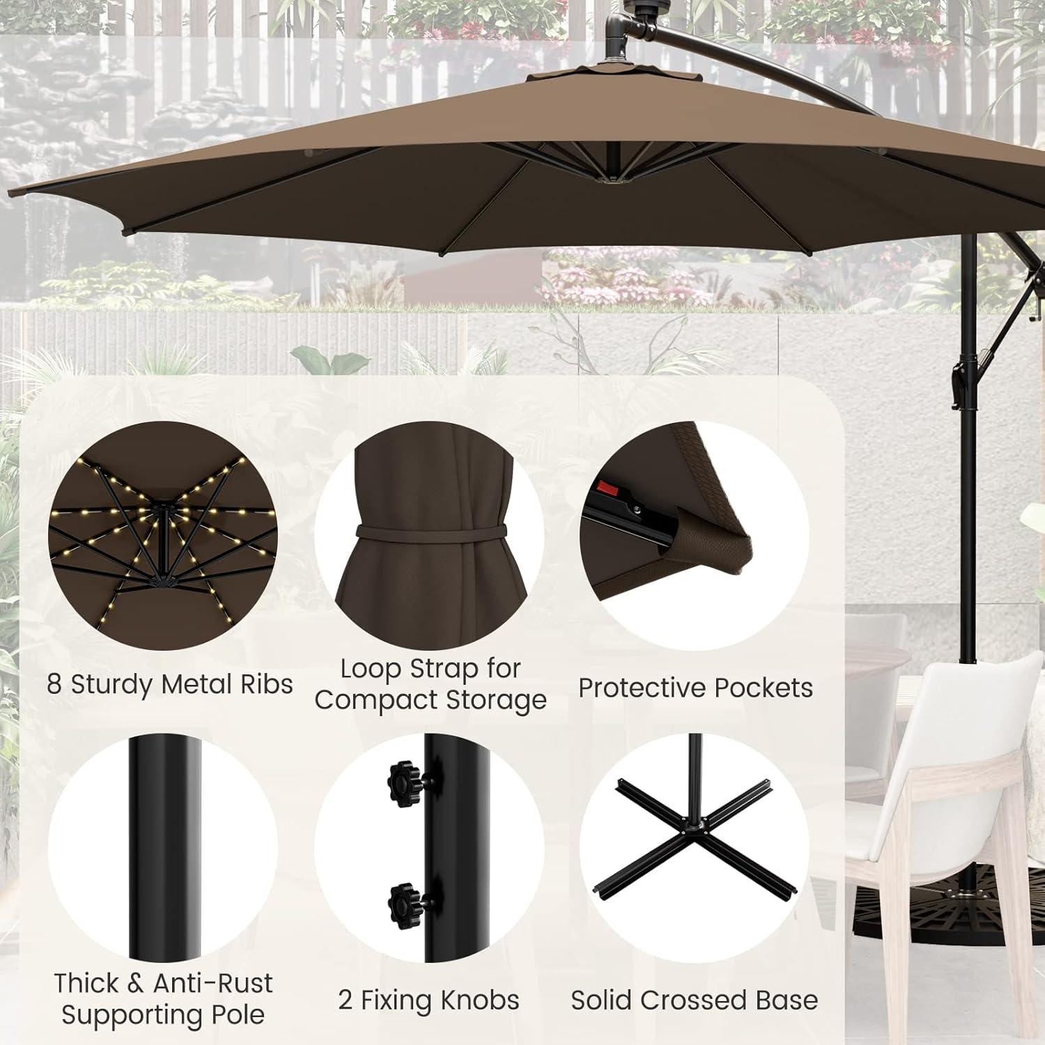 Giantex 10 ft Offset Patio Umbrella with 112 Solar Meteor Shower Lights, Outdoor Cantilever Umbrellas with 8 Ribs, Easy Tilt Adjustment, Hanging Market Umbrella for Backyard Garden Lawn Poolside(Coffee)
