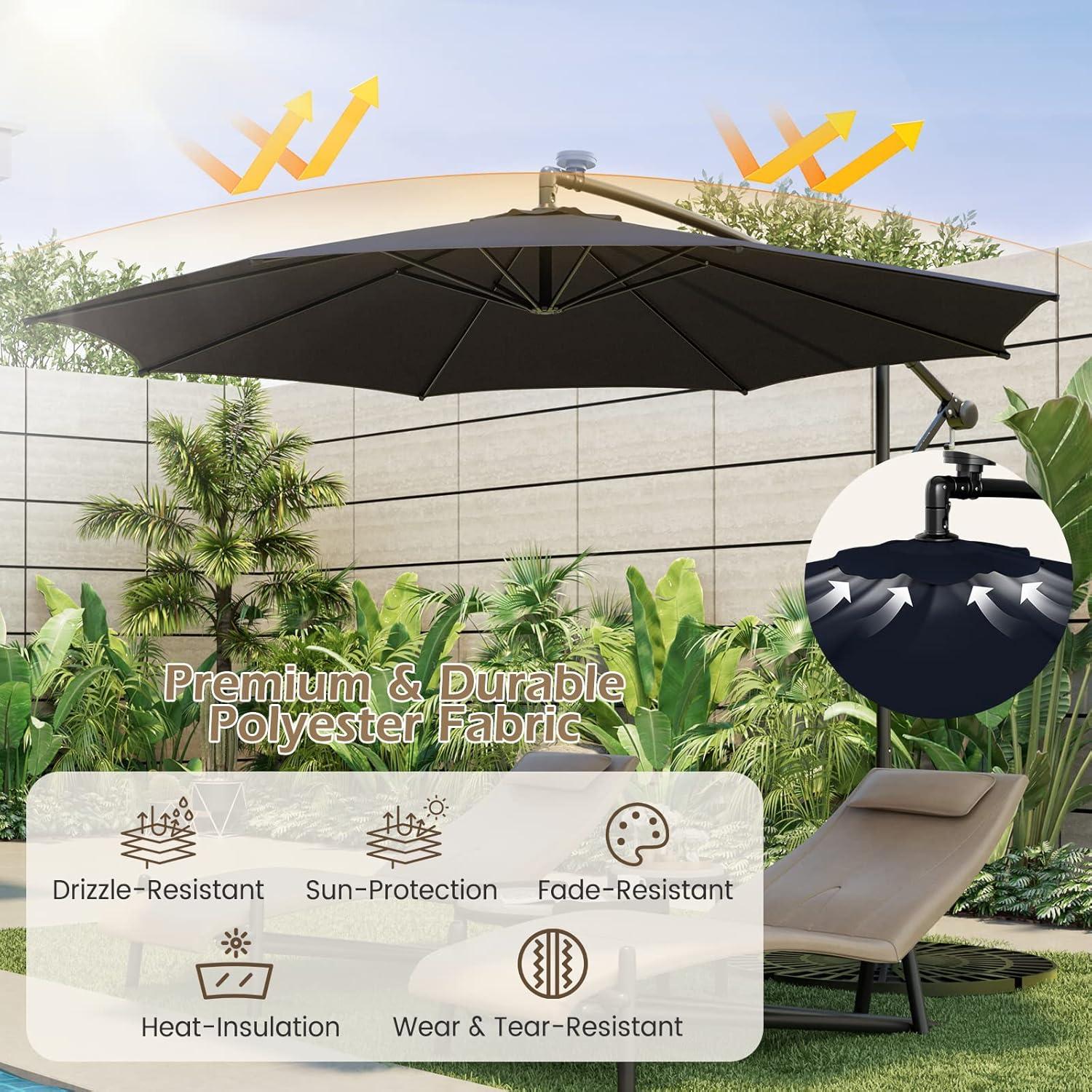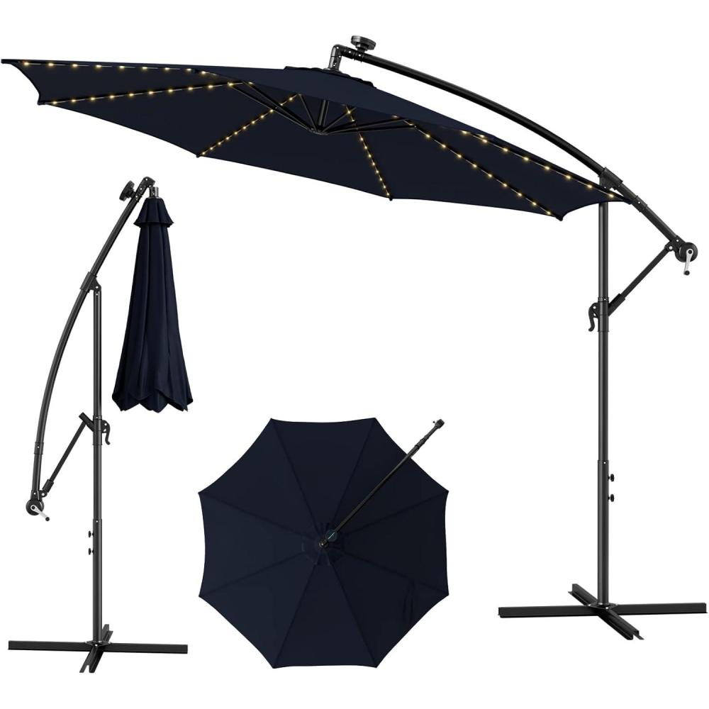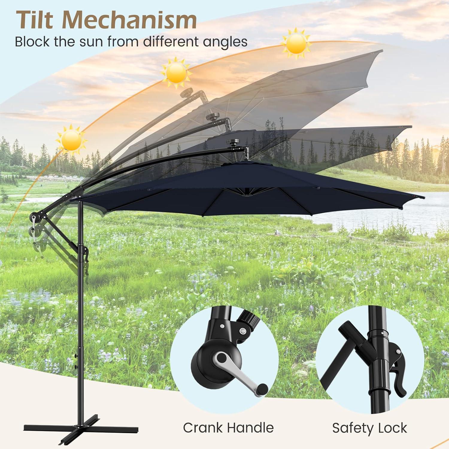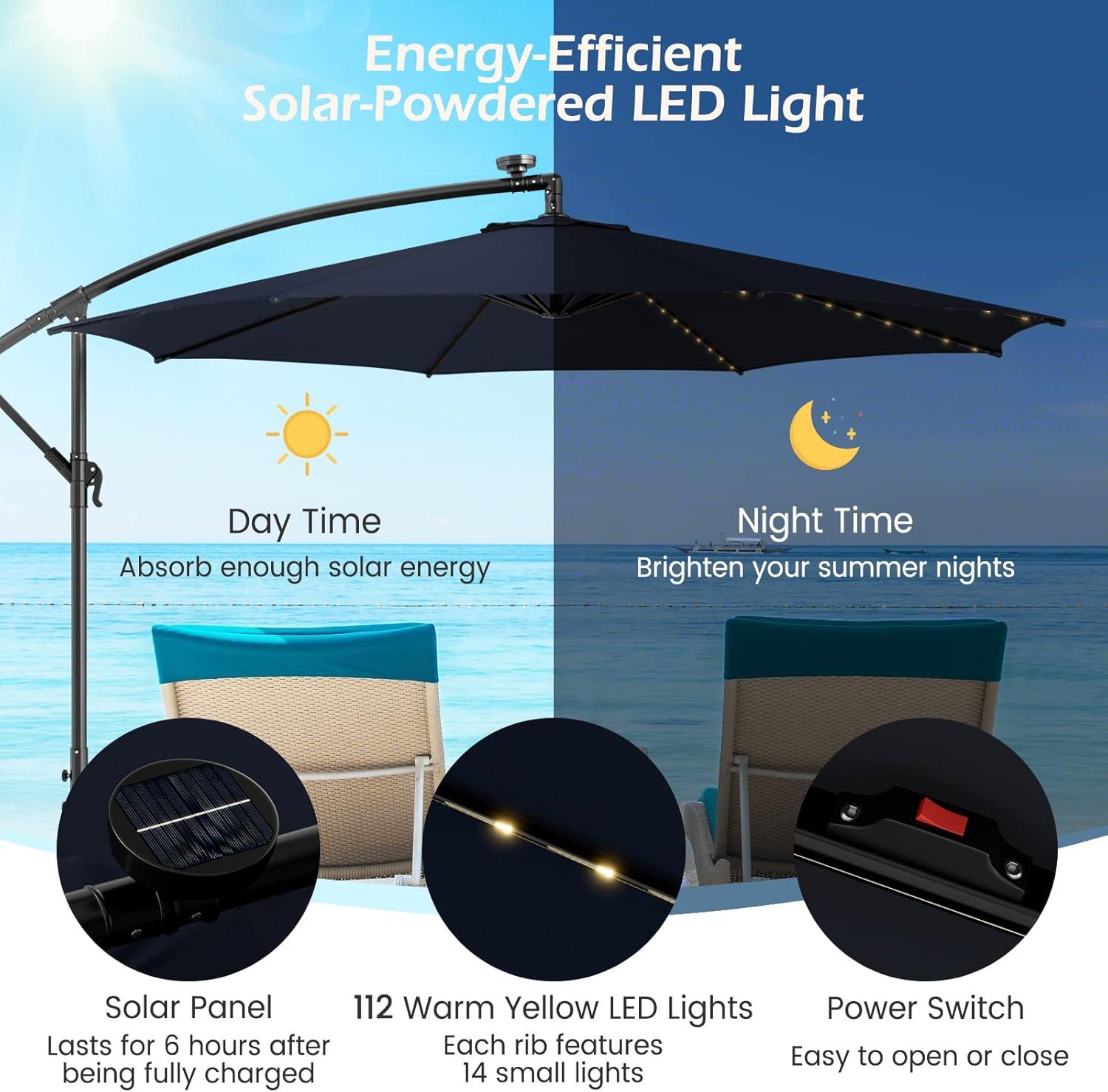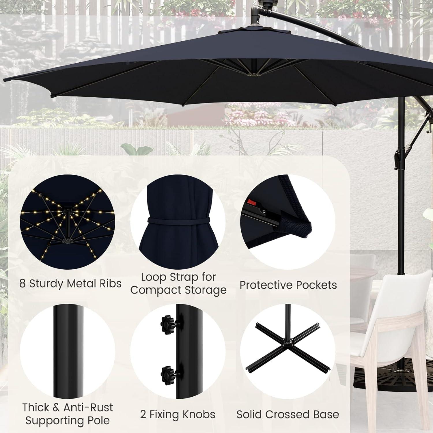 Giantex 10 ft Offset Patio Umbrella with 112 Solar Meteor Shower Lights, Outdoor Cantilever Umbrellas with 8 Ribs, Easy Tilt Adjustment, Hanging Market Umbrella for Backyard Garden Lawn Poolside(Navy)