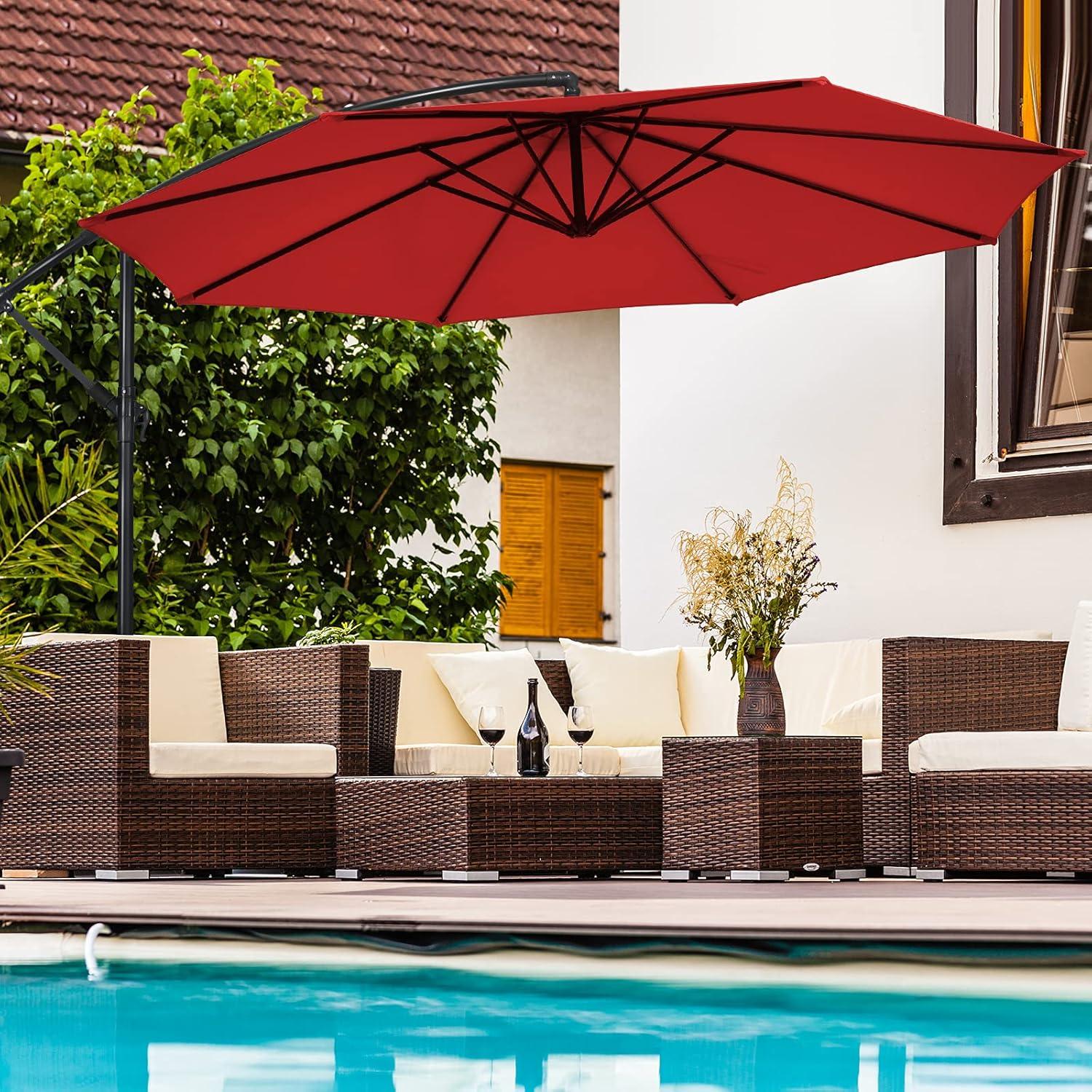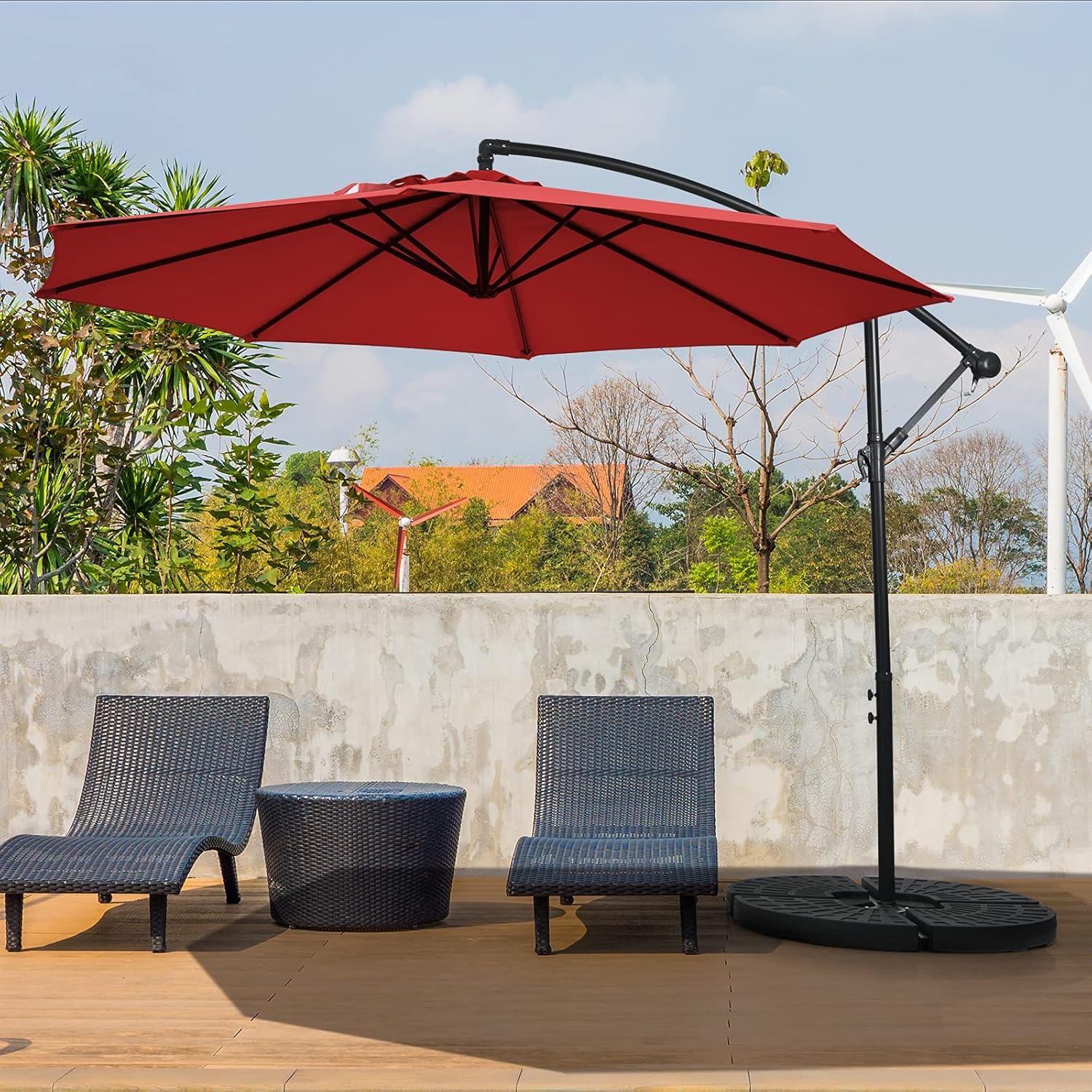 Giantex 10FT Patio Offset Umbrella, 8 Ribs Cantilever Umbrella Outdoor w/Crank, Cross Base, Tilt Adjustment, Large Hanging Market Umbrella for Poolside, Yard, Lawn, Garden(Burgundy)