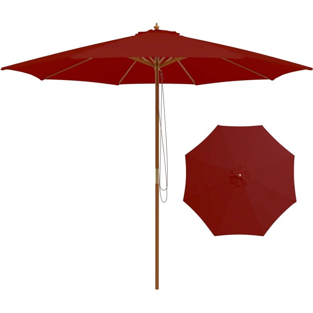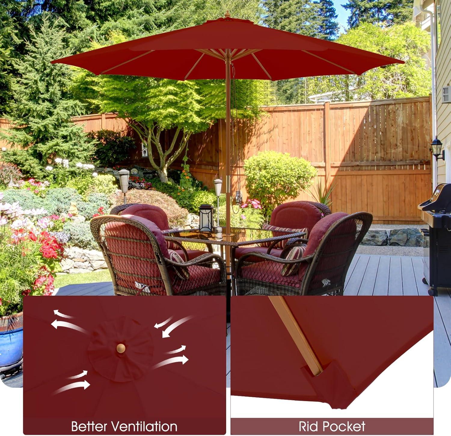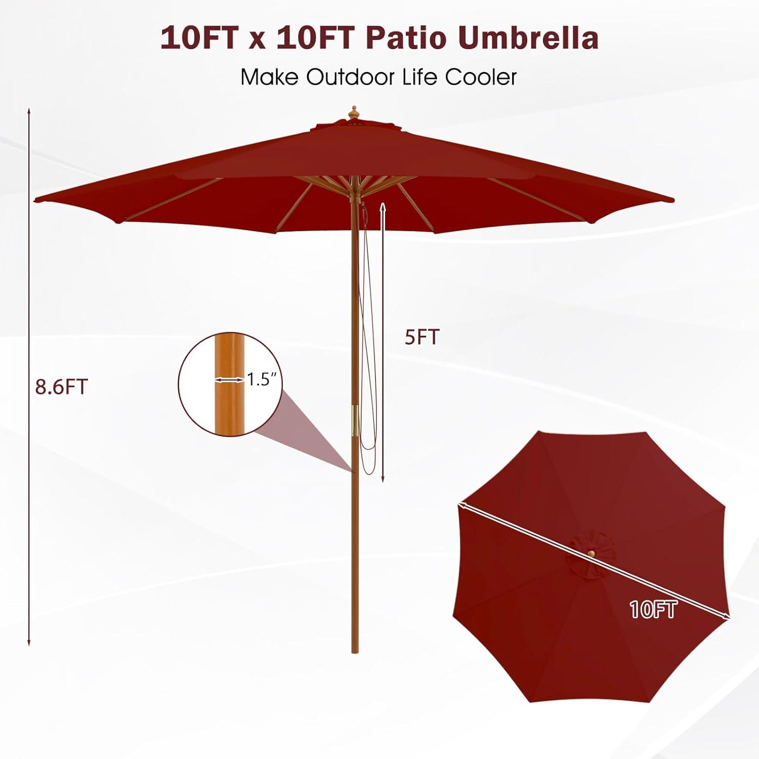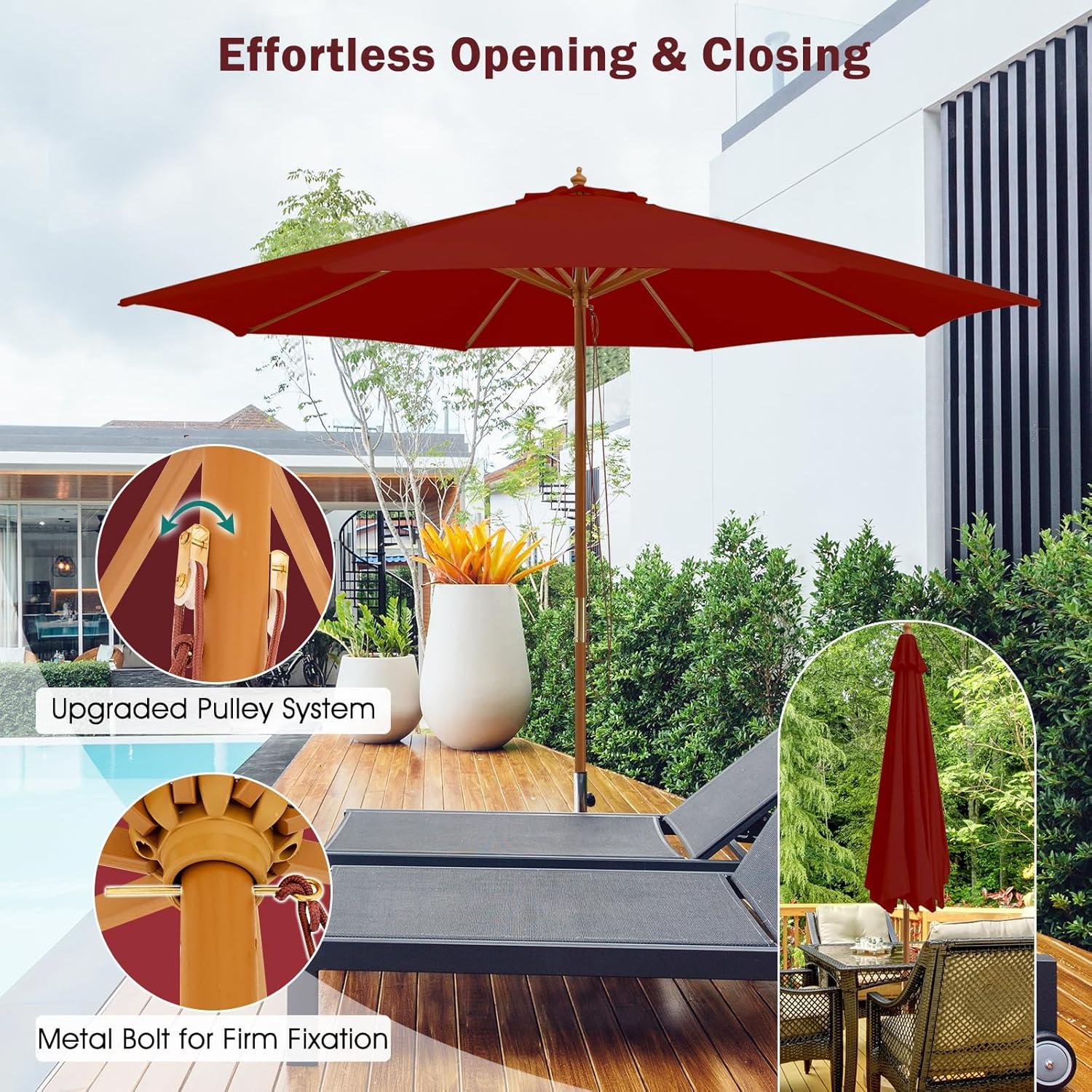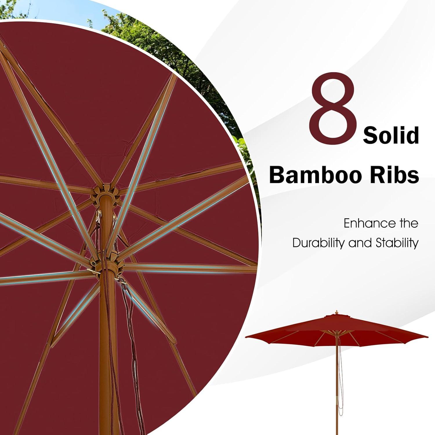 Giantex 10FT Patio Umbrella, Outdoor Table Market Umbrella with 8 Bamboo Ribs, Pulley Lift and Ventilation Hole, Outdoor Sunshade Umbrella for Poolside Backyard Beach(Burgundy)