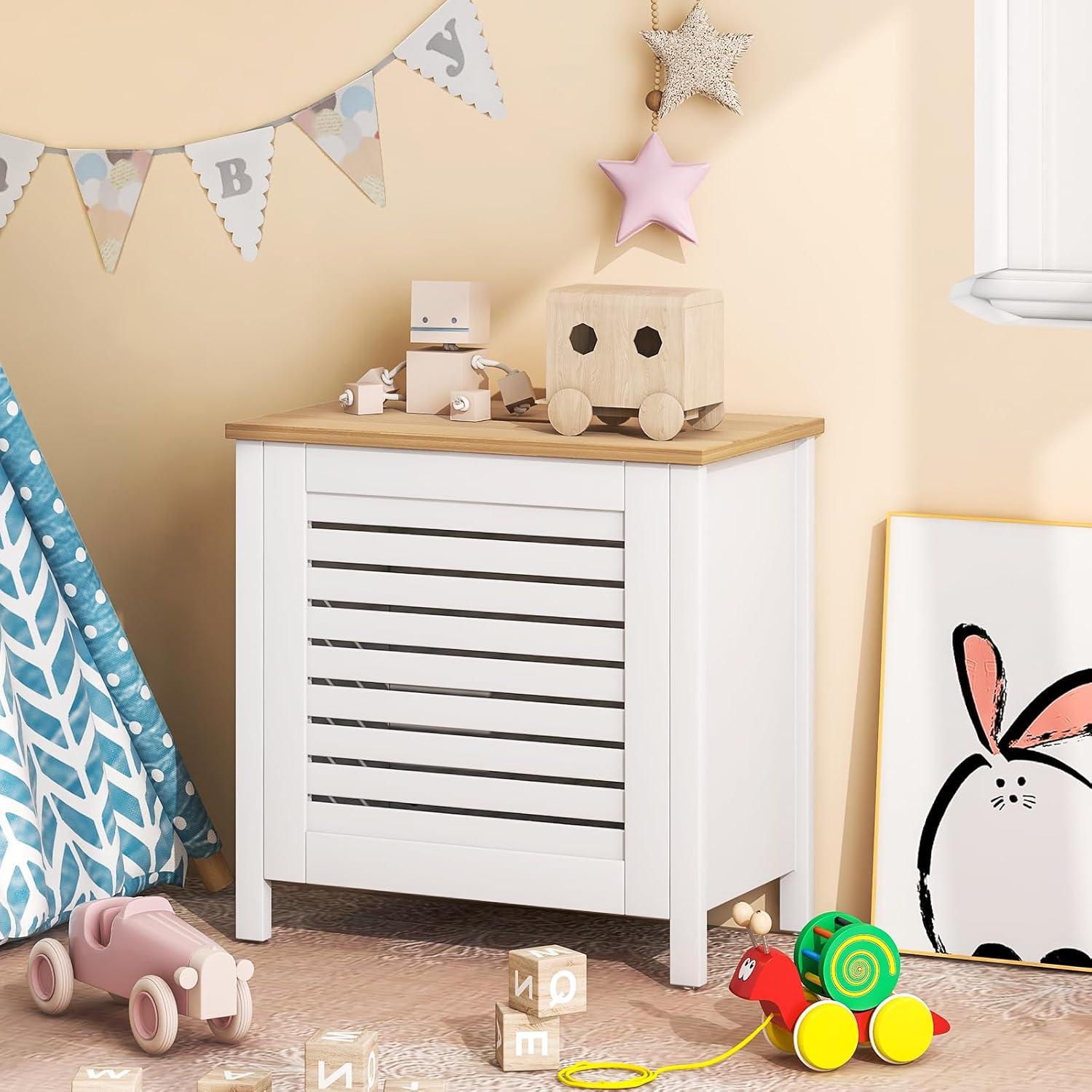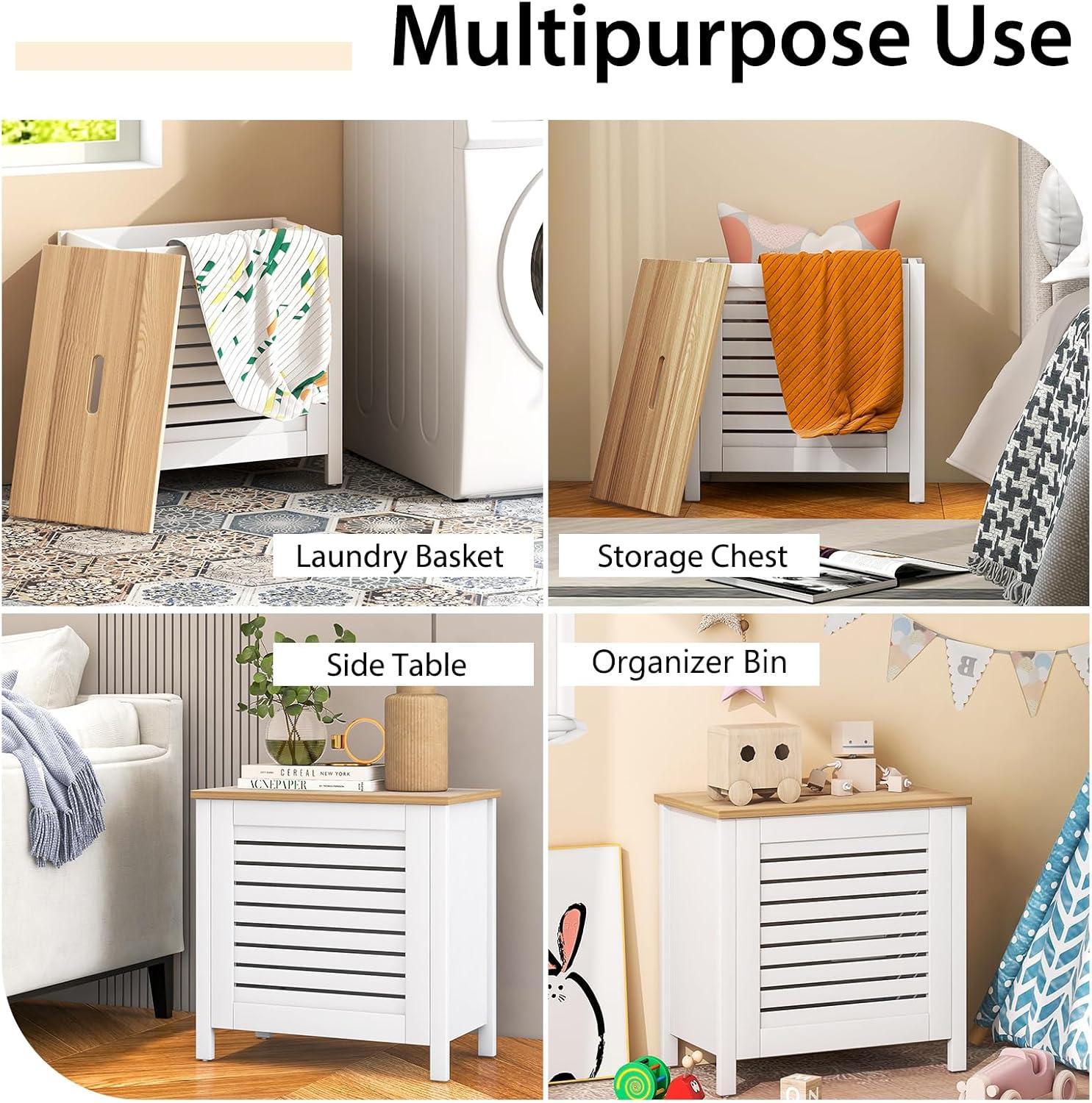 By removing the lid, you can store your dirty clothes,washed clothes, towels and other products in the large inner space to keep your room tidy and clean. In addition, the raised base and louvered design effectively keep inner items dry for longer storage. Whether you want to use it in bedroom, bathroom, closet, or laundry room, it will always fit your various demands. What’s more, the simple colors make this storage chest modern enough to match your home decoration.