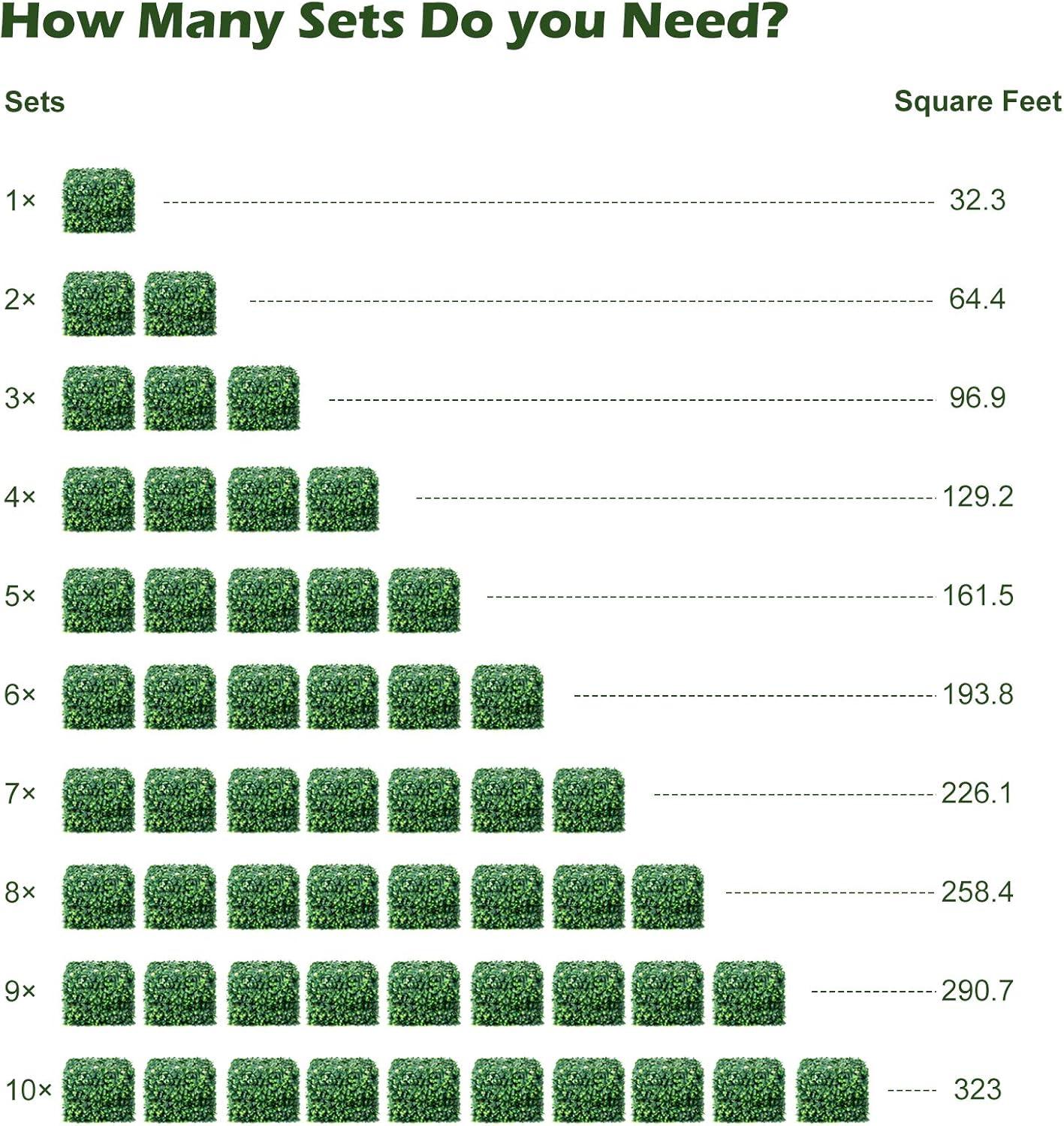 【High-density Milan Leaves Panel】: It is worth mentioning that 12 tiles of 20″ x 20″ (33.3 square feet) artificial hedge panels feature a height of 2″ and 4 layers of leaves for a more lush and realistic appearance. By strategically placing artificial fences in areas that may be exposed, you can decorate your house while ensuring personal privacy.