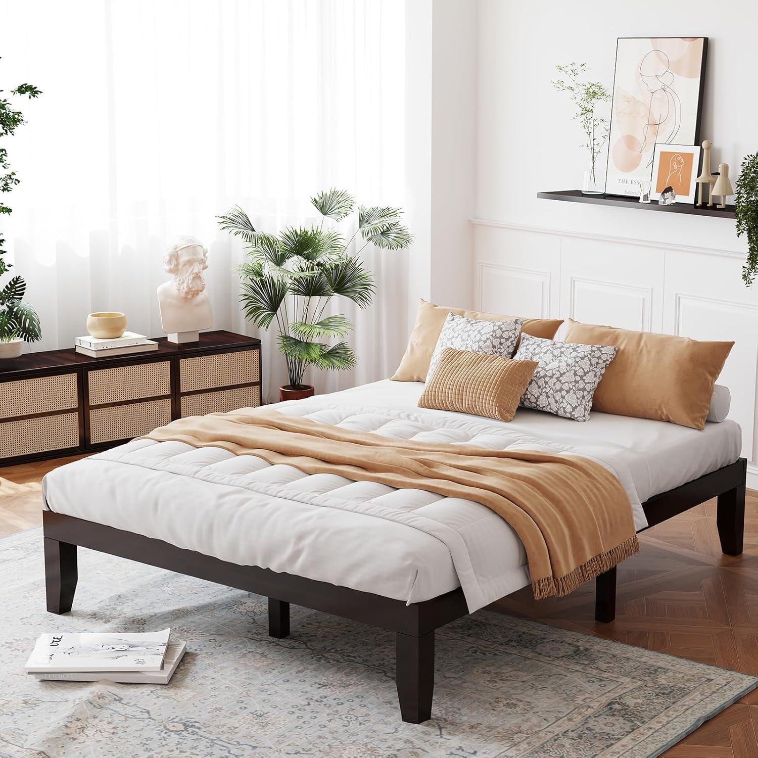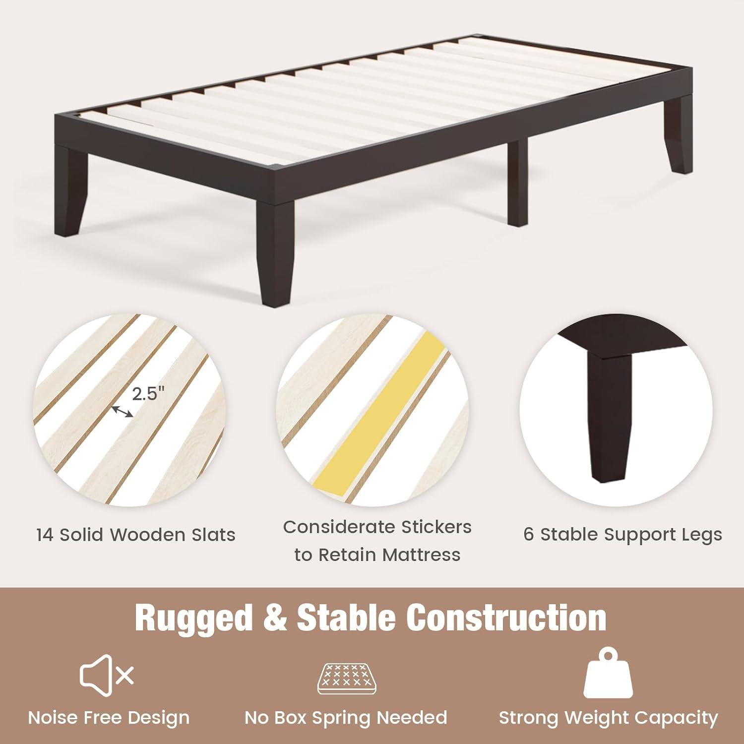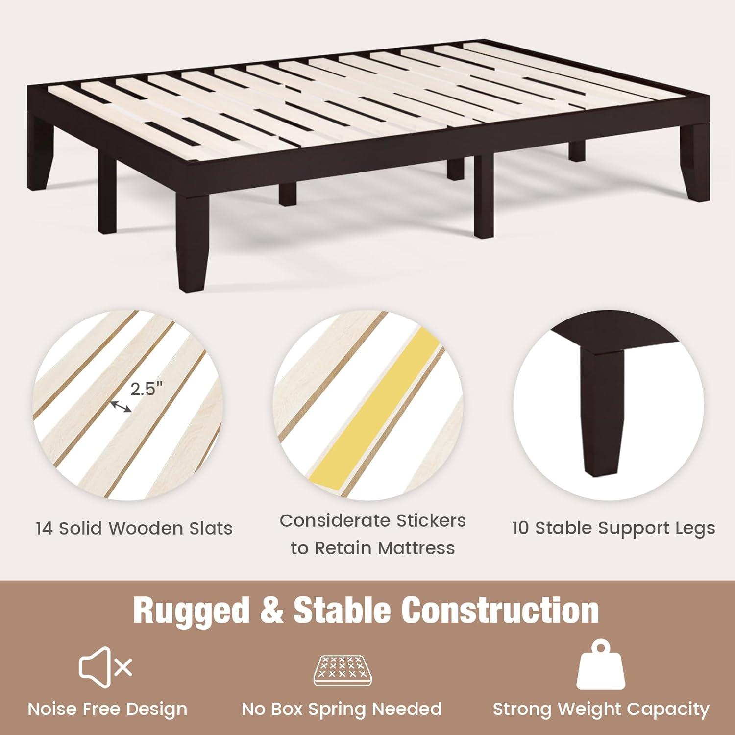 Giantex 14 Inch Queen Wood Platform Bed Frame, Minimalist Style Mattress Foundation with Solid Rubber Wood, Heavy Duty Slat Support, Without Headboard, Easy Assembly, No Box Spring Needed, Walnut(Espresso)