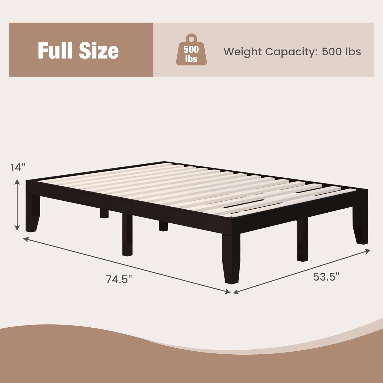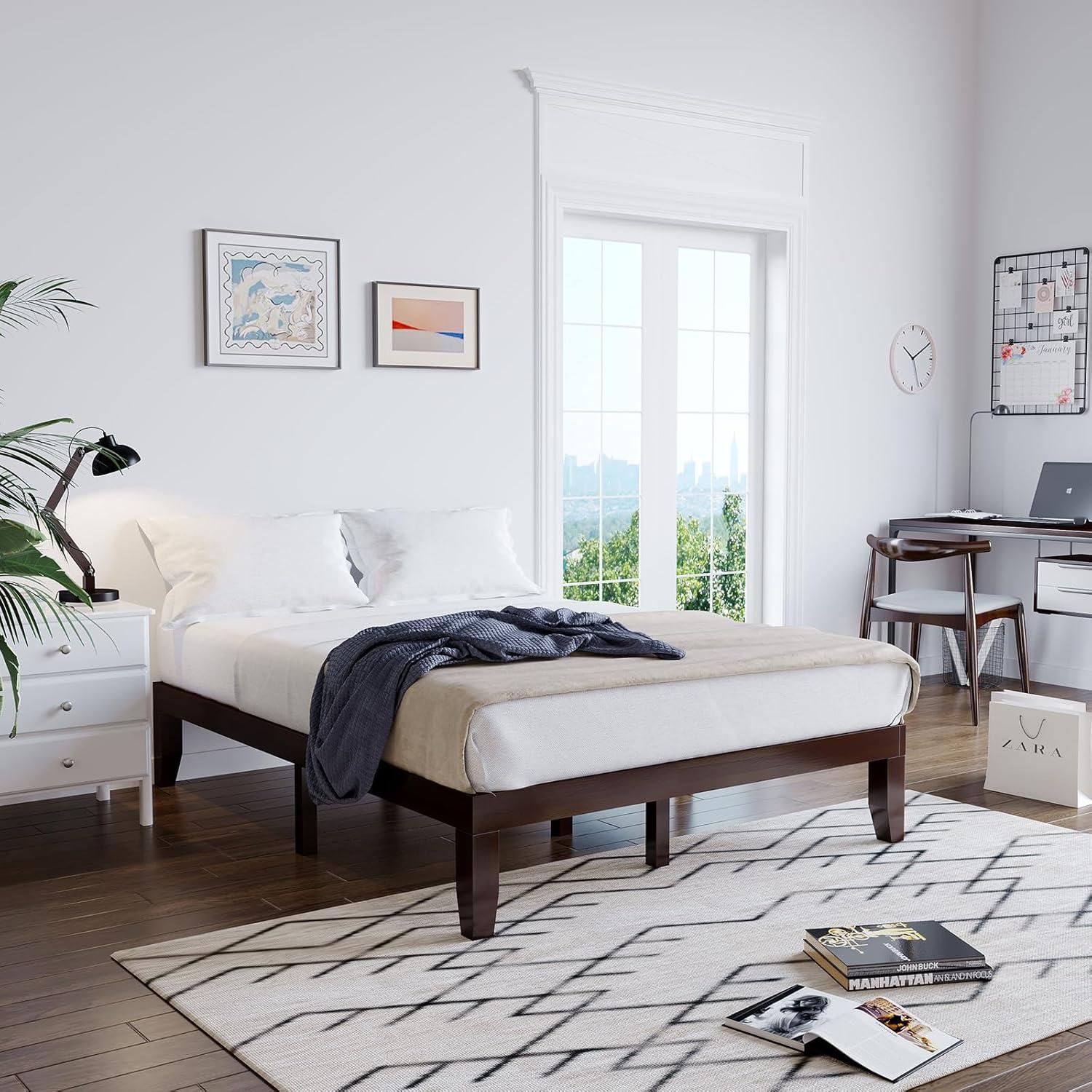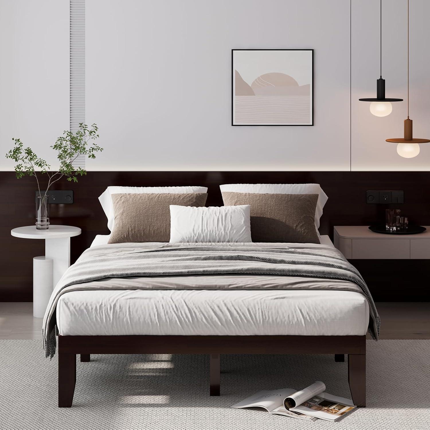 Giantex 14 Inch Queen Wood Platform Bed Frame, Minimalist Style Mattress Foundation with Solid Rubber Wood, Heavy Duty Slat Support, Without Headboard, Easy Assembly, No Box Spring Needed, Walnut(Espresso)