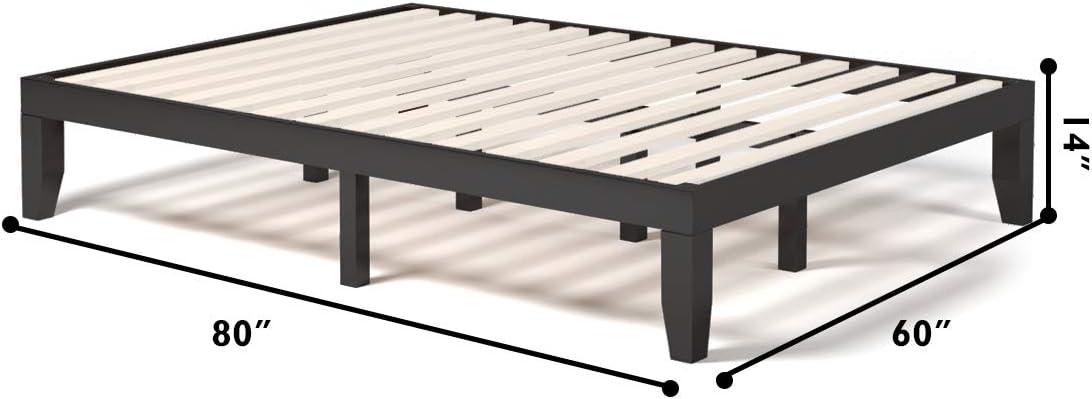 Giantex 14 Inch Queen Wood Platform Bed Frame, Minimalist Style Mattress Foundation with Solid Rubber Wood, Heavy Duty Slat Support, Without Headboard, Easy Assembly, No Box Spring Needed, Walnut(Natural)