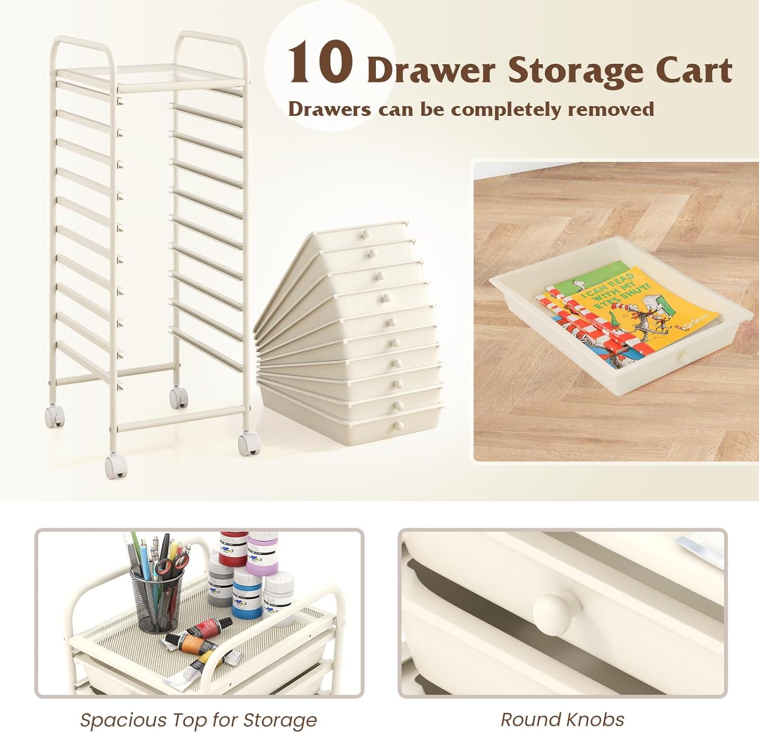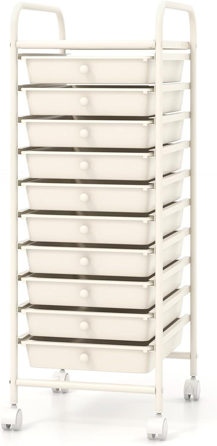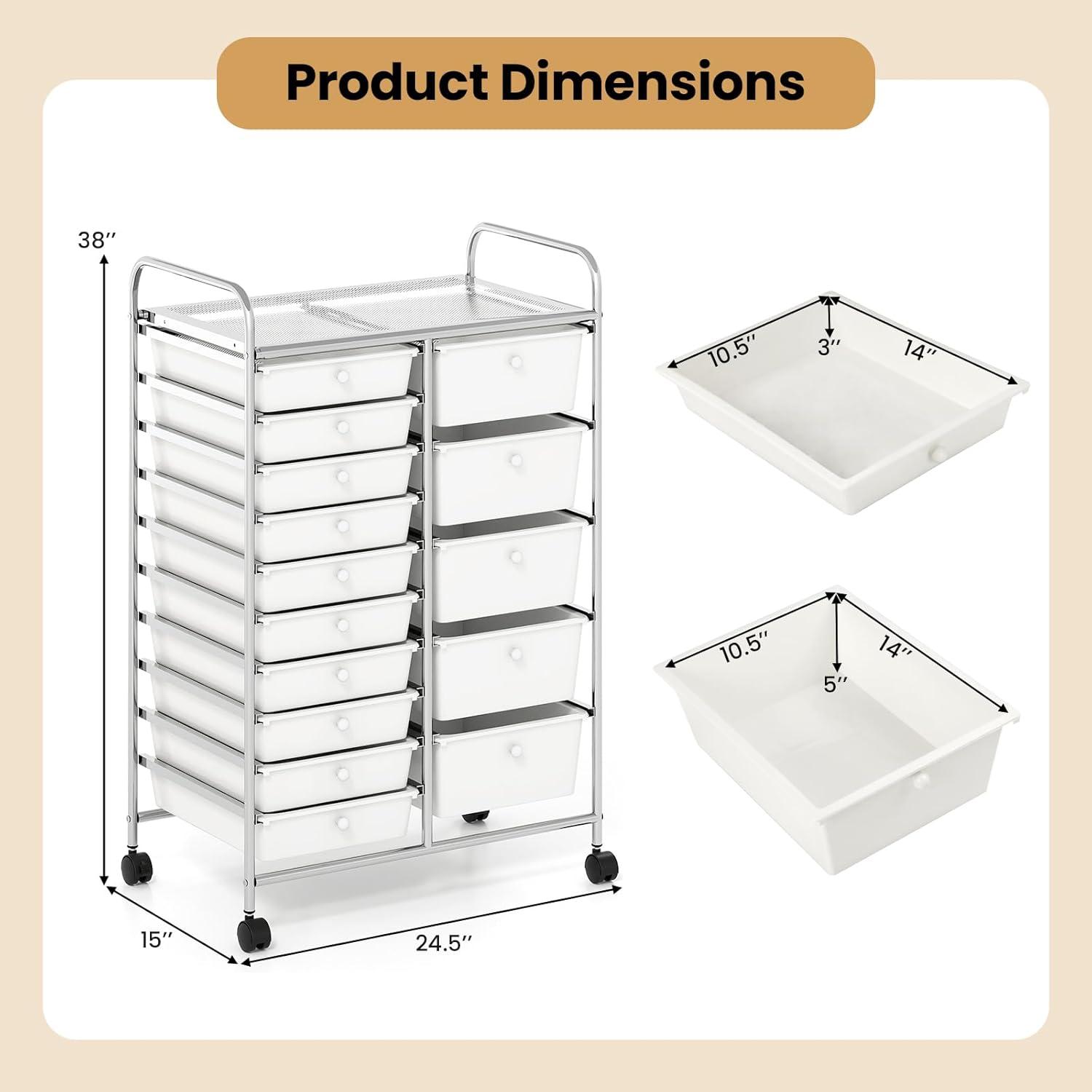 Giantex 15-Drawer Organizer Cart Office School Storage Cart Rolling Drawer Cart for Tools, Scrapbook, Paper (Multicolor)(Ivory)