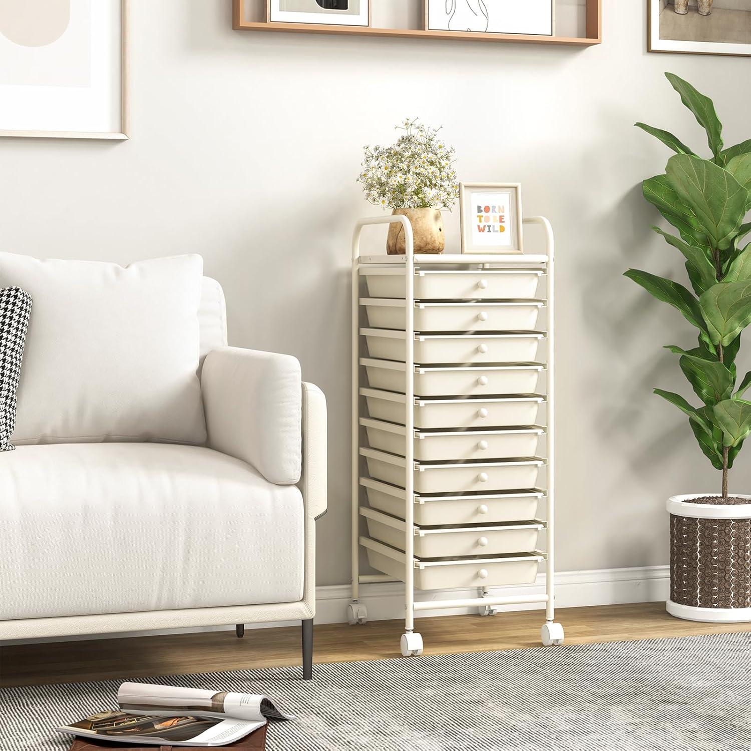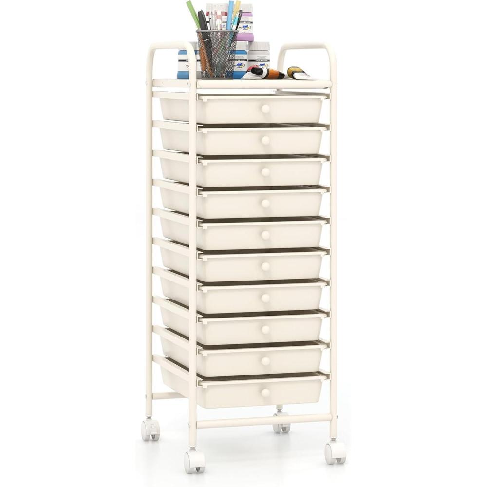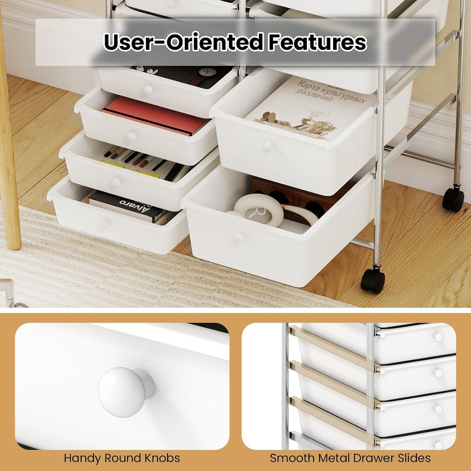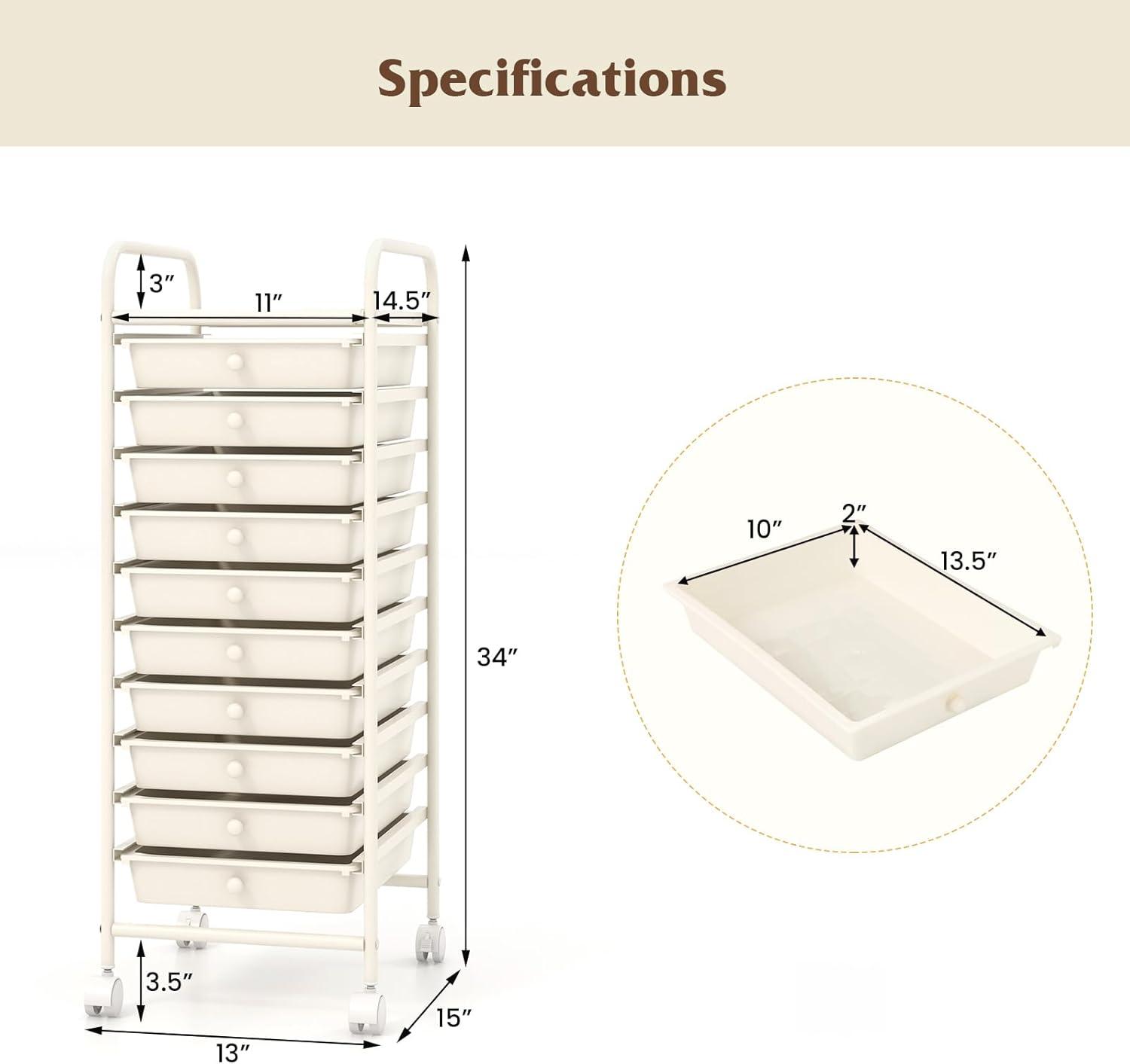 Giantex 15-Drawer Organizer Cart Office School Storage Cart Rolling Drawer Cart for Tools, Scrapbook, Paper (Multicolor)(Ivory)