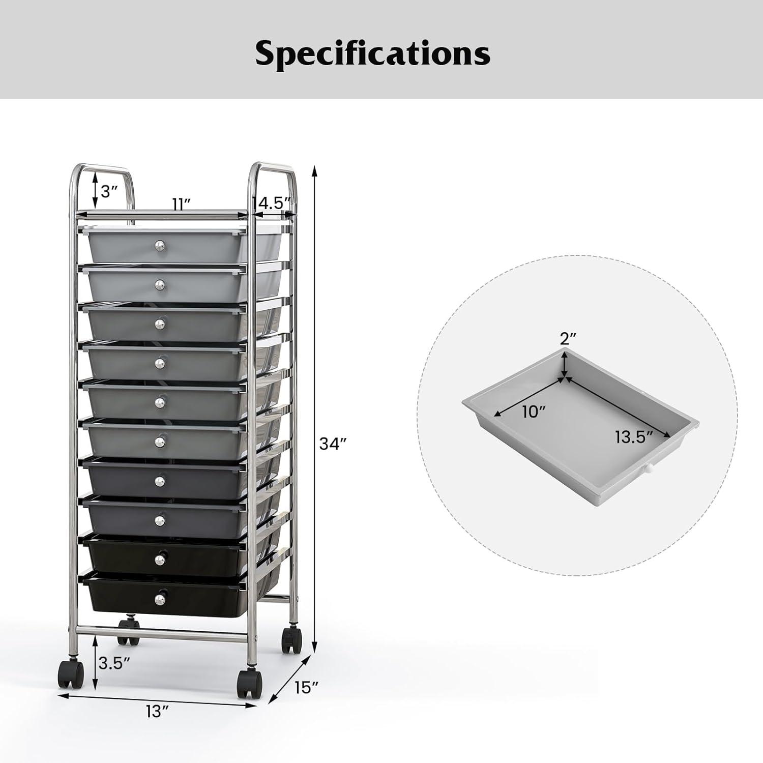 [Durable Rolling Storage Cart]: This rolling organizer cart allows multipurpose use in home, office and school use. Besides, well-crafted construction with smooth chrome finish perfectly combines stability with durability.