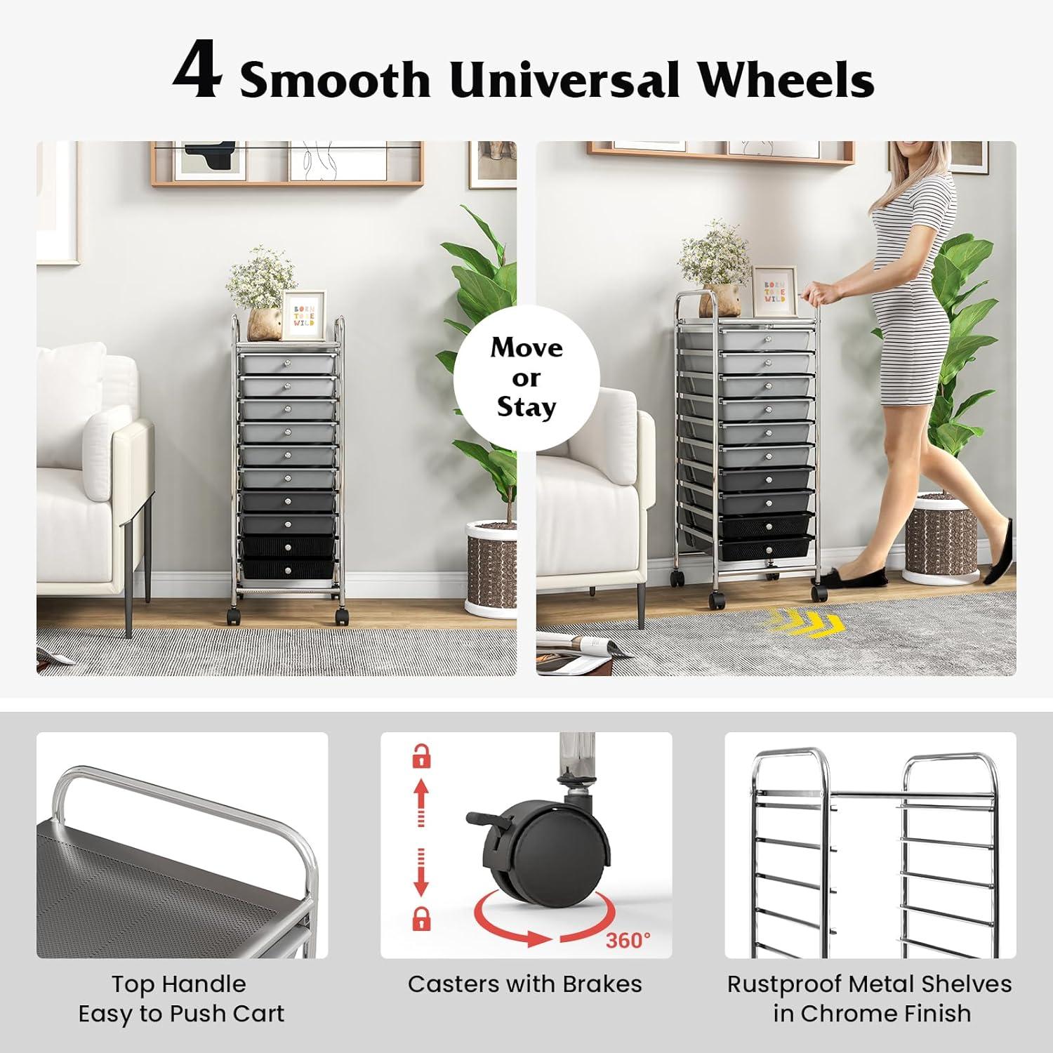Giantex 15 Drawer Rolling Cart with Drawers, Storage Organizer Cart for Classroom Office School Teacher, Mobile Drawer Cart for Tools, Crafts, Small Printer, Paper, Pastel(Gray Gradient)