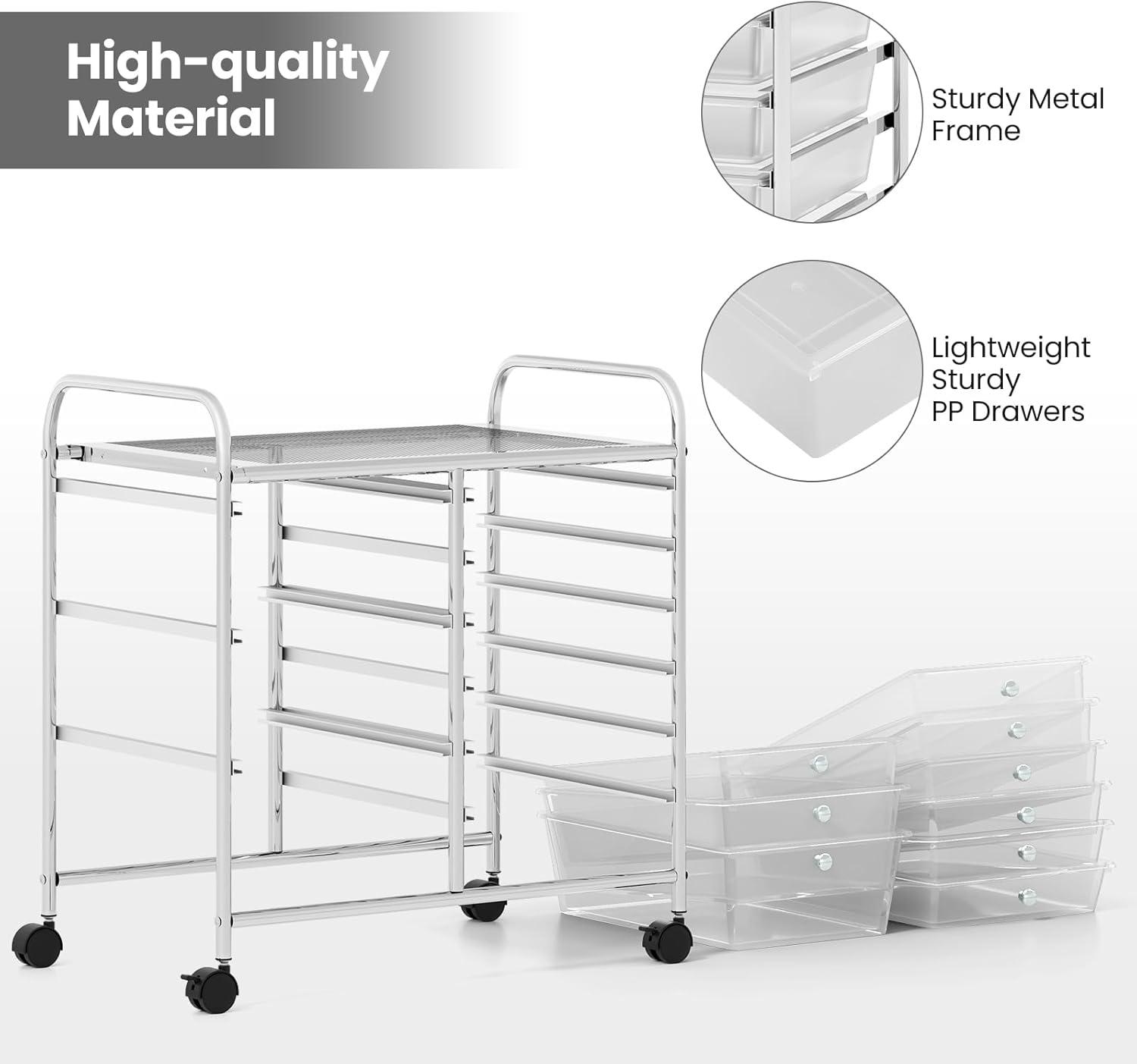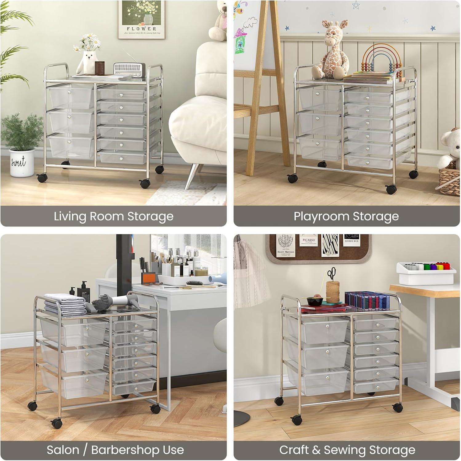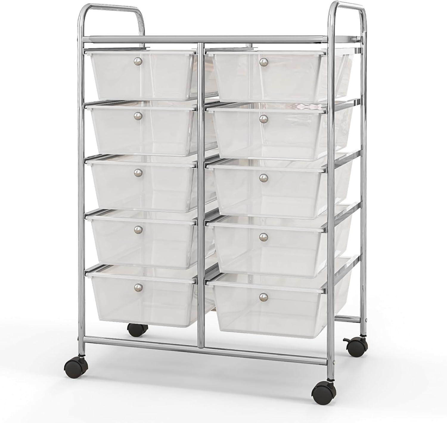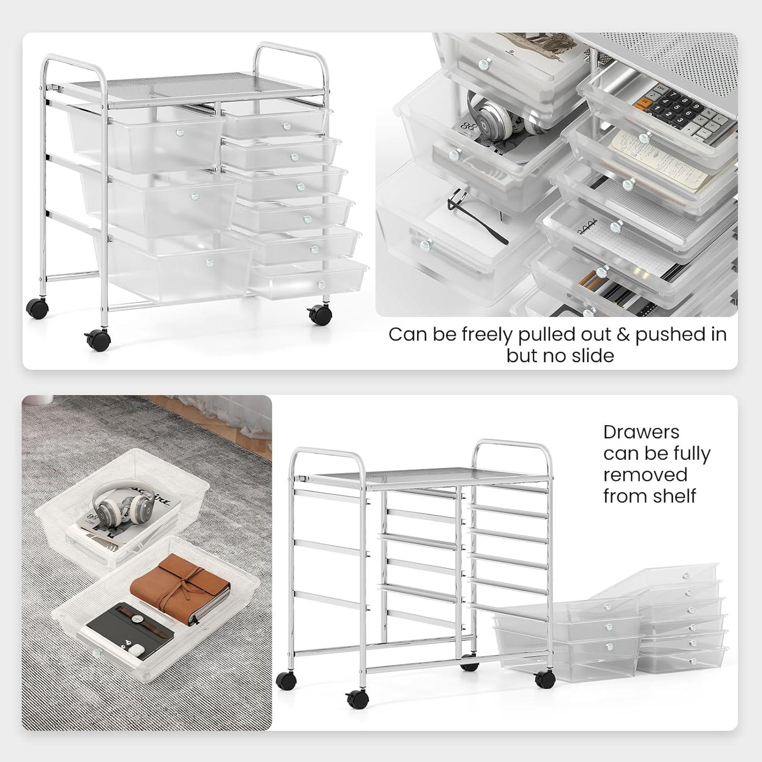 Get organized in style with our sleek and spacious rolling storage cart! Featuring 15 removable drawers, 5 of which are large and 10 are medium-sized, this cart offers plenty of storage options. The baking finish metal frame and durable PP drawers ensure long-lasting use, while the 4 universal casters (2 of which are lockable) make it easy to move around. With user-friendly features such as sleek handles and convenient knobs, this cart is perfect for living room storage, playroom storage, salon/barbershop use, or craft & sewing storage. Measuring 25″ x 14.5″ x 34.5″ (L x W x H), the utility cart saves floor space. Make clutter a thing of the past – order now!