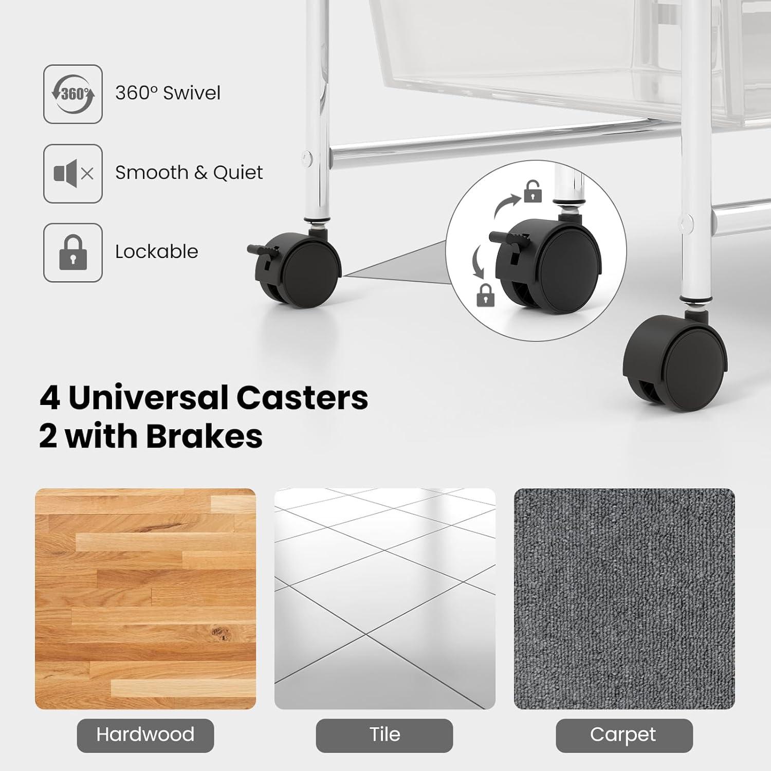 360° Swivel casters roll smoothly on hardwood, tile or carpet floor