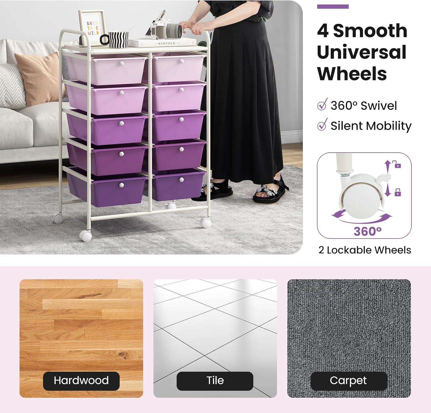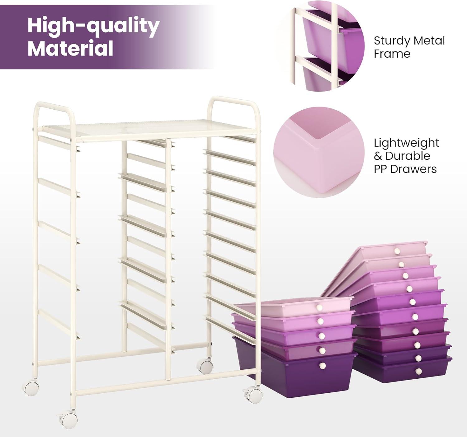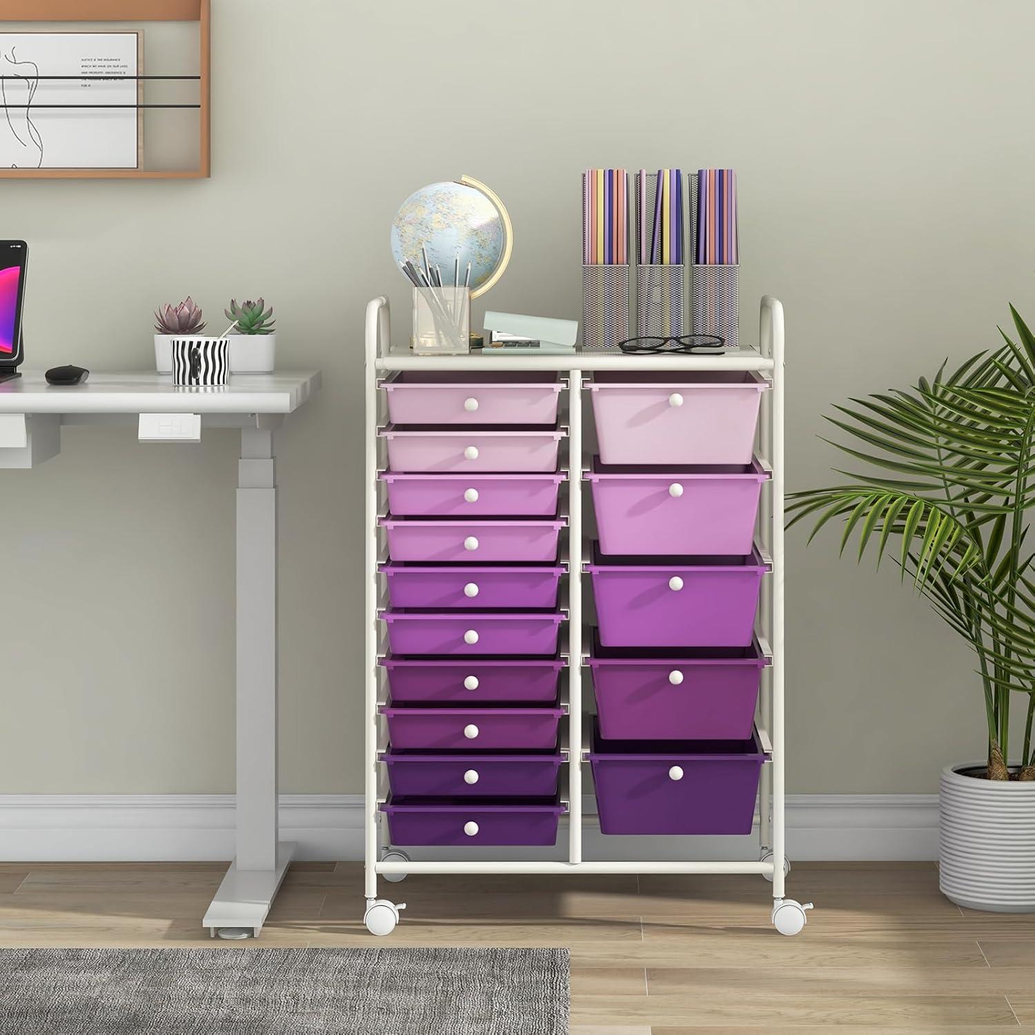 Giantex 15 Drawers Rolling Cart, Classroom Organizers, Storage Cart with Wheels, for Teacher Office Home School Supplies Tool Craft Art Paper, Green Gradient(Purple Gradient)