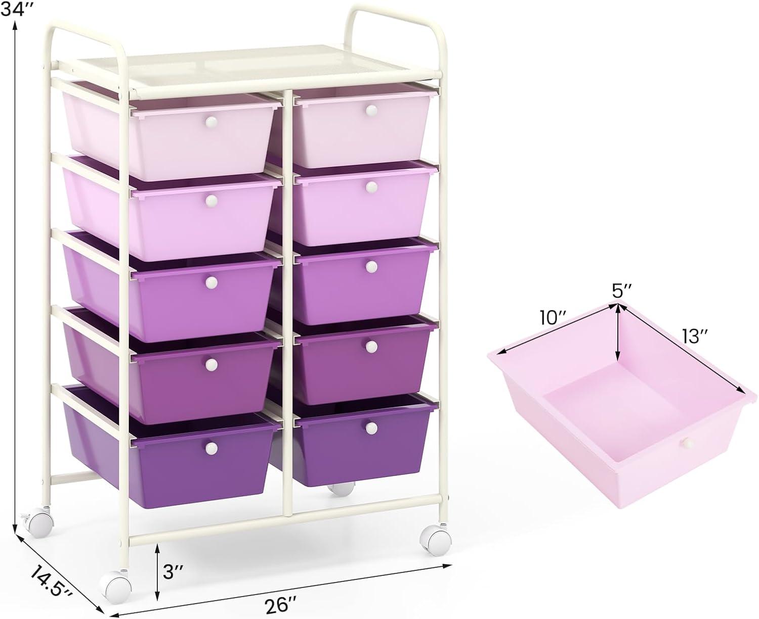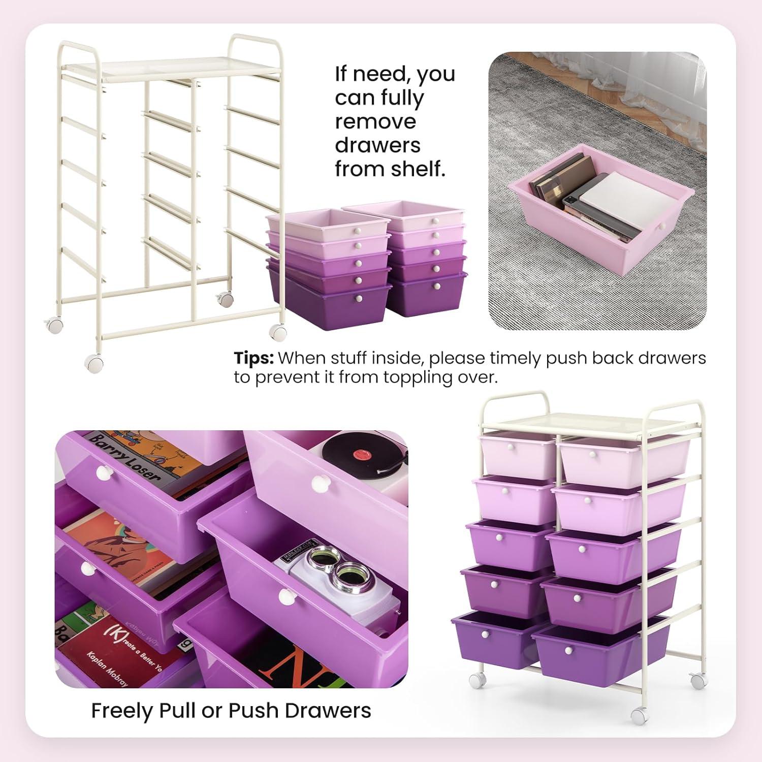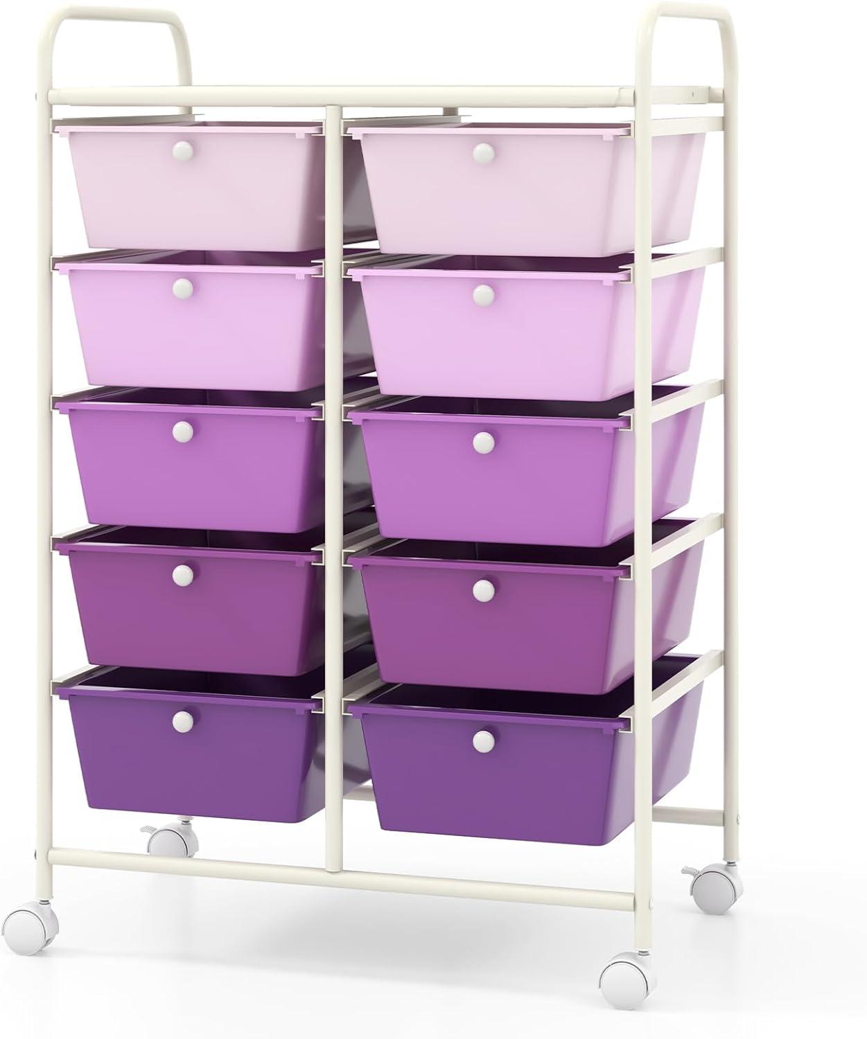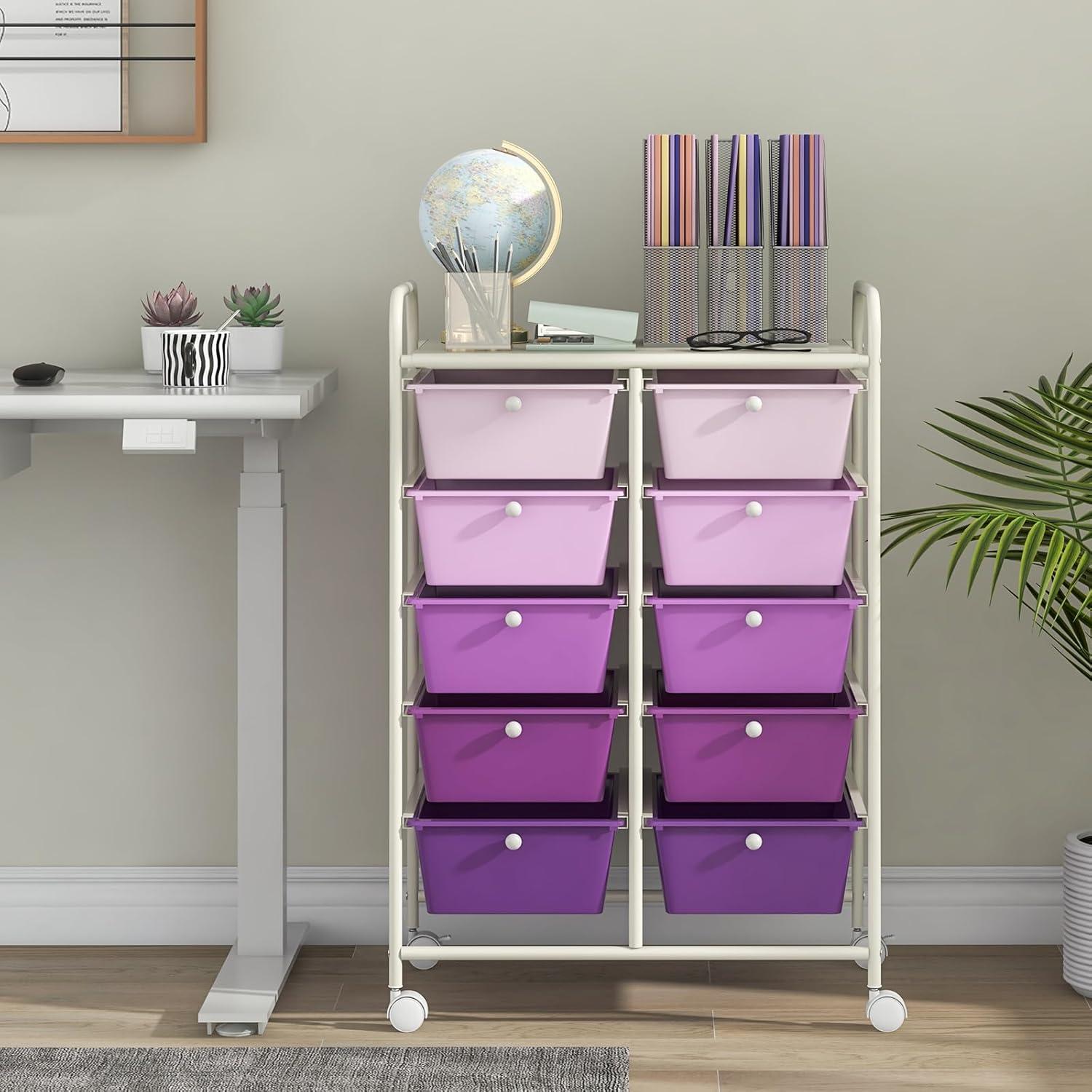 Giantex 15 Drawers Rolling Cart, Classroom Organizers, Storage Cart with Wheels, for Teacher Office Home School Supplies Tool Craft Art Paper, Green Gradient(Purple Gradient)