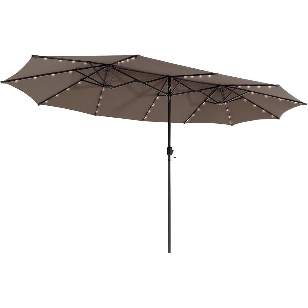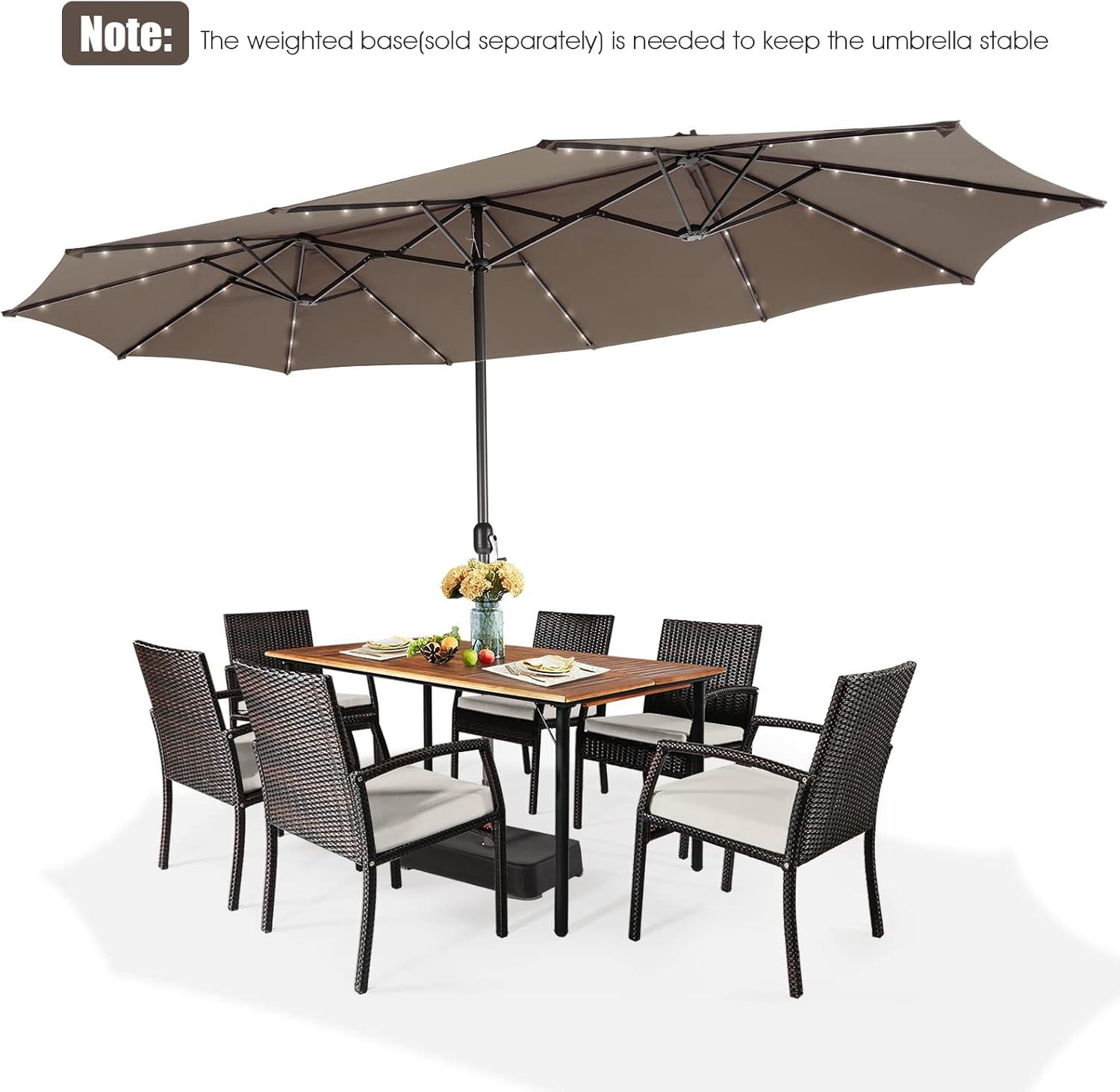 Giantex 15 FT Double Patio Umbrellas with 48 Solar LED Lights, Auto-Charging Panel, Crank System, Outdoor Extra-Large Rectangle Market Table Umbrella for Garden Deck Backyard Beach Pool(Coffee)