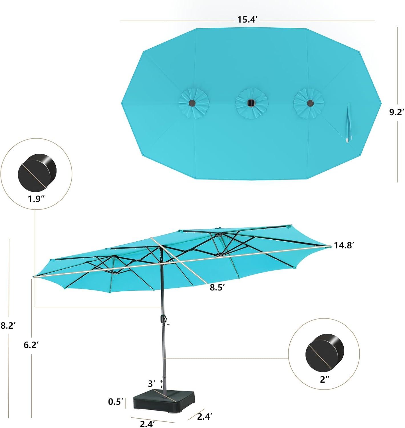 Our 15ft patio umbrella comes with a double-sided design to provide you with a more spacious shelter and better outside enjoyments.