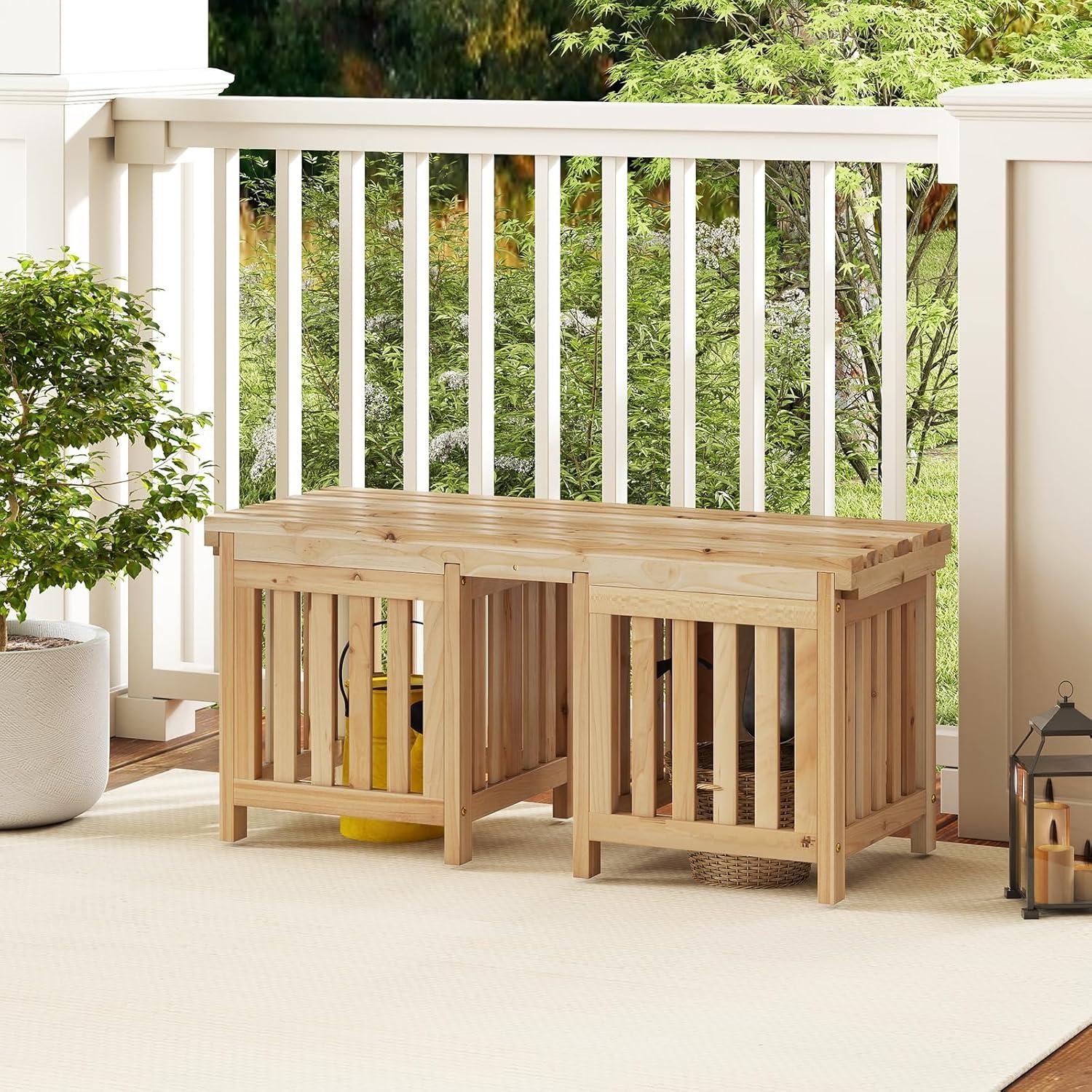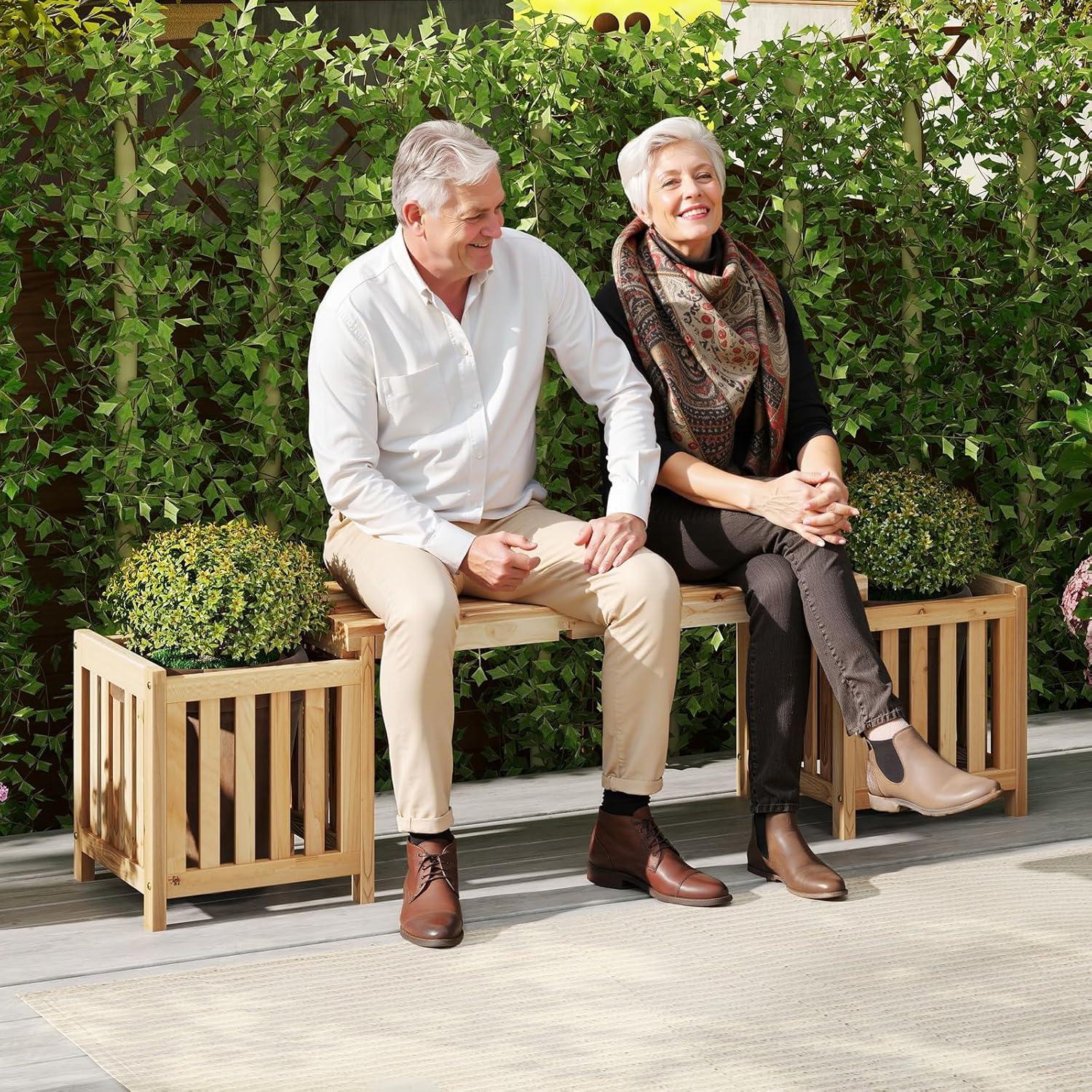 Are you looking for a versatile addition to your outdoor space? This innovative garden bench is the perfect solution! It combines a spacious, comfortable bench with 2 large planter boxes. Whether you want to relax and enjoy the tranquility of nature or tend to your plants, this bench meets all your needs. Crafted from high-quality hardwood, it is sturdy and reliable, with a surface pre-treated with teak oil to ensure long-term use while maintaining its natural charm. The breathable slat backrest and wide seat offer a comfortable sitting experience for two, while the 17” deep planter boxes with open-ended bases promote healthy plant growth. Hence, this garden bench is truly a thoughtful and practical addition to any outdoor area.