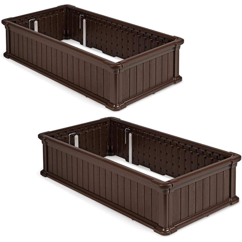 imageGiantex 2 Pcs Plant Raised Bed Planter for Vegetables Flower Outdoor Garden Plant Box Patio Backyard Easy Assembly 48Lx24Wx12H Brown