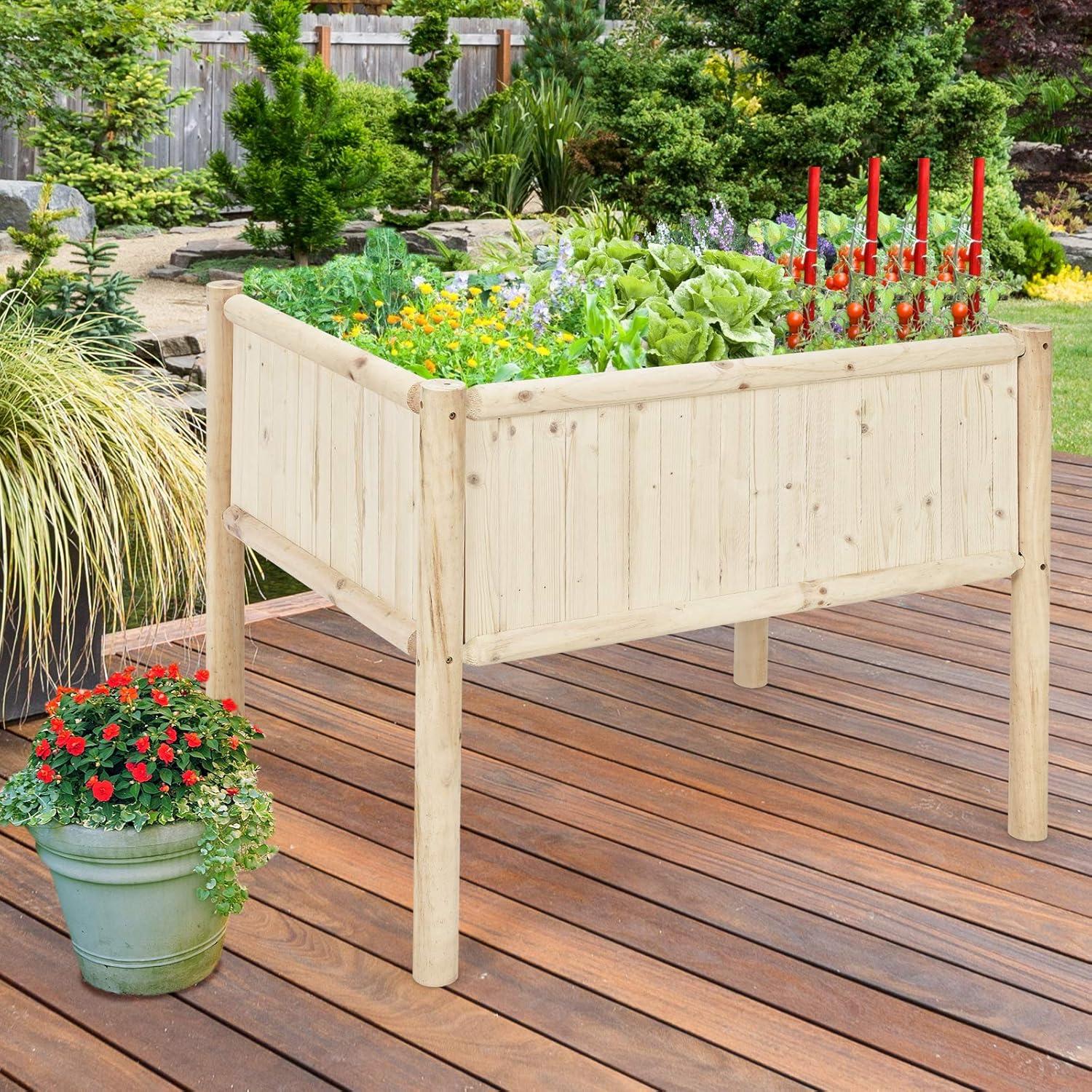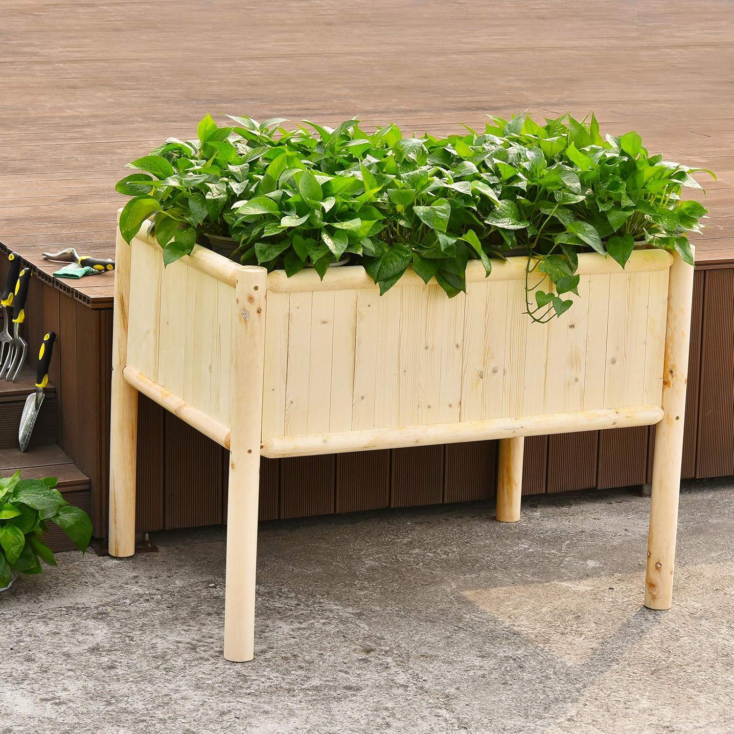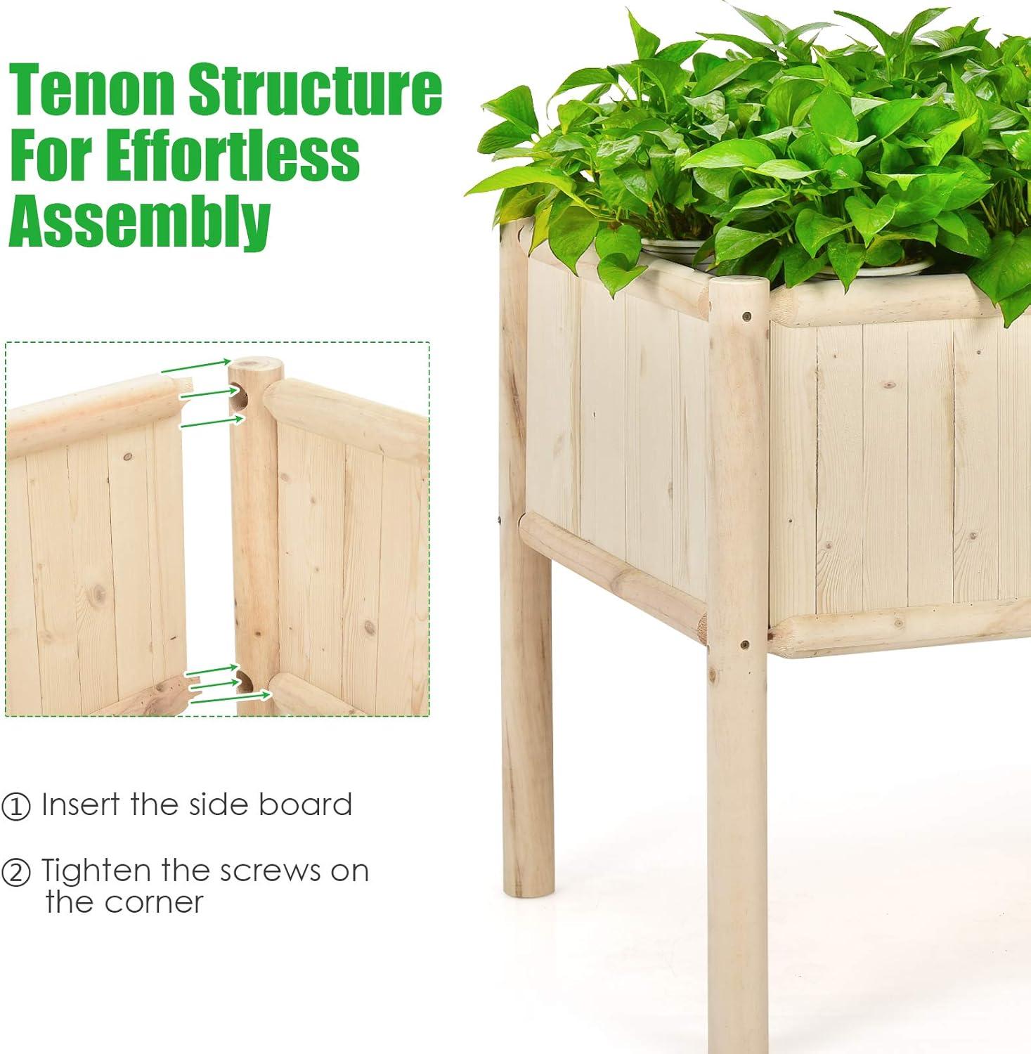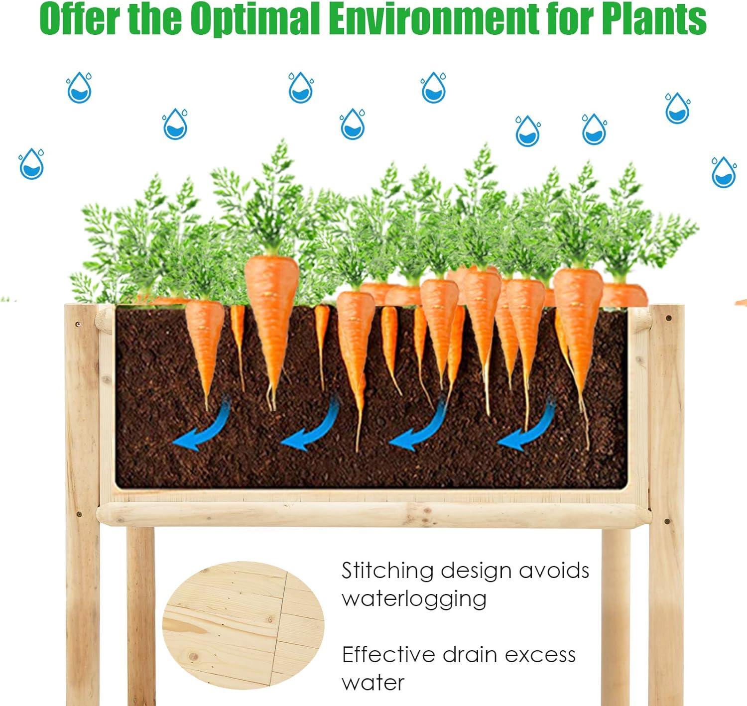 Selected Natural Wood Material: Crafted with high-quality fir & pine wood, the garden bed features great toughness for a long lifespan and can support up to 330lbs. Additionally, thanks to its stitching design, excess water can be effectively drained out to avoid water logging.
