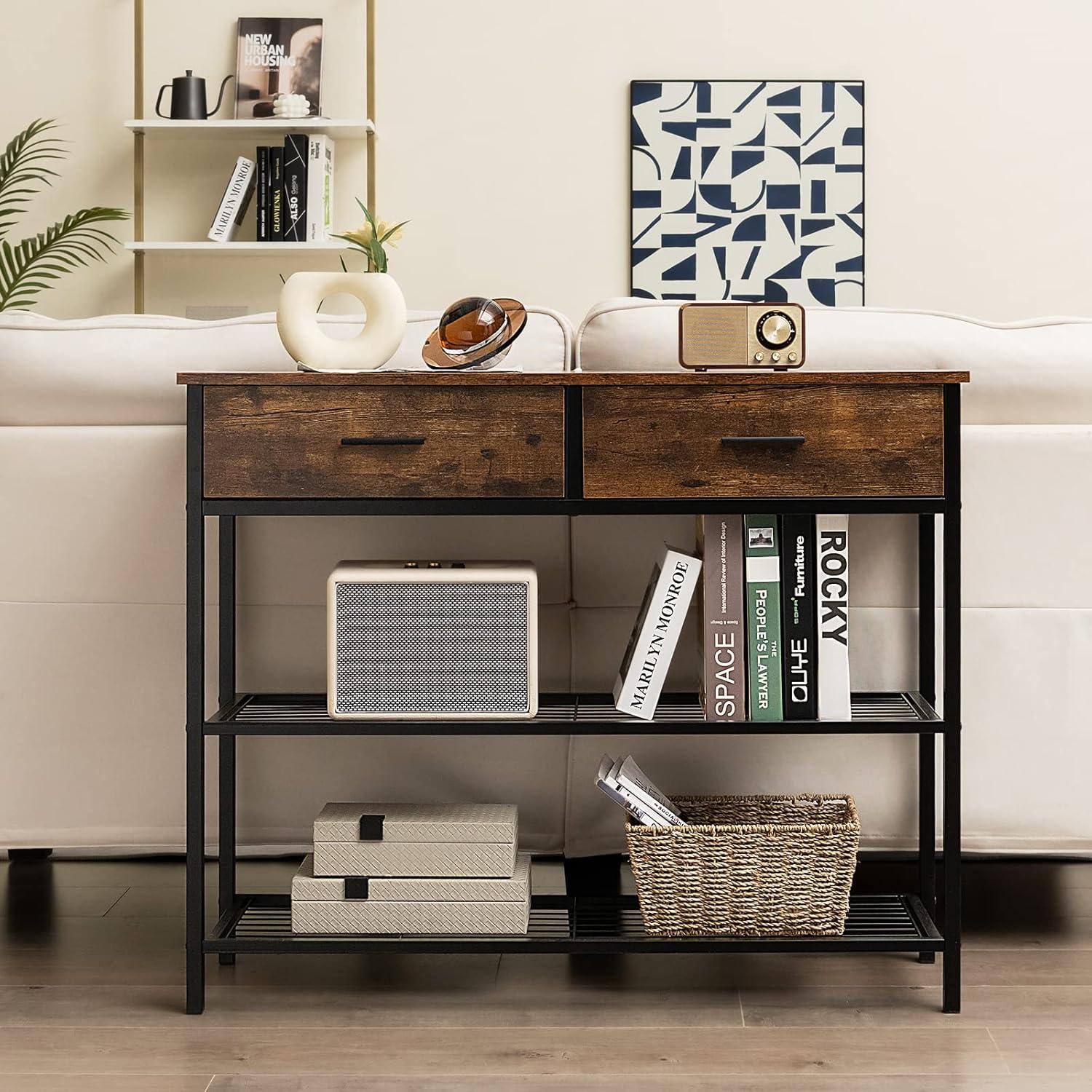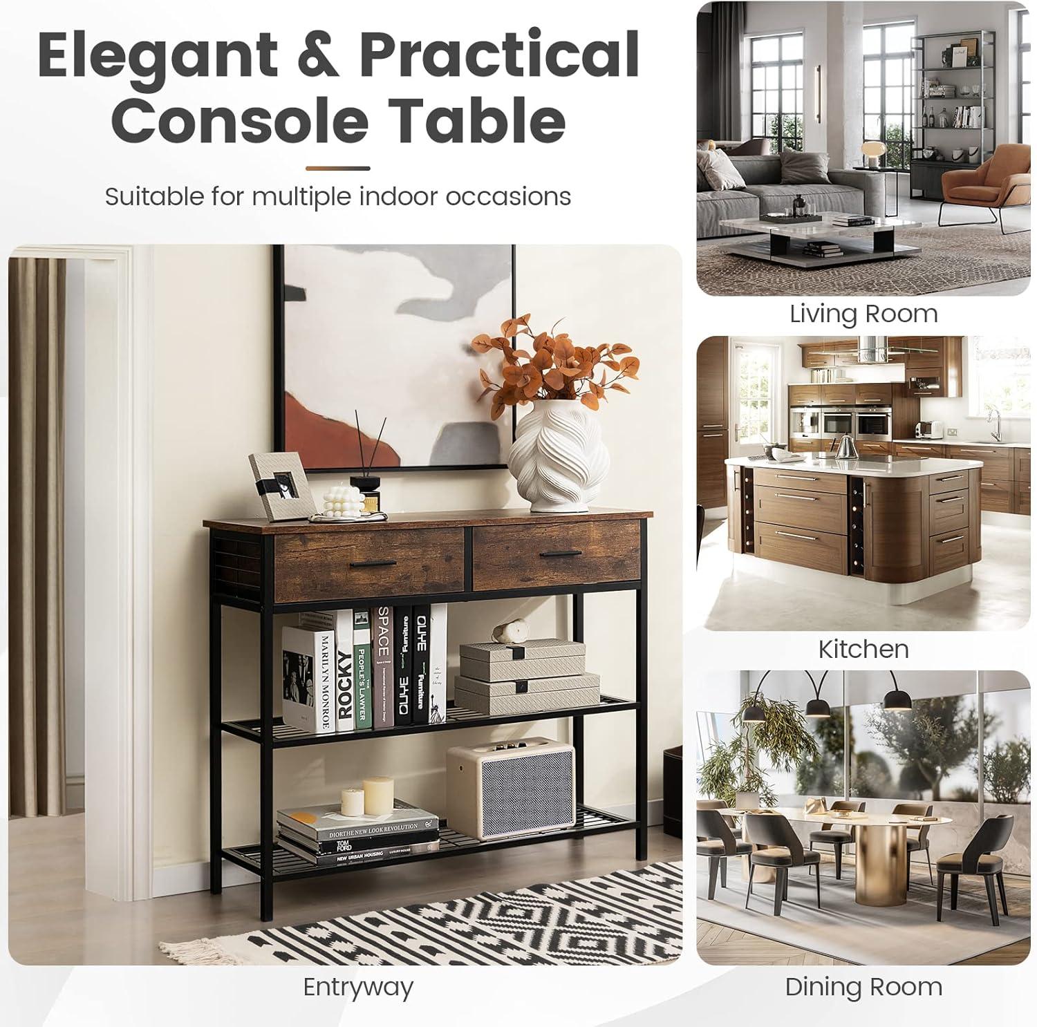 Spacious Storage Space: With a bottom shelf and 2 drawers, this console table will provide you with plenty of storage space. The bottom shelf is great for keeping your books, storage boxes or some potted plants. The table top is great for home decor, while the 2 drawers are convenient for you to store your personal items.