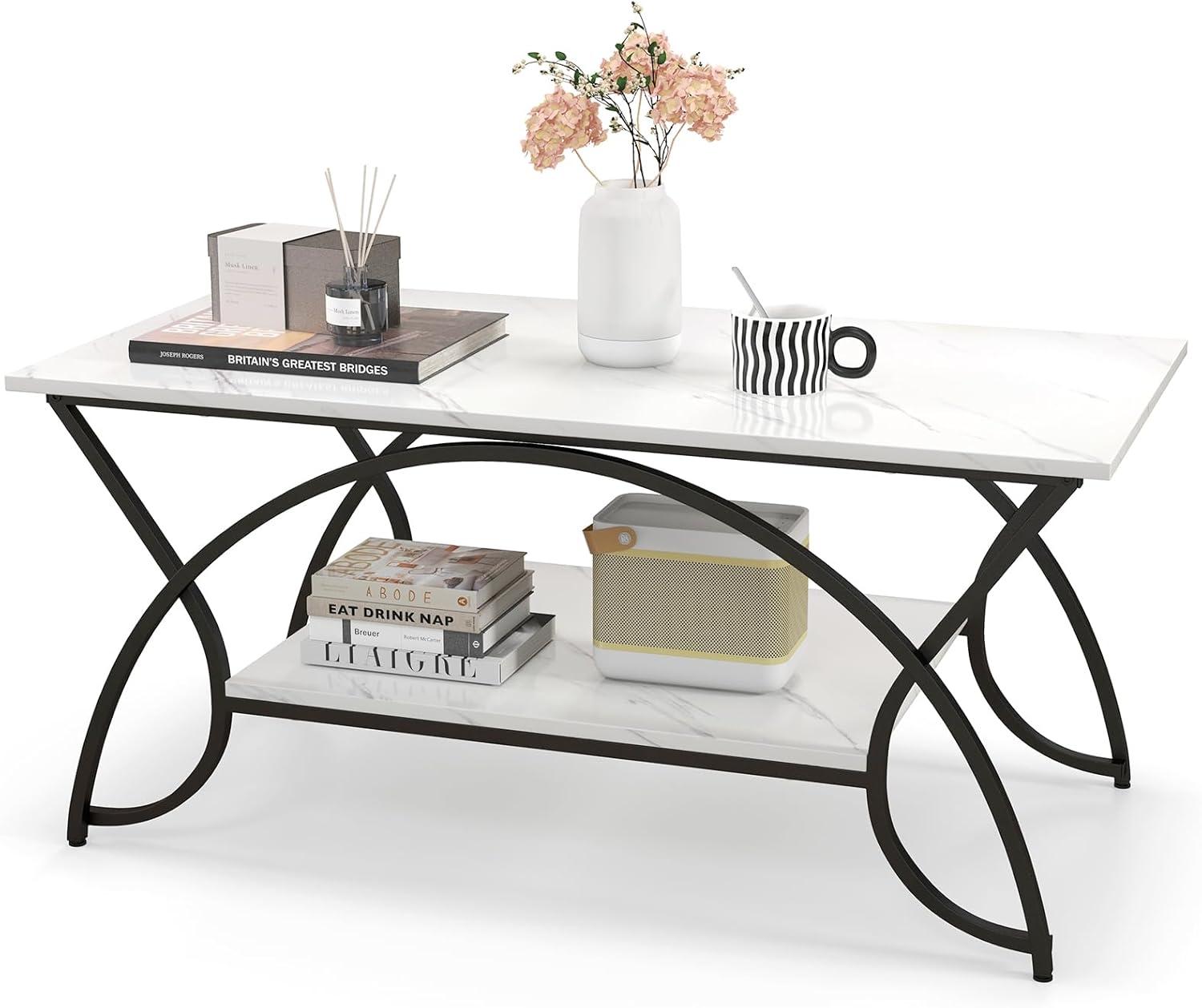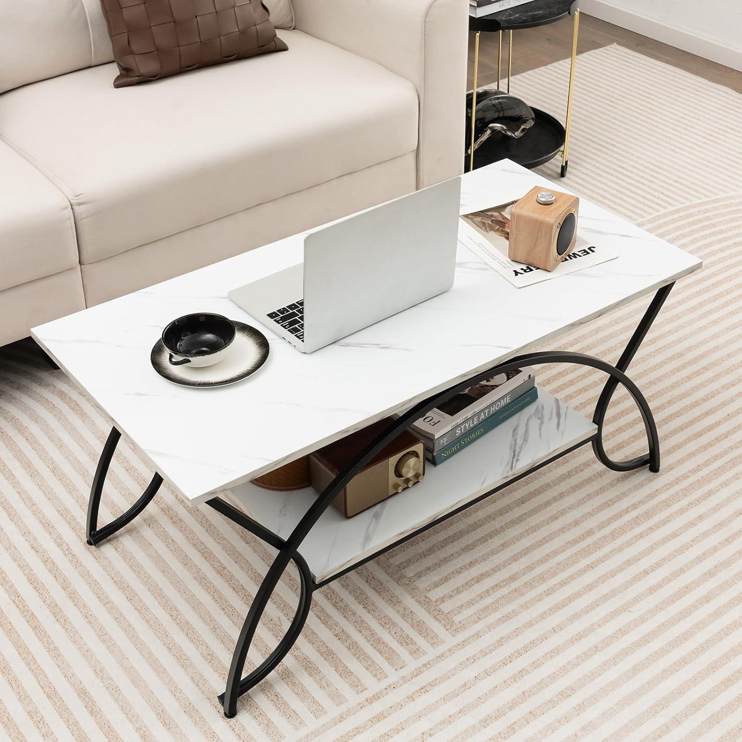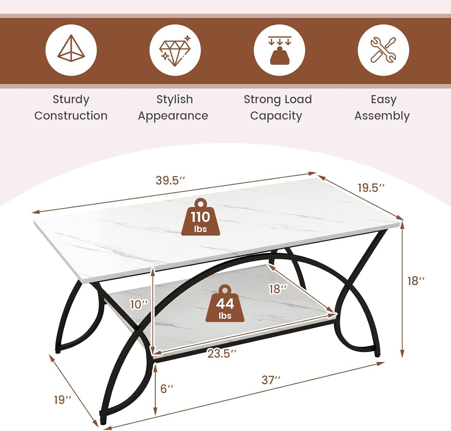 [ Elegant & Chic Appearance ]: Featuring a tabletop with white faux marble texture finishing, this 2-tier living room coffee table will add a touch of elegance to your home. Besides, the curved legs with gold finish create a stylish and luxurious feel, which can instantly brighten up your living area.