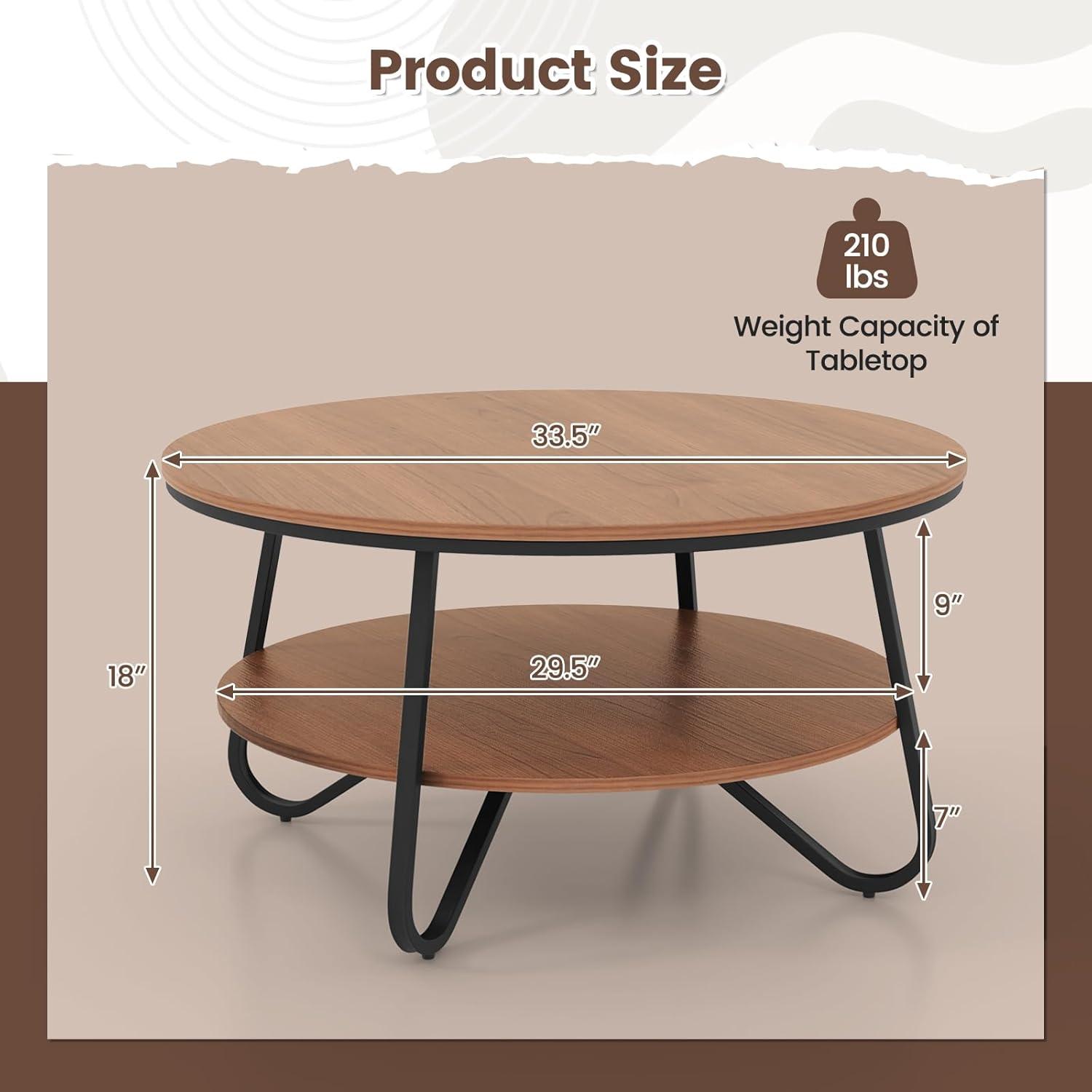 [Vintage & Chic Appearance]: Enhance your living space with our classic round coffee table featuring a high-quality wood grain veneer finish. The vintage chic design complements any decor style, from minimalist to luxurious, making it perfect for casual gatherings or hosting friends.