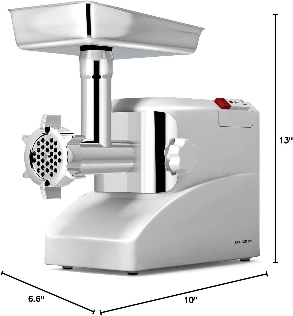 🥩〖Simple & Safe Operation〗: The grinder can be used easily by placing the cutting blade and cutting plate in it. Four key switches to Stop & Reset/On/Half/Reverse make it clear to operate. Attentive design of the Reverse Key keeps the motor from burning out when meat is stuck in the tube. With the help of the food pusher, your fingers are safe.
