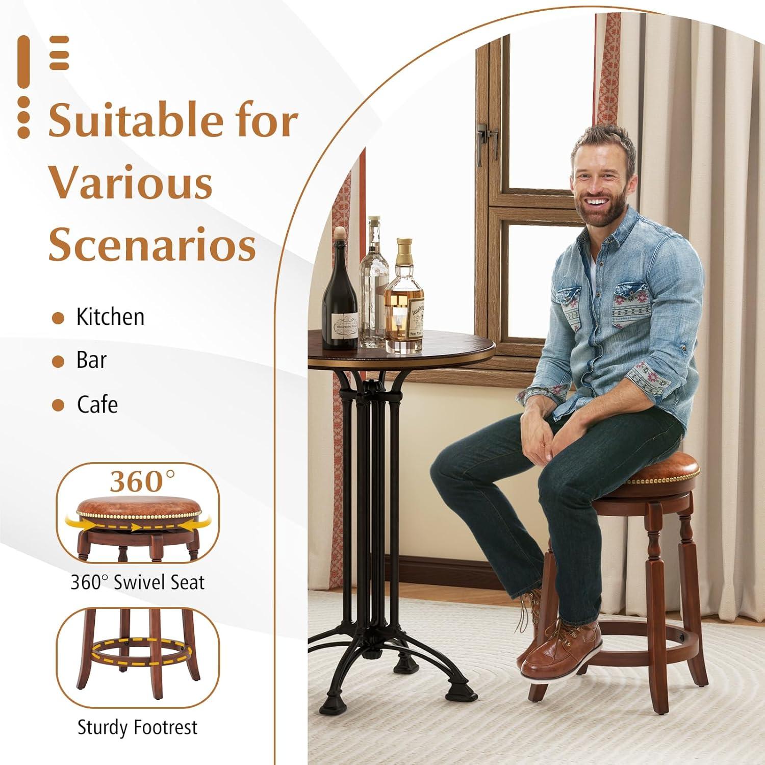 [Built to Last]: Constructed with high-quality rubber wood material, this swivel bar stool offers exceptional sturdiness and longevity, ensuring it remains a staple in your space for years to come. Plus, the non-slip foot pads add extra stability.