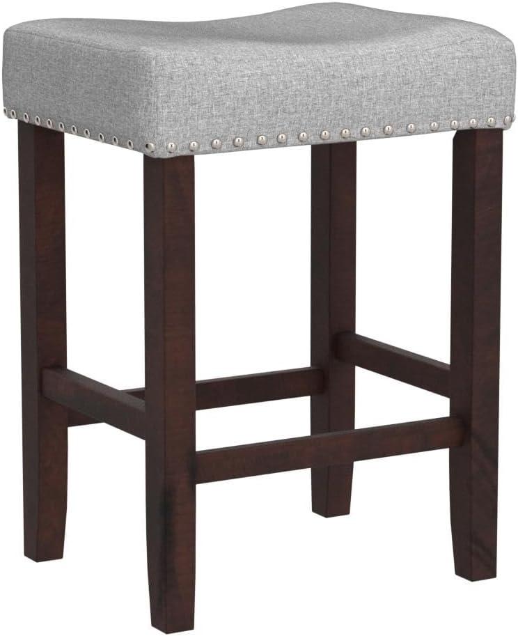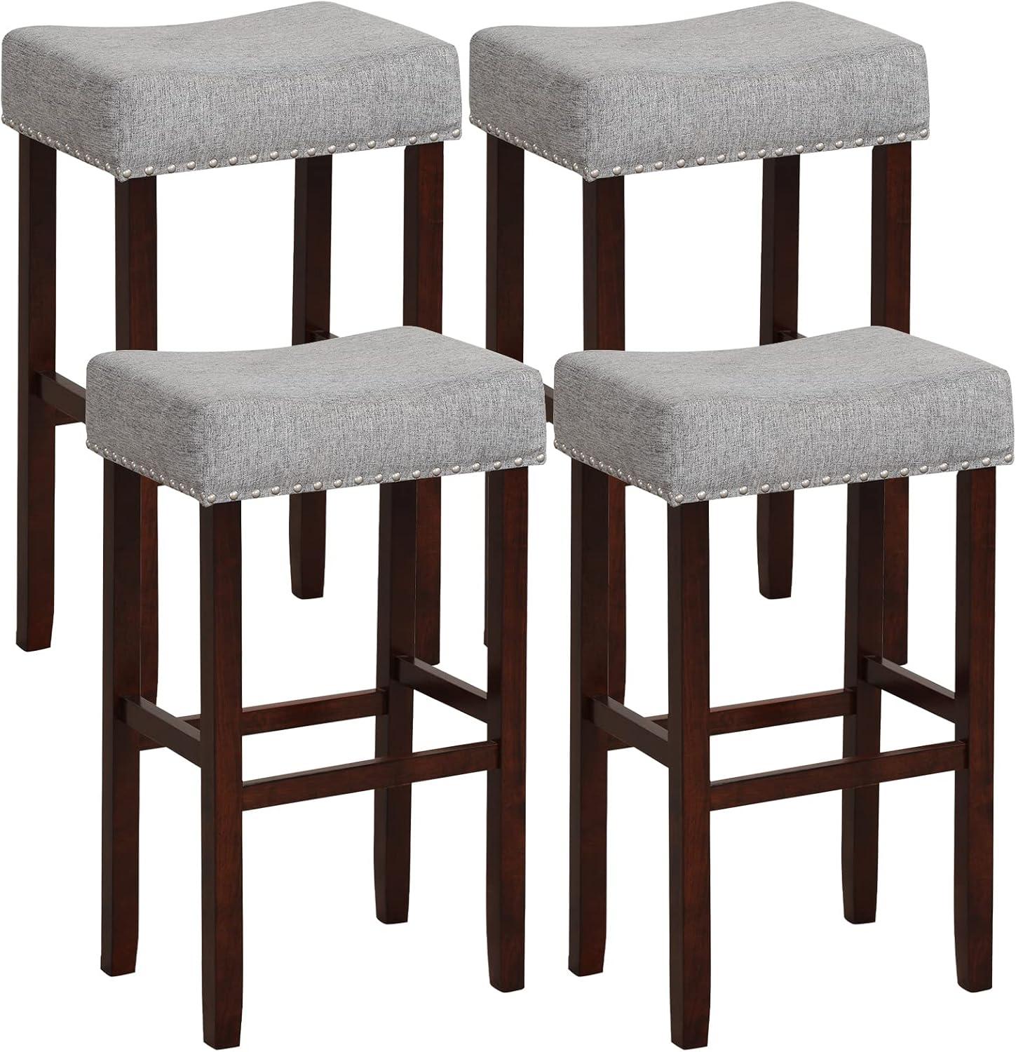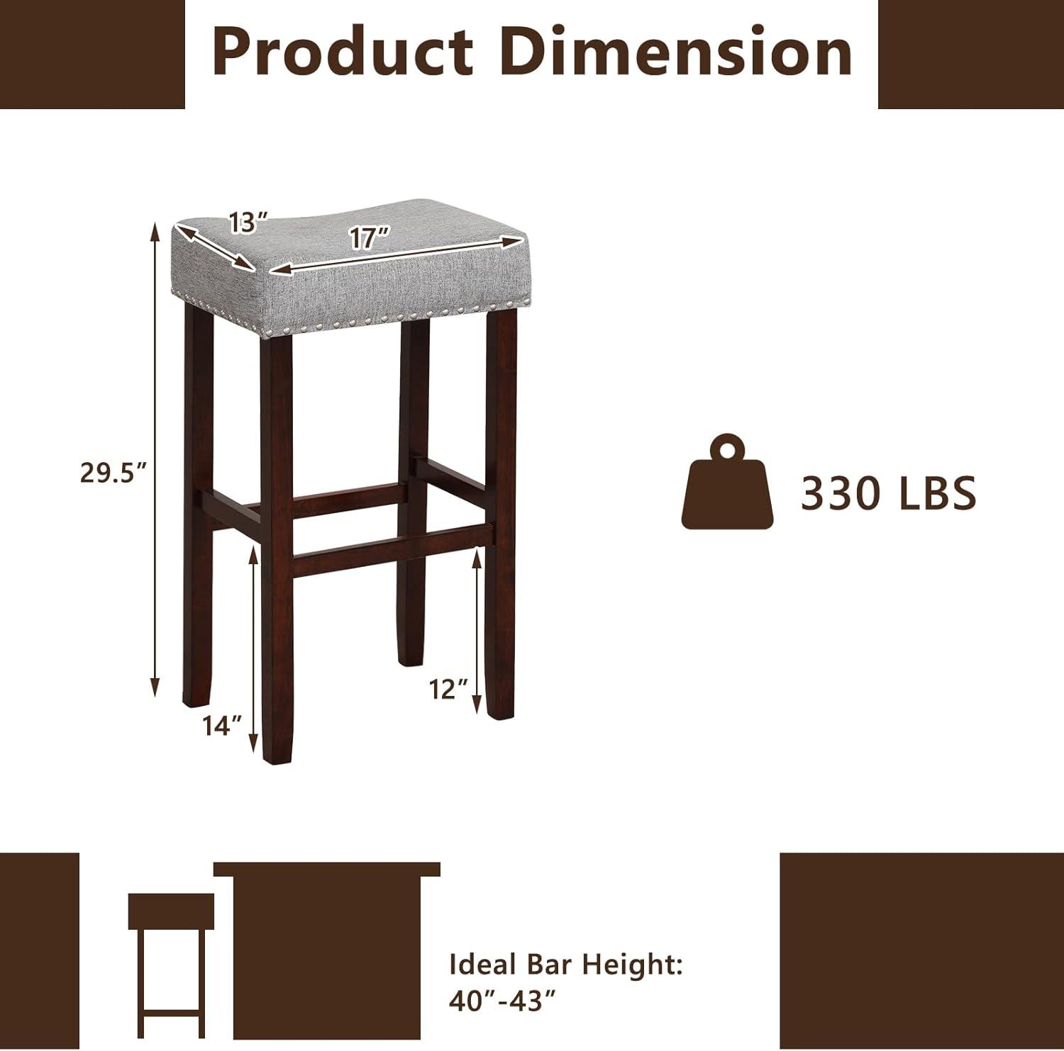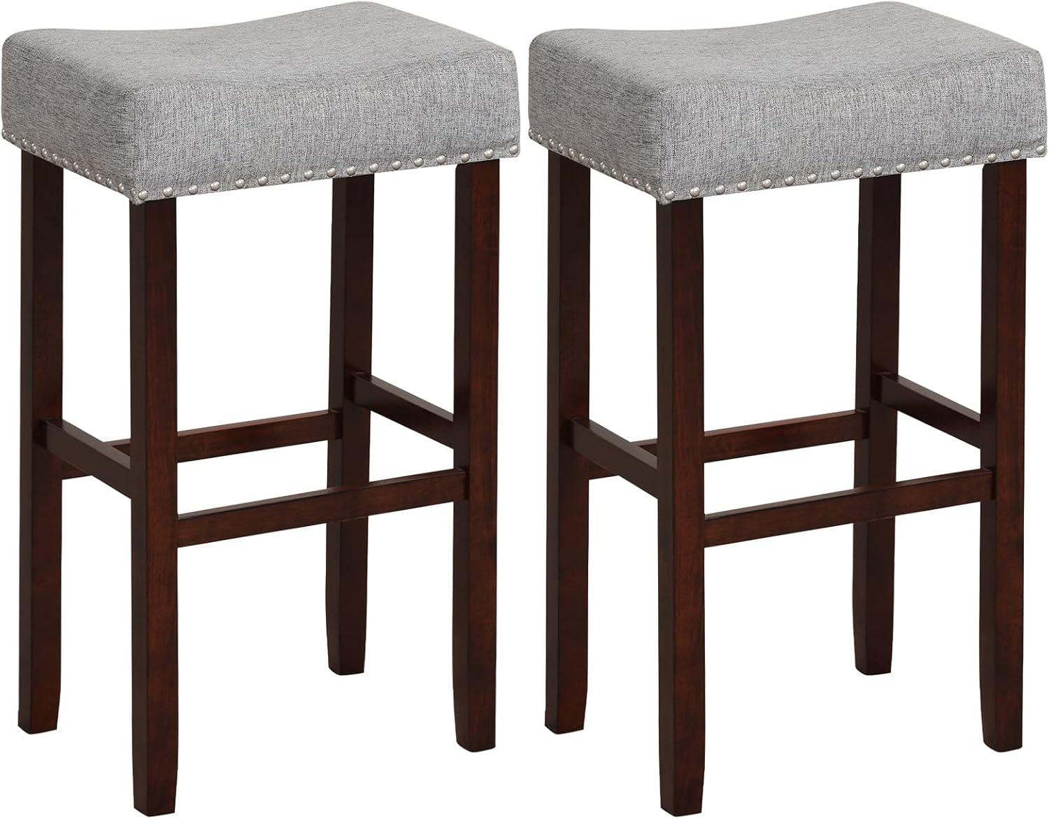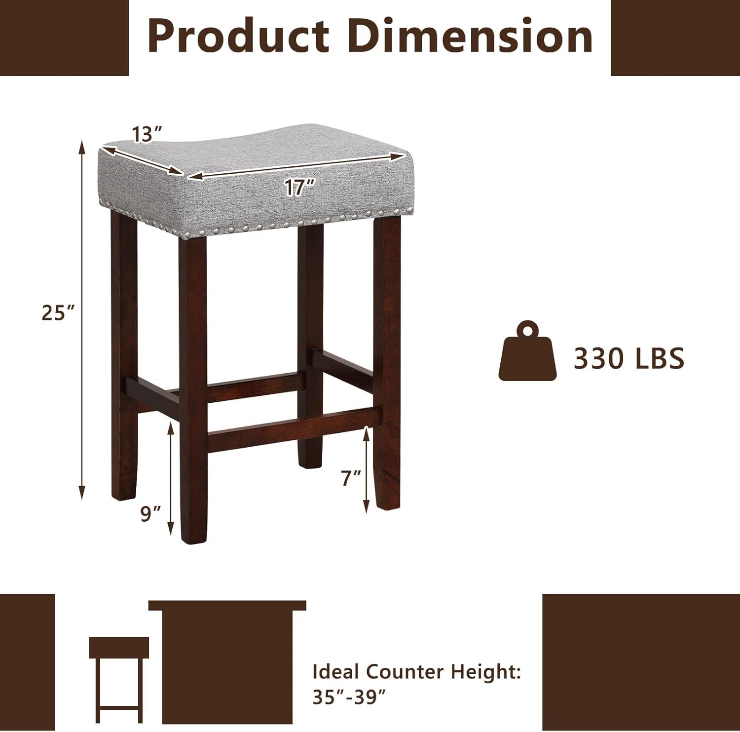 Giantex 25″ Counter Height Bar Stools Set of 2 – Backless Saddle Barstools with Nailhead Linen Foam Seat, Max Load 330 Lbs Wood Bar Stools with Foot Rest for Kitchen Island, Khaki(Grey)