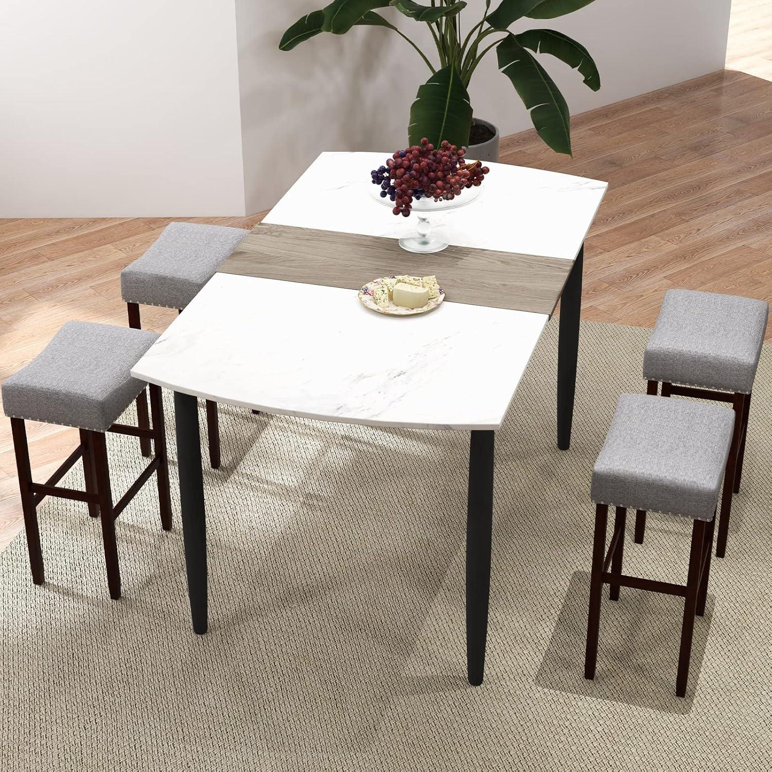 Giantex 24.5″ Counter Height Bar Stools Set of 2, Linen Barstools with Back, Rubber Wood Legs, Max Load 400 Lbs, Modern Upholstered Bar Dining Chairs for Kitchen Island Pub, Grey(Grey)