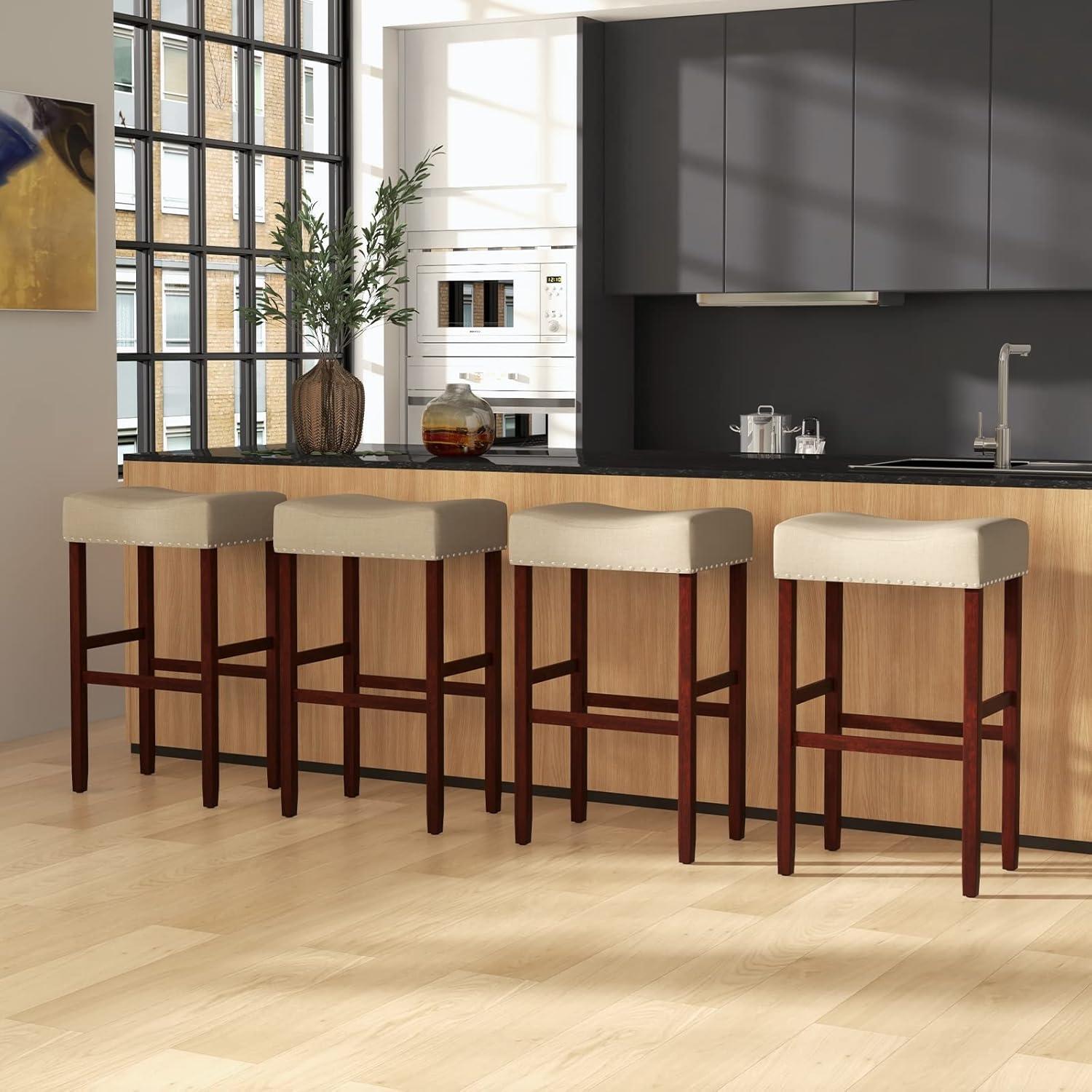 [ Counter Height Saddle Barstools ]: With perfect 25″ height, our saddle bar stool set is suitable for 35″-39″ counters or kitchen islands. Additionally, with backless design, the bar stool set can be put under the counter to save more floor space.