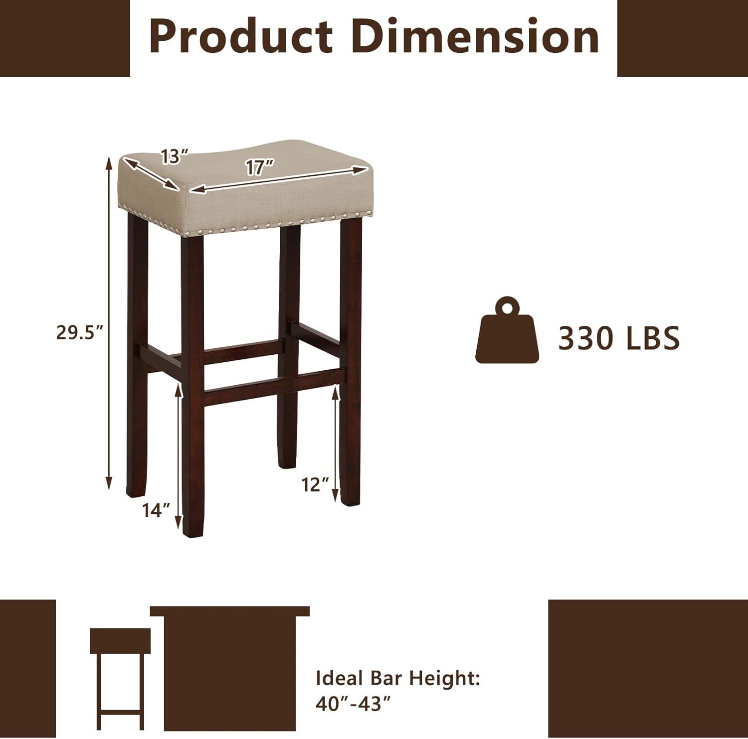 [ Stylish & Practical Bar Stools ]: The comfortable cushion matches well with the wooden frame, making the bar stool set a wonderful addition to your room. Meanwhile, the nailhead trim design and smooth lines add more charm.