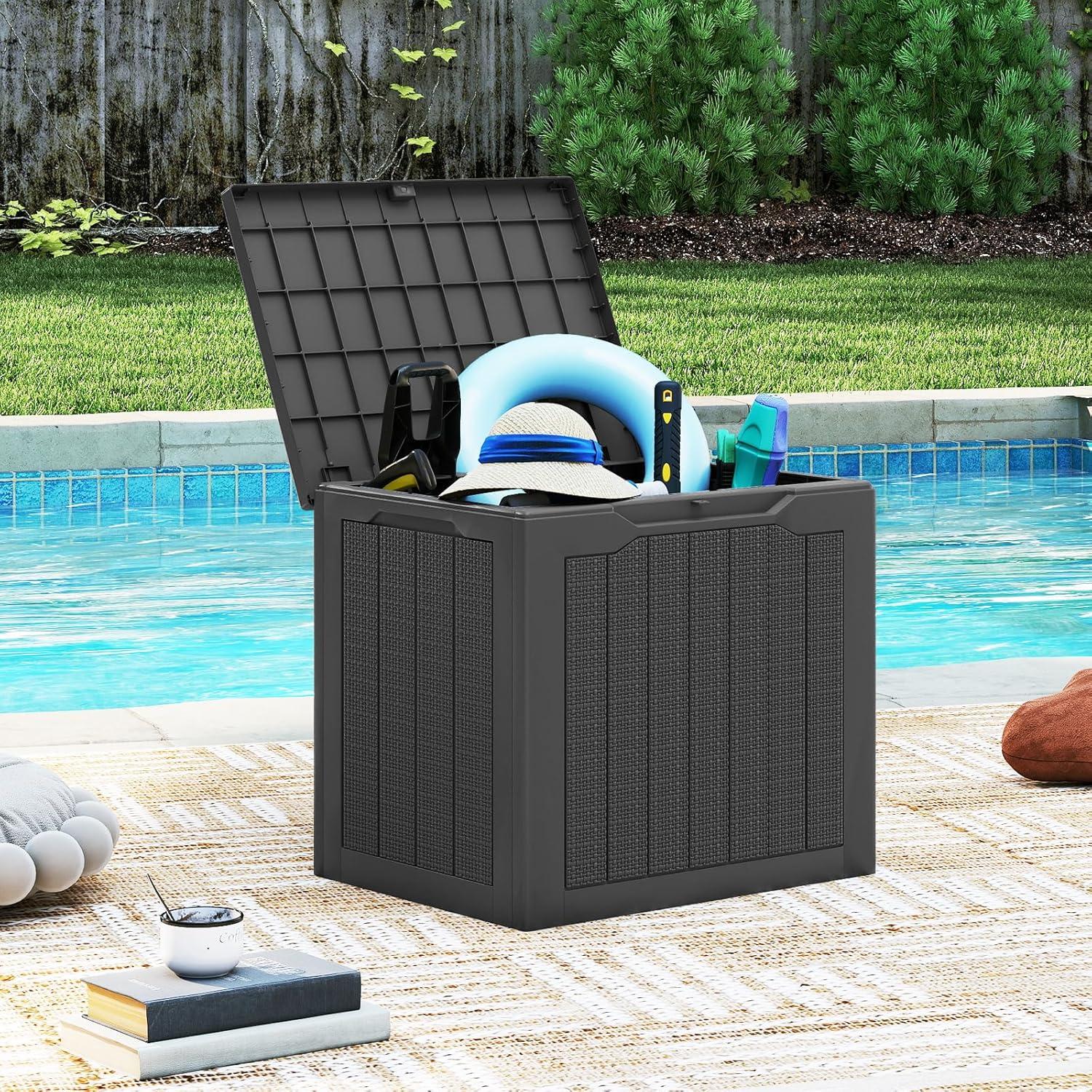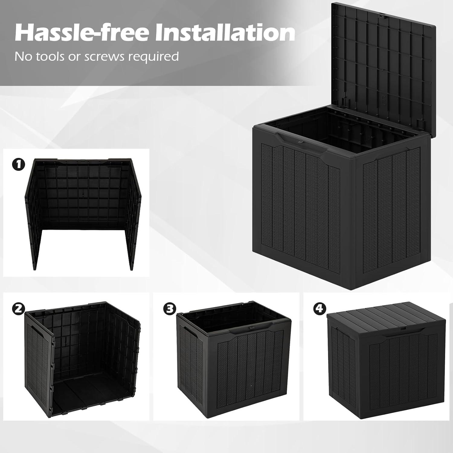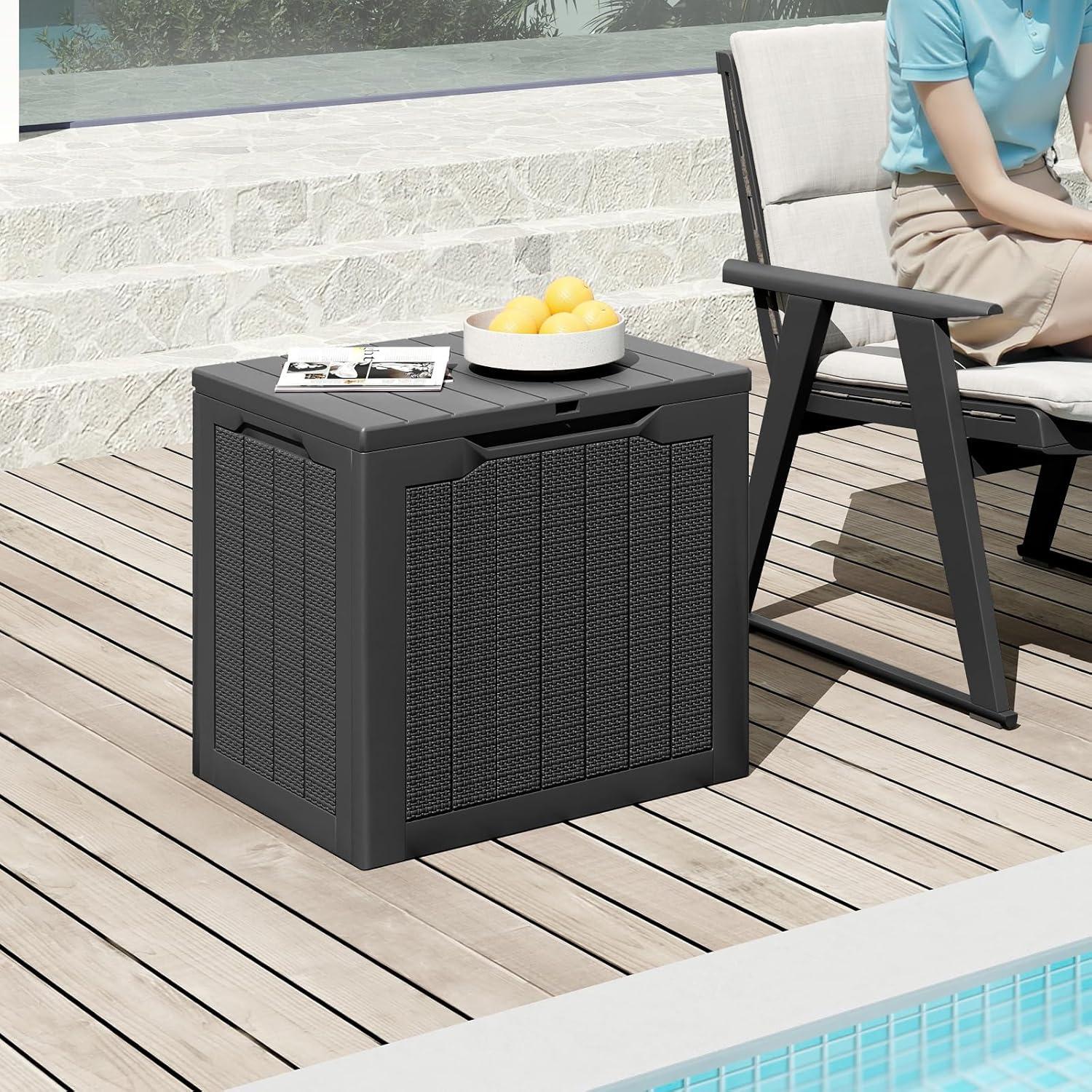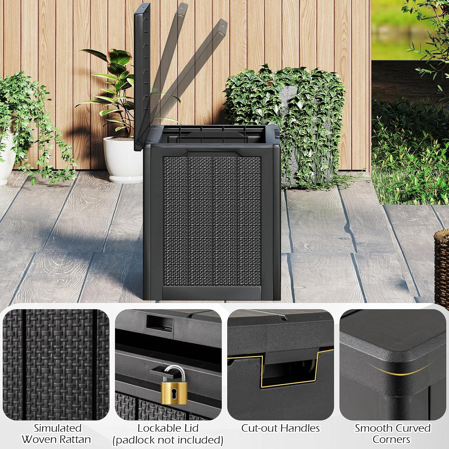 [25 Gal Box with Lockable Lid]: The 25 Gal deck box offers ample space to keep your pillows, tools, or sport equipment organized and out of sight. Plus, the openable lid allows for easy access to your stored items, while the lockable feature(require a padlock) ensures that your belongings remain secure.