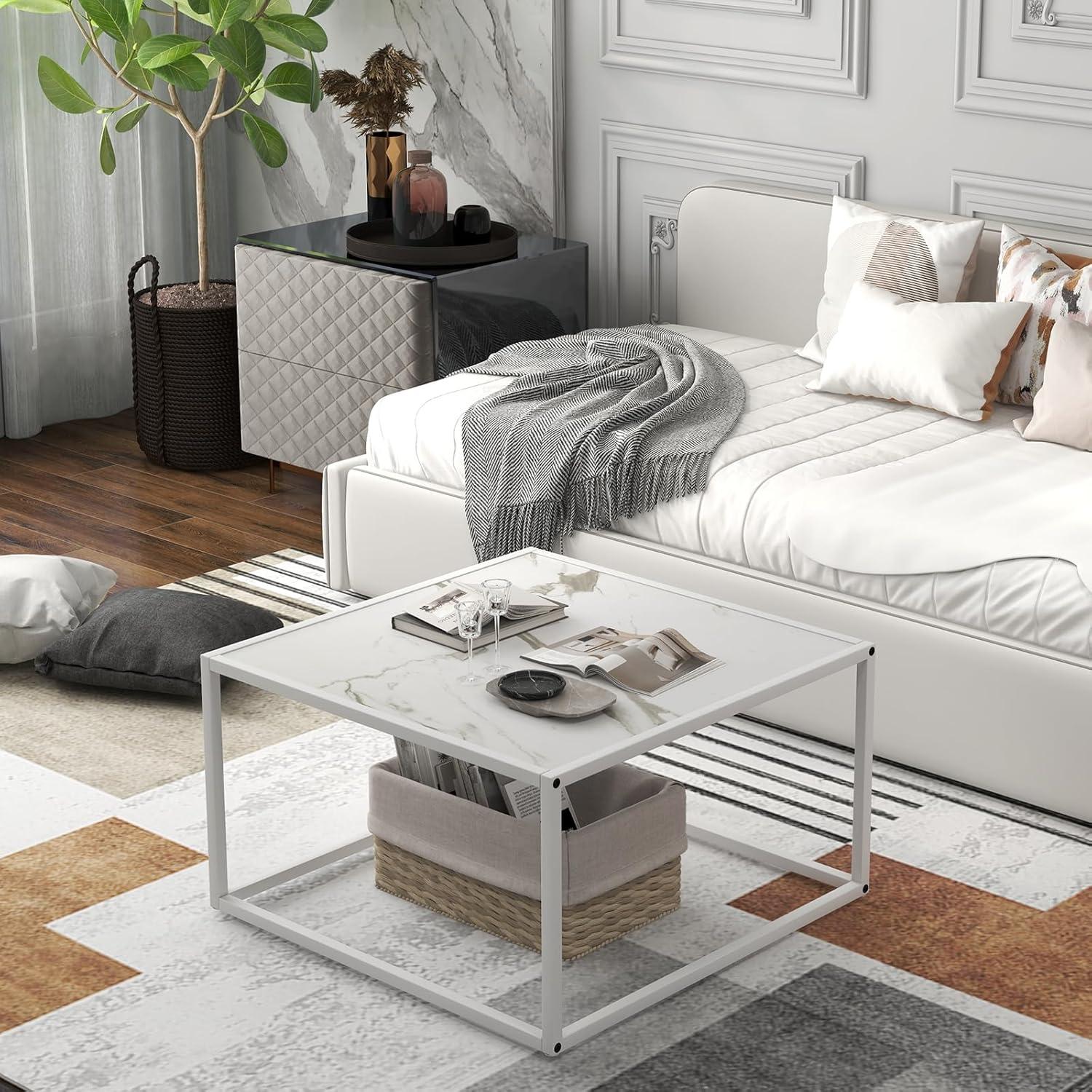 The square coffee table will be a perfect piece in your home! Crafted with 6 mm thick tempered glass top and sturdy metal frame, the coffee table is high-temperature resistant(up to 302℉/150℃) and ensures a rugged structure. Besides, the waterproof surface requires less maintenance. For storage convenience, the coffee table features a wide tabletop and mesh shelf to suit different needs. Blending a chic black frame and a sophisticated gray/transparent glass top, the center table is a charming complement for living room, bedroom, or office.