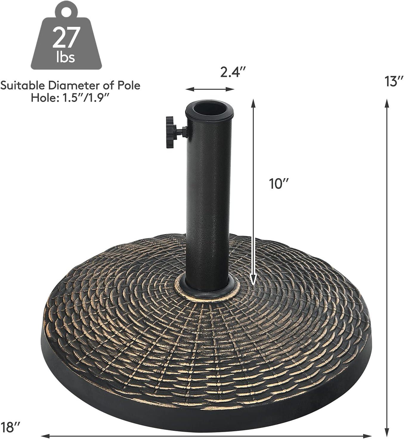 【Selected Material】: Made of premium resin and steel, this high quality umbrella stand is durable, weather-resistant and anti-rust for long time outdoor use. At the same time, this umbrella holder with 27 lbs net weight is sturdy enough to support a patio umbrella (not included).