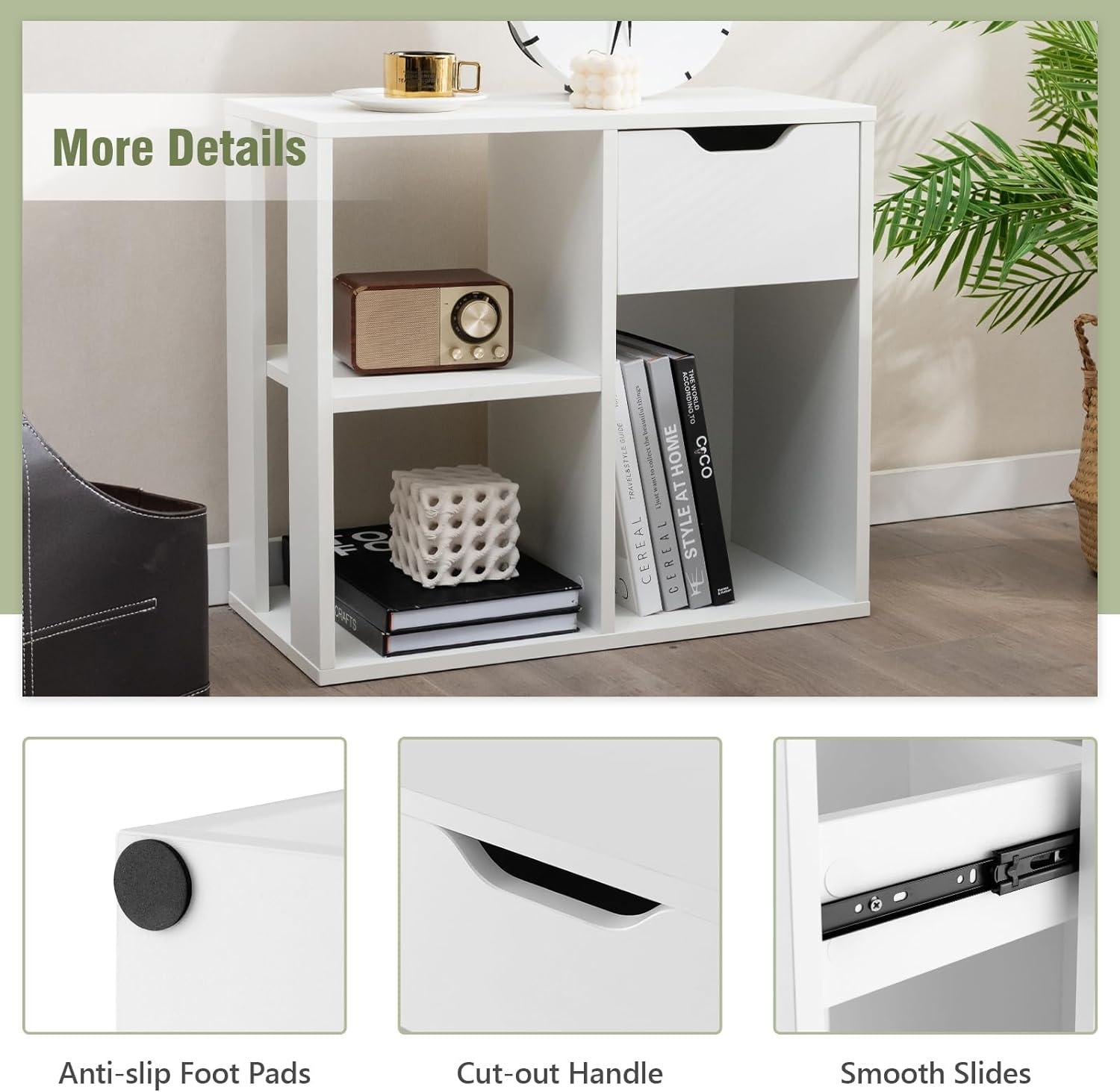 [Versatile Storage Solution]: Our 3 cube bookcase features 3 open storage shelves and a drawer, providing ample storage and display space for all your essentials. Besides, the drawer is equipped with smooth slides and a convenient cut-out handle, allowing for easy access to your items.