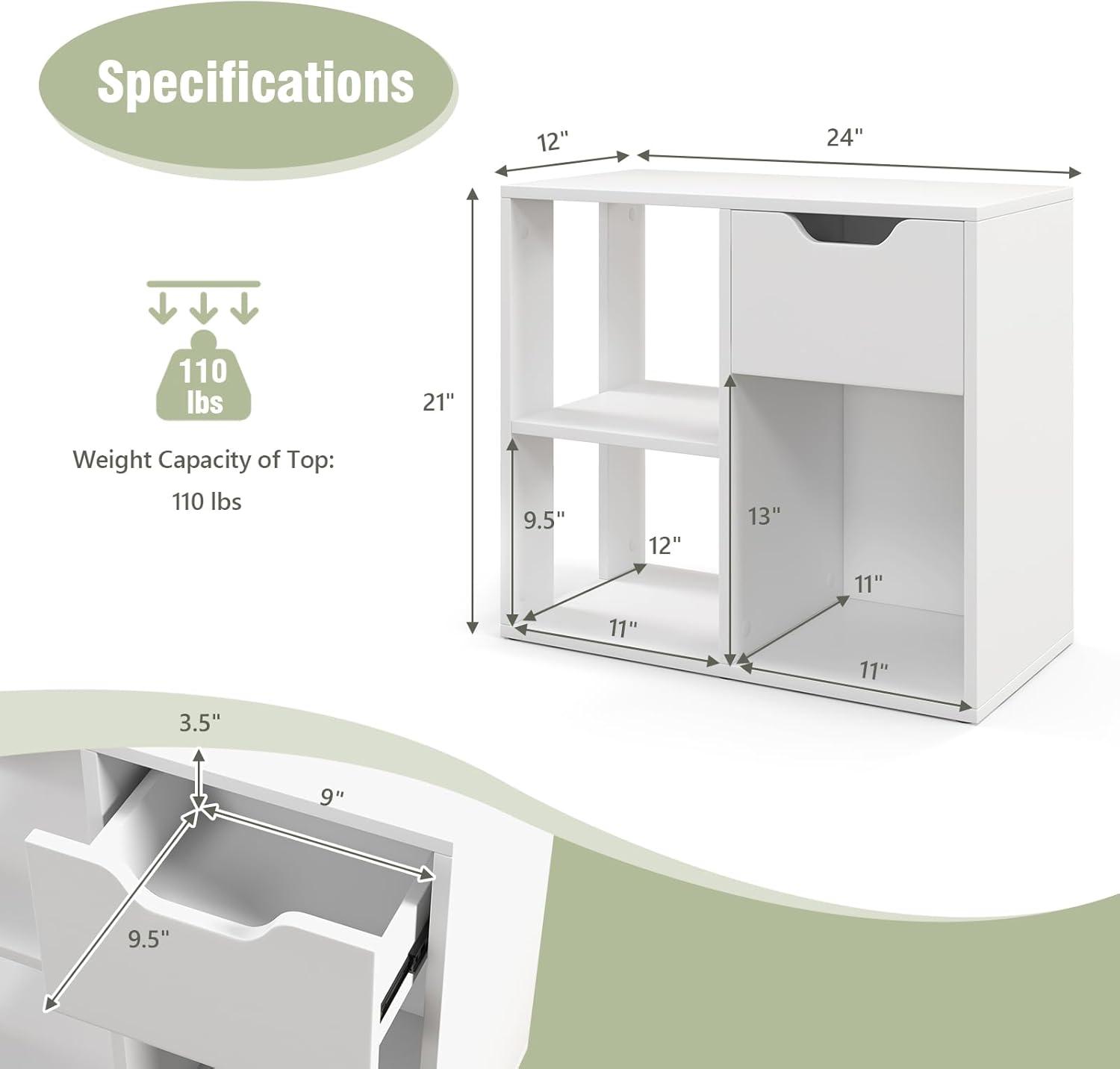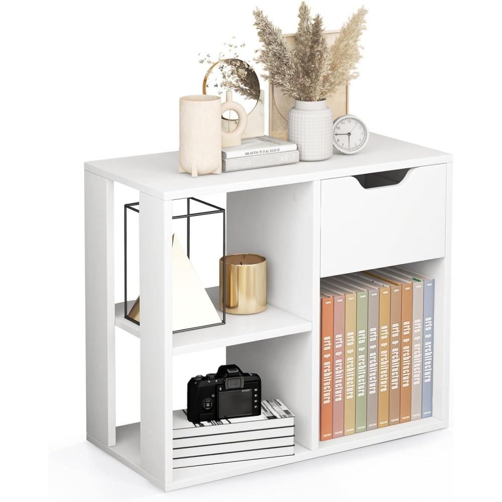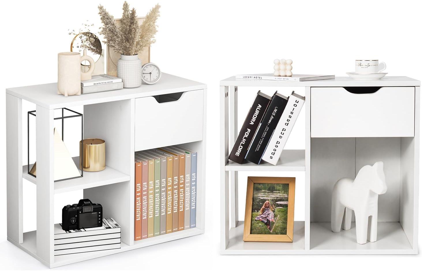 Giantex 3 Cube Bookcase with Drawer, 2 Tier Bookshelf for Small Spaces, Modern Freestanding Display Rack with Open Shelves, Book Case, Wood Cube Storage Organizer Bedroom Living Room, Black(White)