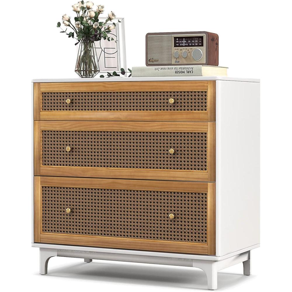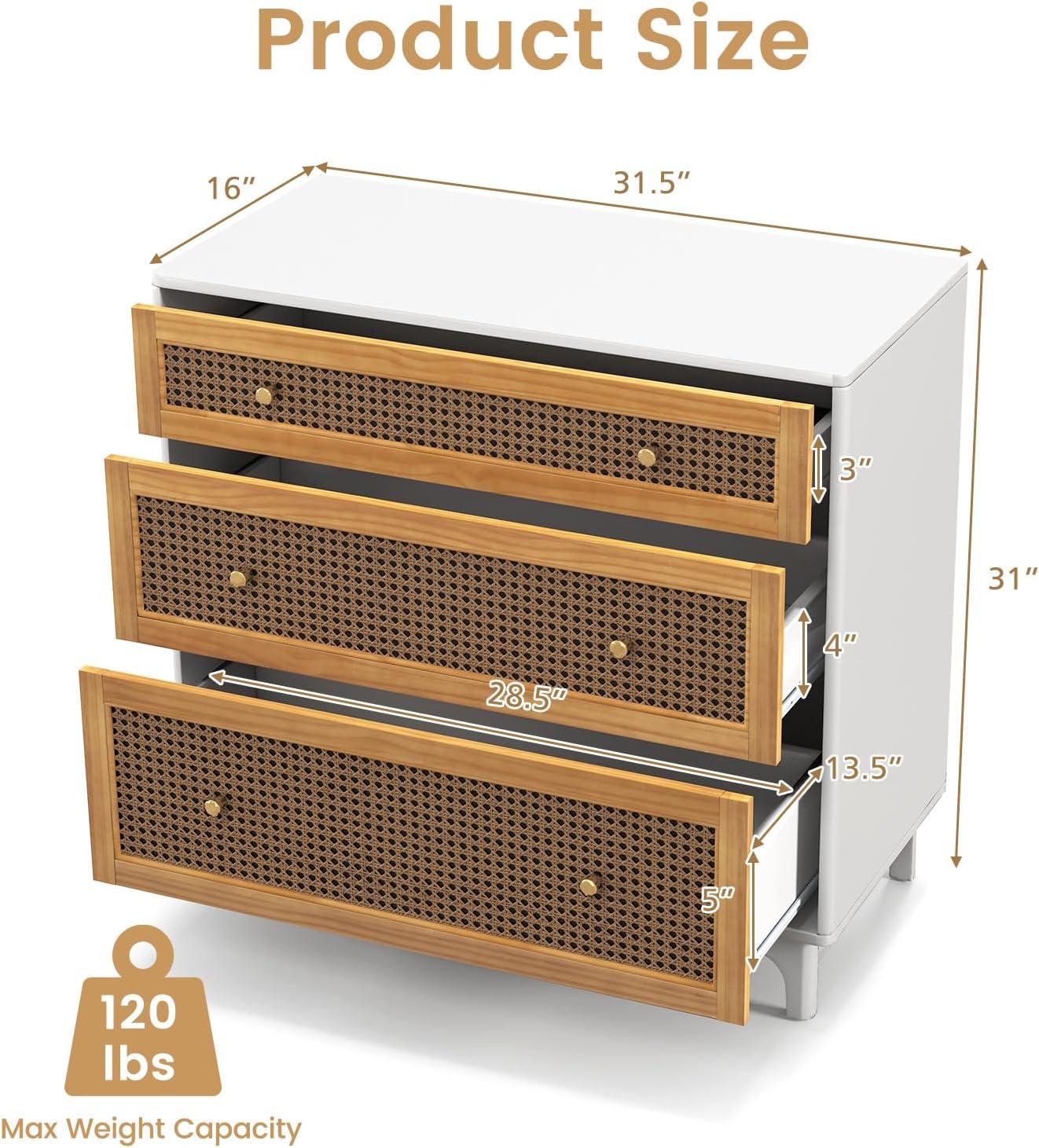 Such a versatile dresser will surely make your life more comfortable! The storage dresser combines aesthetic beauty with great practicality. Additionally, you are capable of classifying items by means of 3 slide-out drawers. The cabinet top is perfect for placing frequently used essentials for easy fetch. Considering safety use, this chest of drawer is equipped with anti-toppling device for added stability. The rattan decorated storage dresser will perfectly match well with other furniture and add aesthetic beauty to your living surroundings, whether in living room, bedroom, closet and entryway.