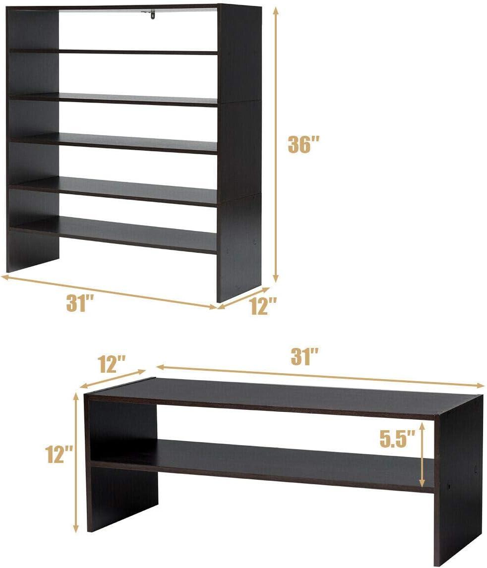 imageGiantex 3in1 Vertical Shoe Rack 6Tier Free Standing Shoe Storage Organizer wStackable Design for 18 Pairs 31 Inch Wide Wood Shoe Shelf for Closet Entryway Living Room Office WhiteBrown