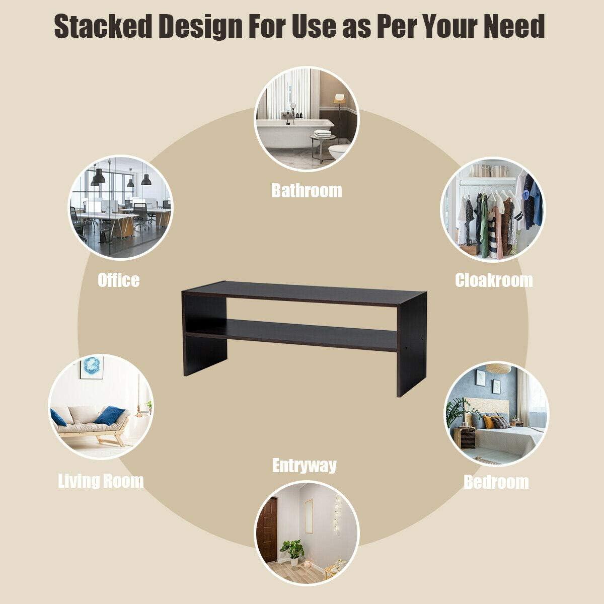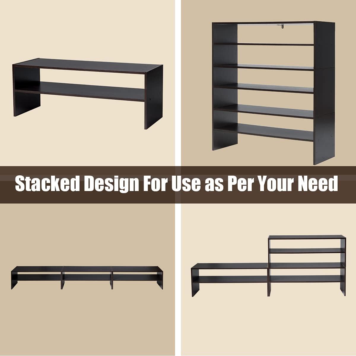 Ample Storage Space: With its simple yet compact design, this shoe storage organizer makes the most of your closet or entrance space. Each layer can neatly accommodate 3 pairs of shoes, ensuring that your footwear is organized and tidy. Each 2-tier shelf dimension: 31″ x 12″ x 12″ (L x W x H).